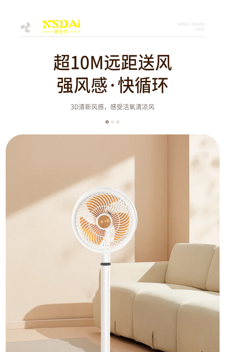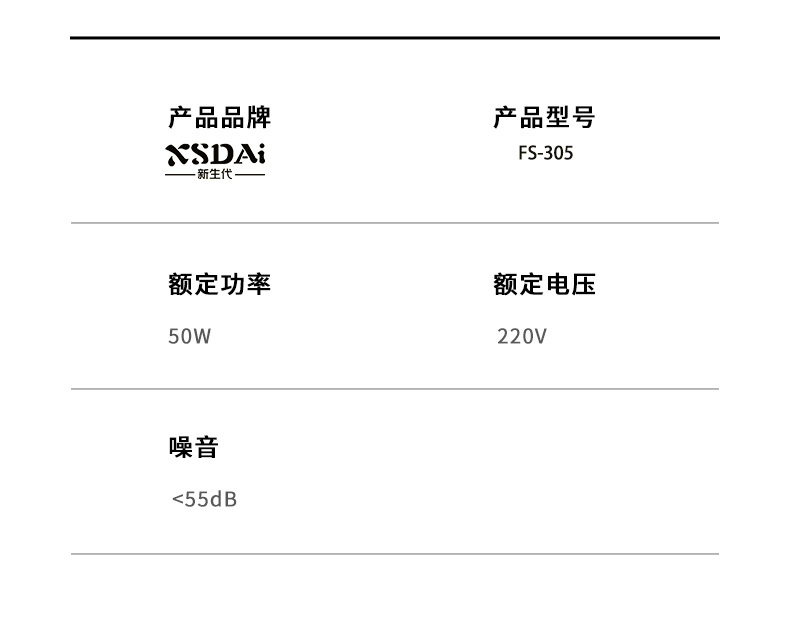 产品型号:FS-305 产品尺寸:310*306*178mm 产品功率:50W 产品风速;5.5M/S 1、3档可选,翼型大倾角扇叶,自燃舒适 2、6大核心优势,全新升级 3、全屋循环室内空气,足不出户感受清新 4、超10米远距离送风5、台立两用,清凉不受限制6、清风静夜入眠,好梦不打扰 7、超高颜值,抖音网红款