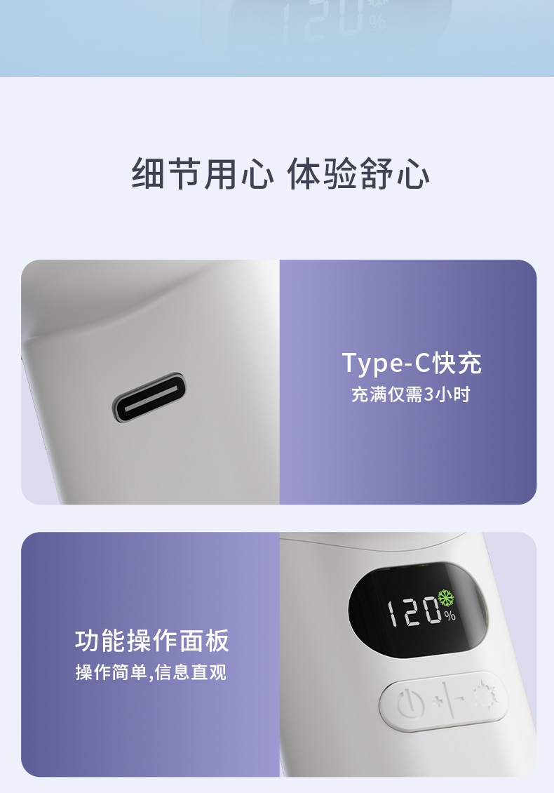 产品参数 产品规格:长*宽*高(mm):64.5*58*57 面罩/扇面直径:60mm 内箱尺寸(mm): 62*61*168.5 外箱尺寸(cm): 39.3*38.5*35.5 产品克重(Kg):0.195, 毛重(kg):24 产品卖点 1.120档无极变速可调 2.3000毫安大电池 3.ABS材质 时尚设计 4.带冰敷