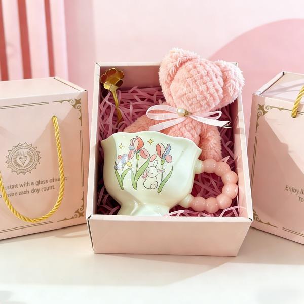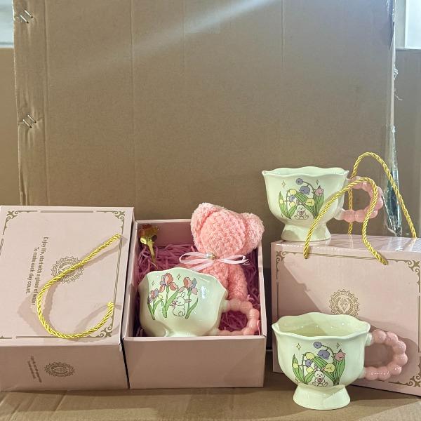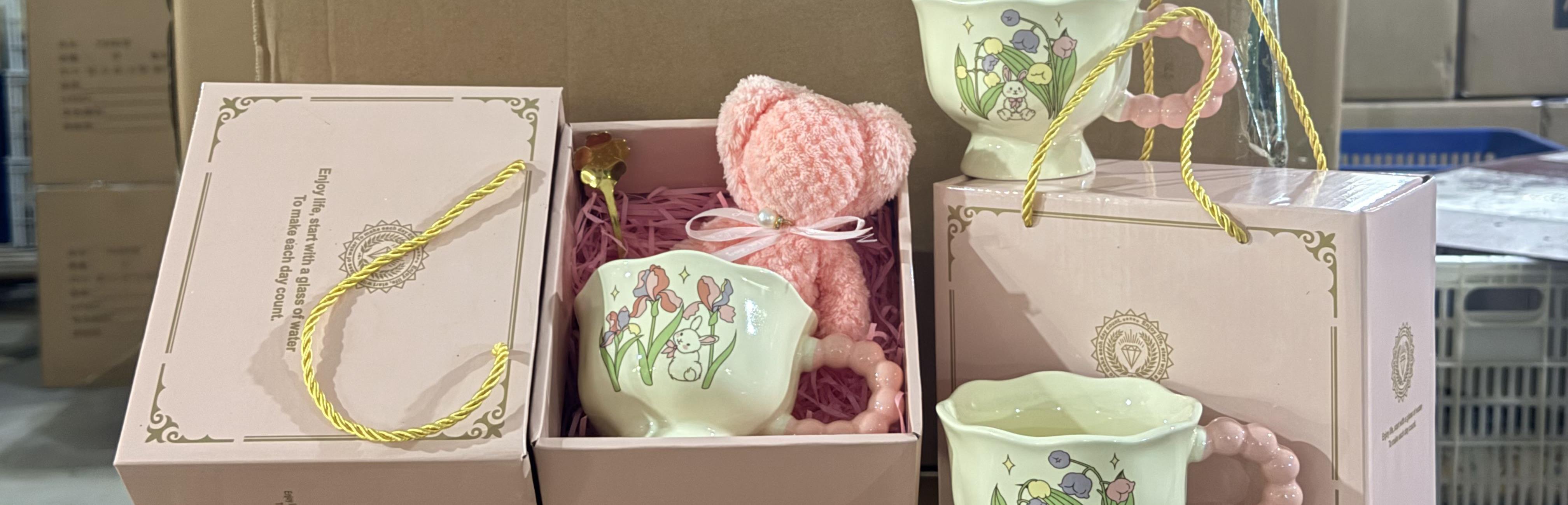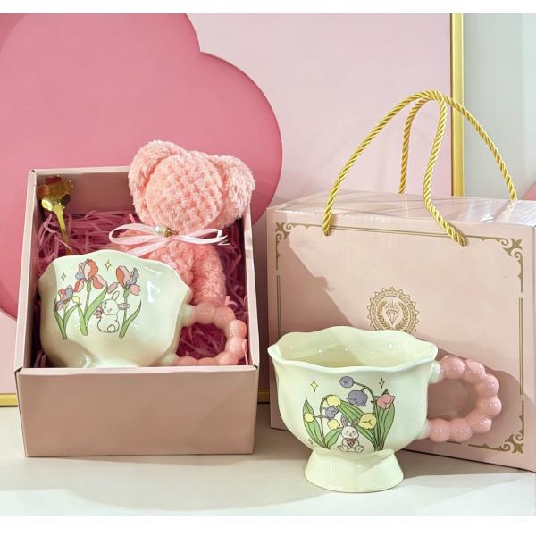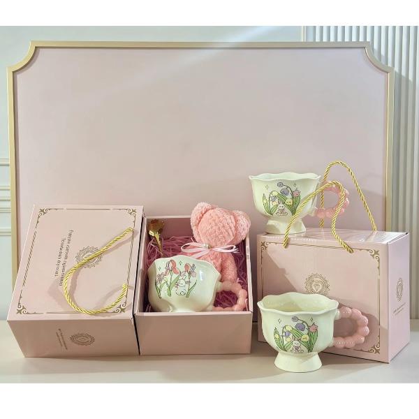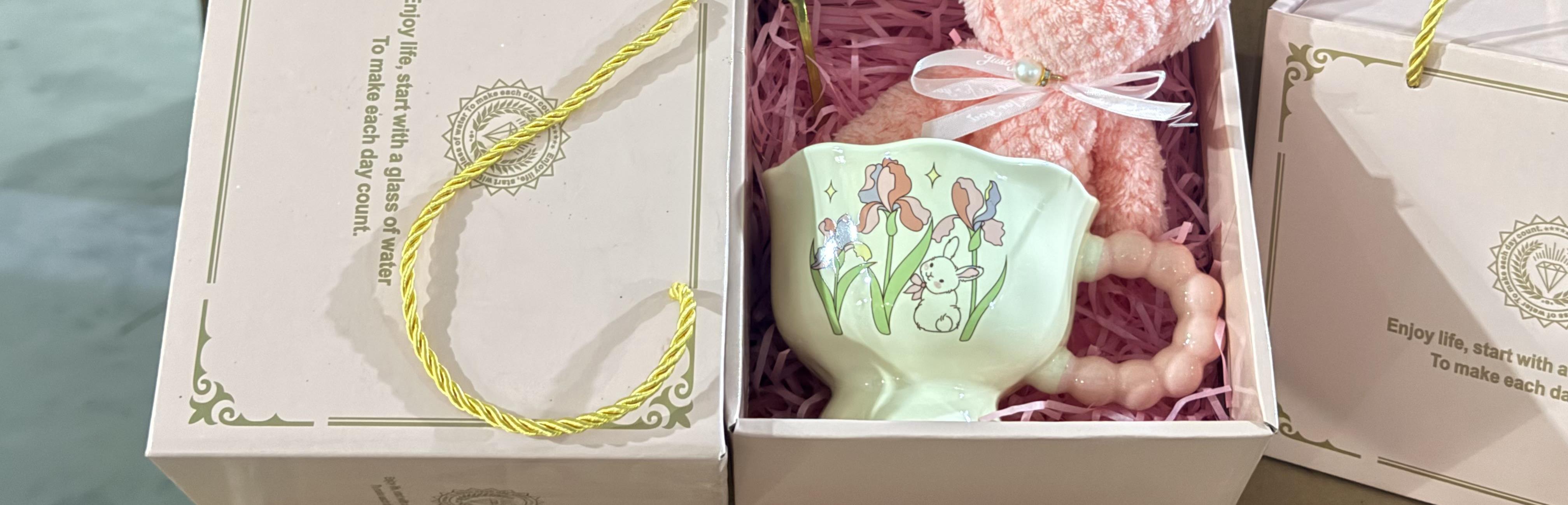 产品尺寸:口径11cm*高9cm 容量:380m 配件:1杯1勺1毛巾 彩盒:20*16.5*10.5CM 装数:36套一箱 产地:广东·潮州 外箱尺寸51*42*67 23kg/箱 花 色:可定制LOGO 产品特点: 独特的杯身设计,让人爱不释手。支持小批量定制。 高质量陶瓷,精美大方的礼盒装,有颜值兼具实用性,是送礼的佳选。