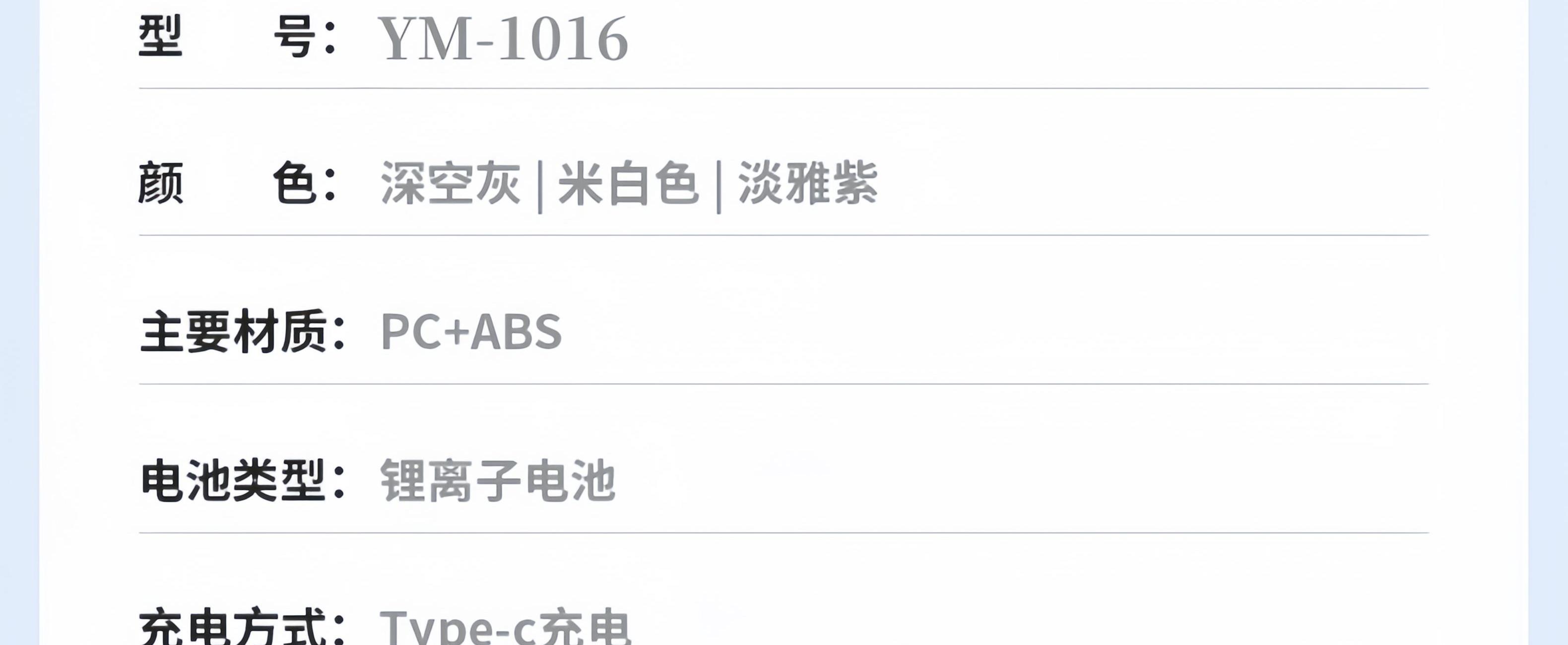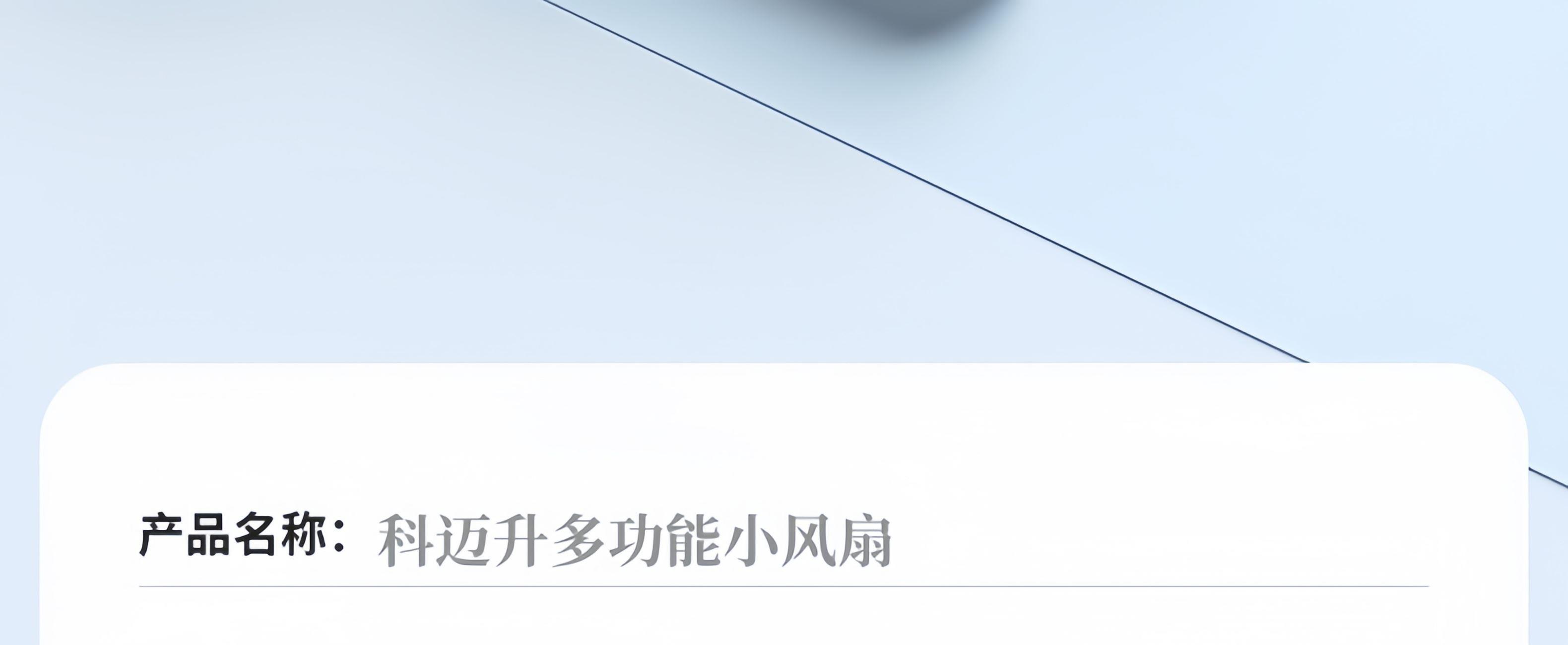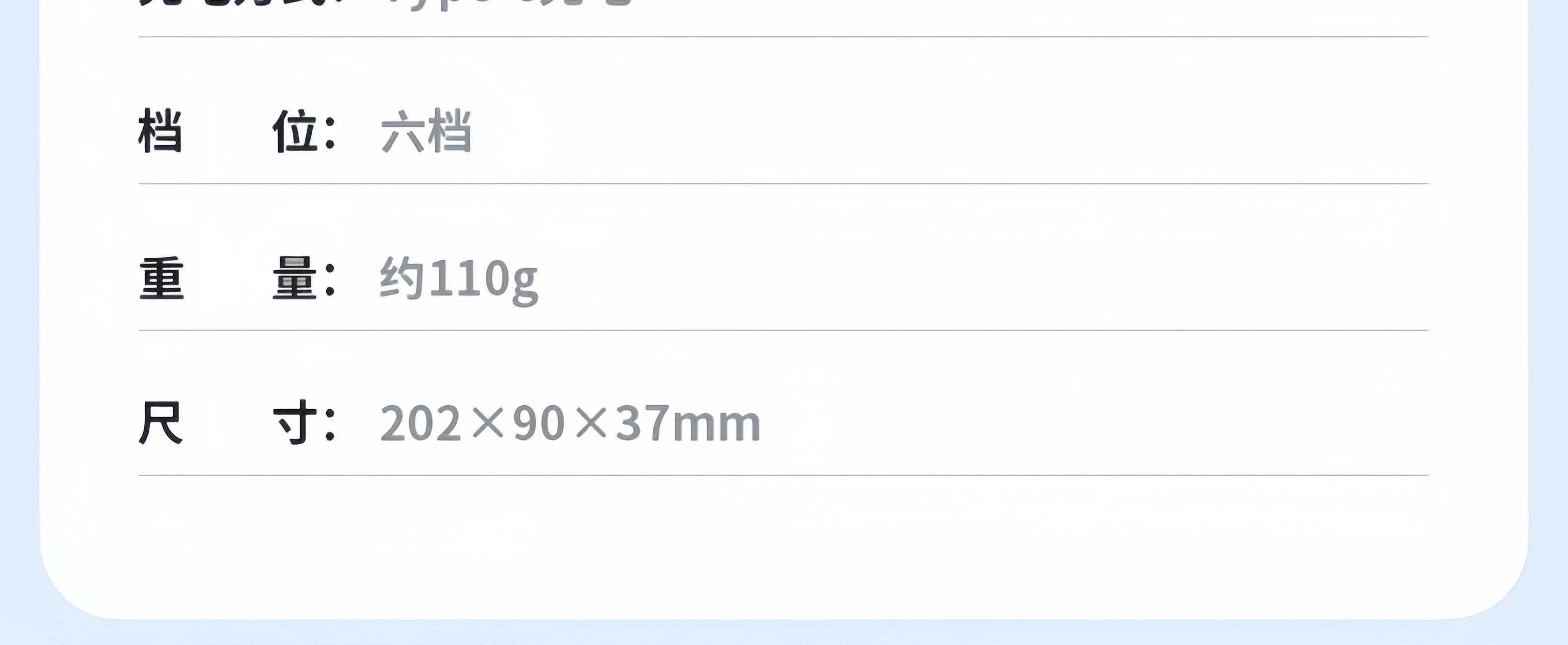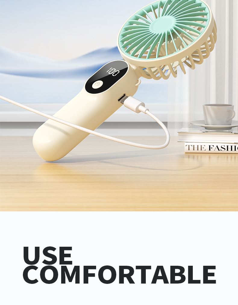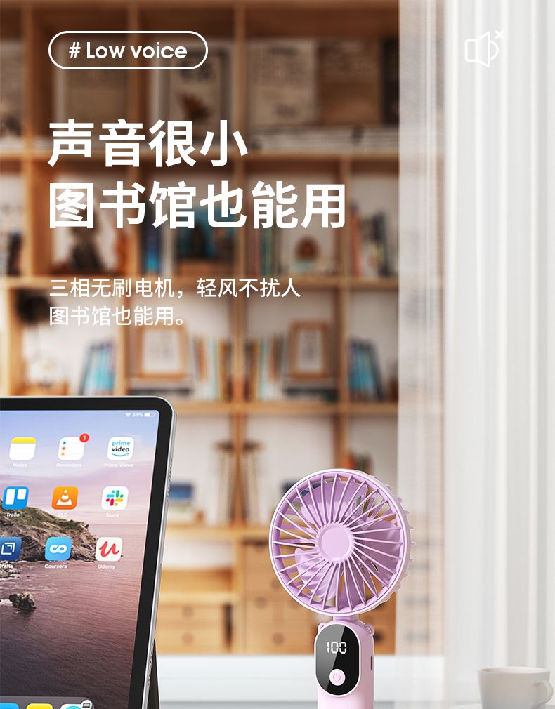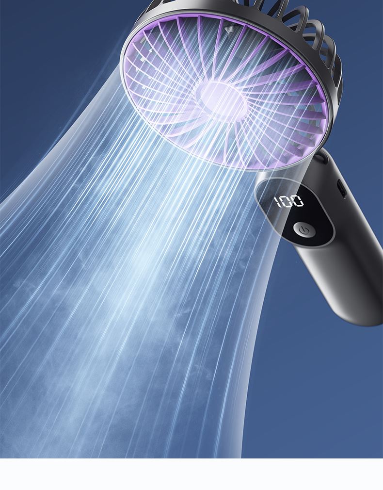 产品材质:ABS 产品功能:6档风力调节 产品容量:1200mAh 产品尺寸:202*90*37cm 产品颜色:灰色,米色 6档调节,风力随心选;智能数显外屏,档位清晰可见;可折叠,可挂脖;搭配香薰功能,让这个夏天充满香气。
