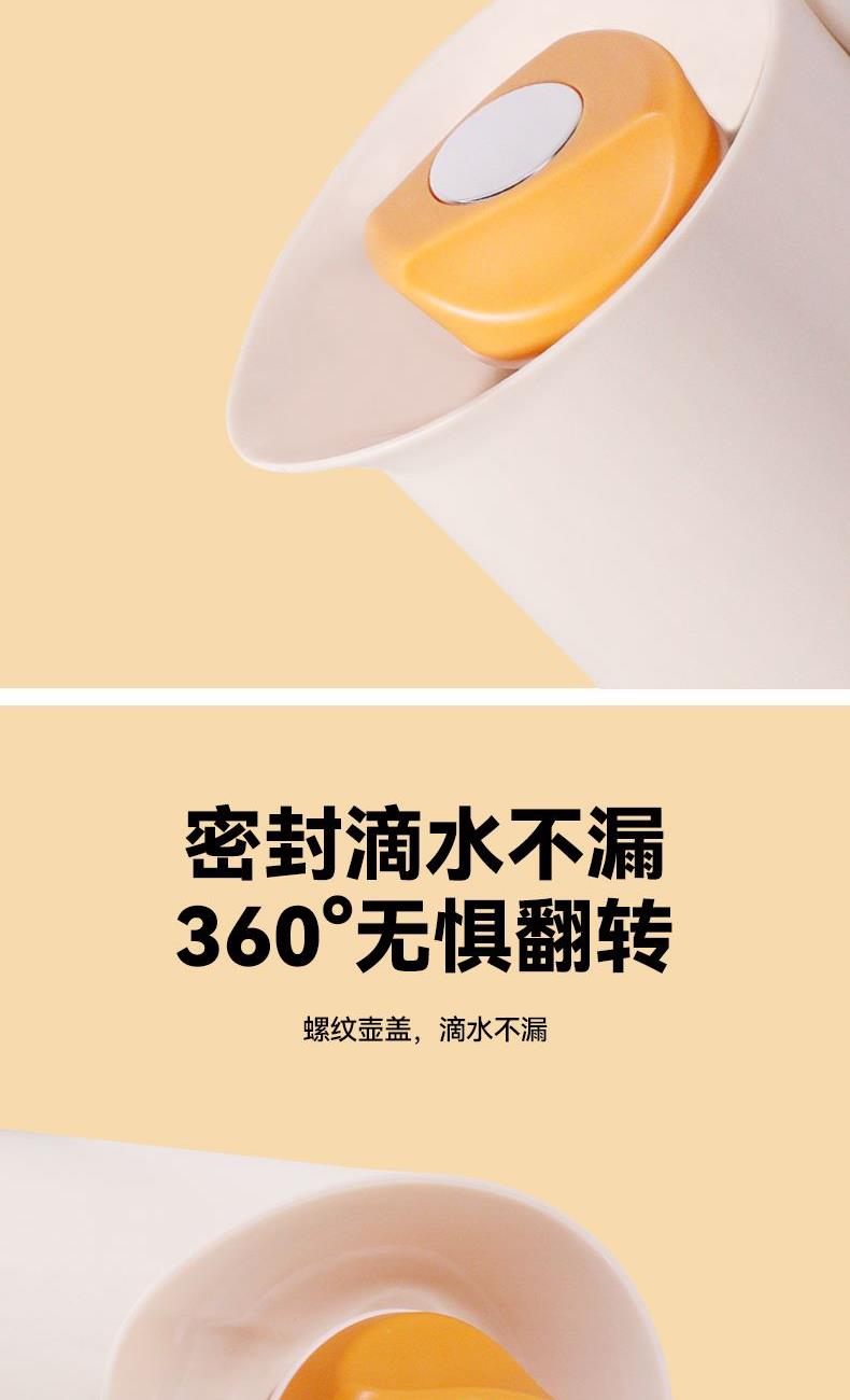 旋紧式壶盖,倾斜倒水时不易渗漏,适合车载、户外使用。