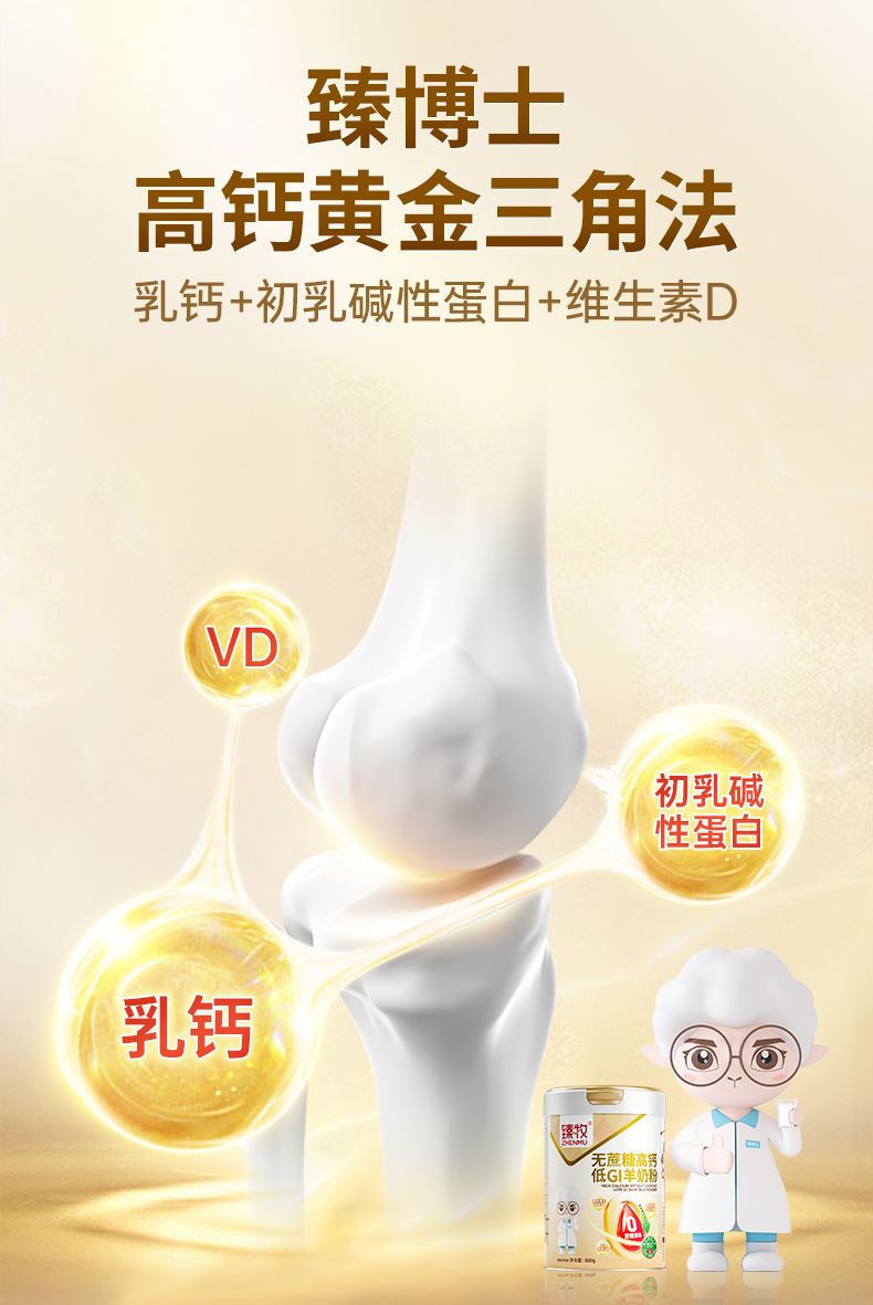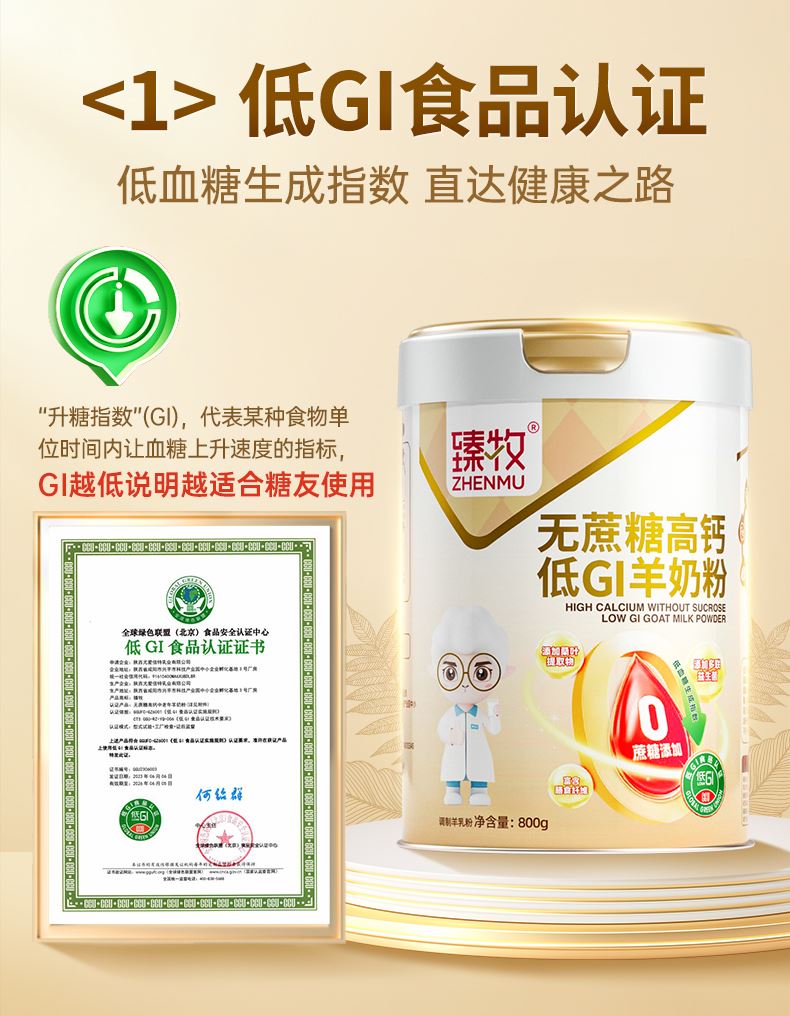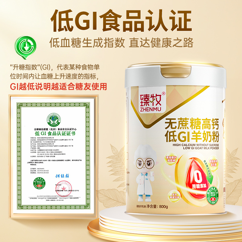 臻牧无蔗糖高钙低gi低升糖羊奶粉800g