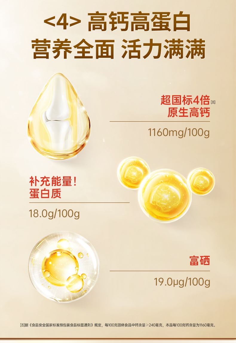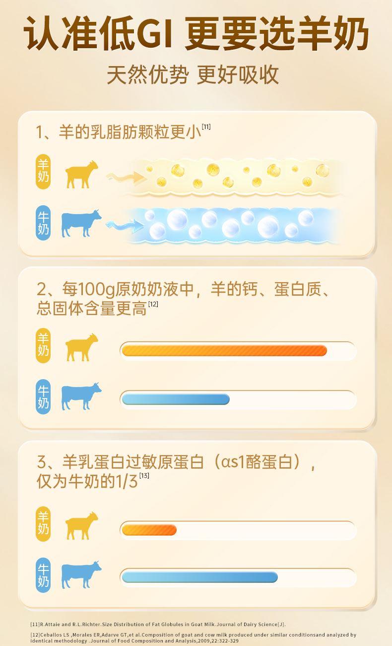 1、中老年羊奶粉榜全网销售额 2、低GI食品认证,0蔗糖,三高人群适合喝 3、超国标4.8倍高钙含量,每100g含钙1160mg 4、10联益生菌,促进有益菌生长,助力肠道舒适畅通 5、特别添加初乳碱性蛋白 6、不易上火,不易过敏,易吸收,乳糖不耐可尝试