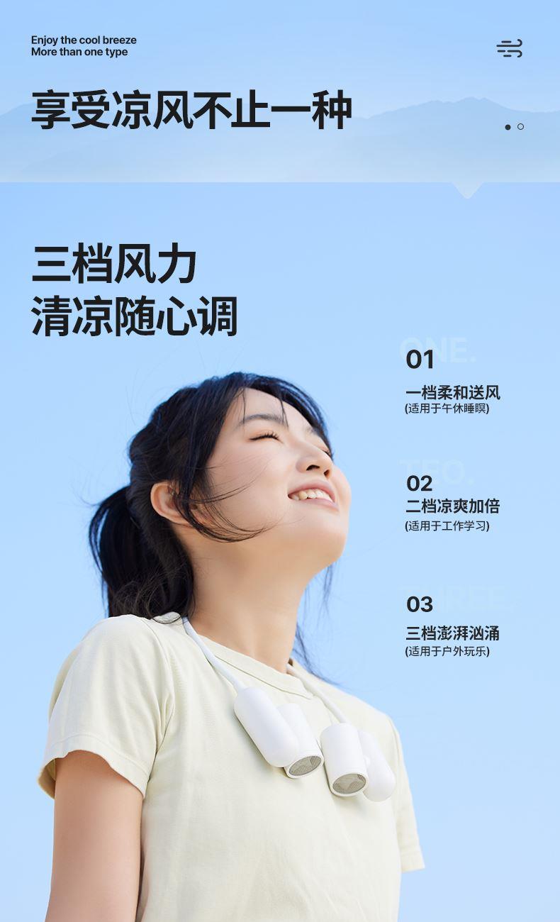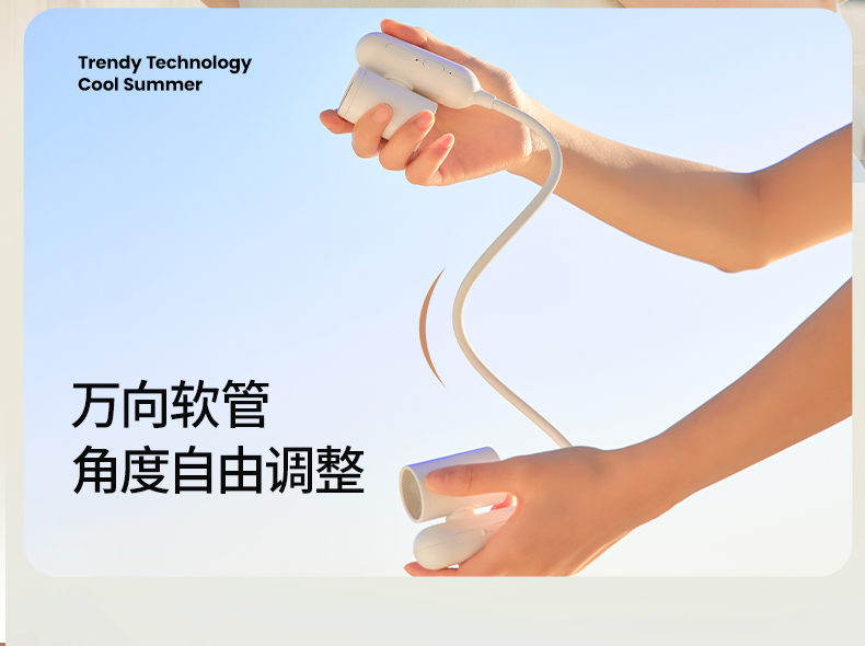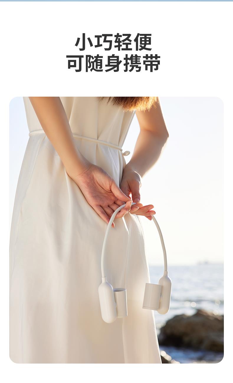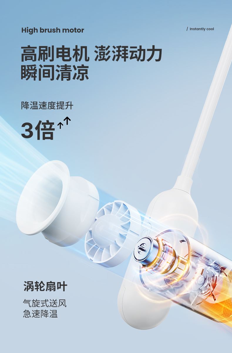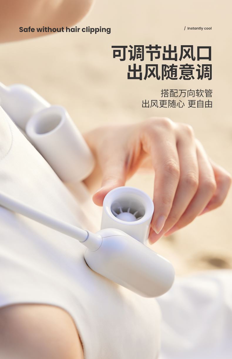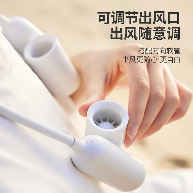 产品功能: *可调节出风口、强劲大风力 *三档风速、万向软管轻便好收纳 *2000毫安长续航、安全栅格 * 支持小批量定制LOGO 产品参数: *颜色:白色/蓝色 *材质:ABS *产品尺寸:228*244*35mm *彩盒尺寸:189*52*268mm *外箱尺寸:44.6*39*55.7cm *单个净重/毛重:242g/378g *整箱净重/毛重:12.1kg/12.9kg **电池容量:2000mAh