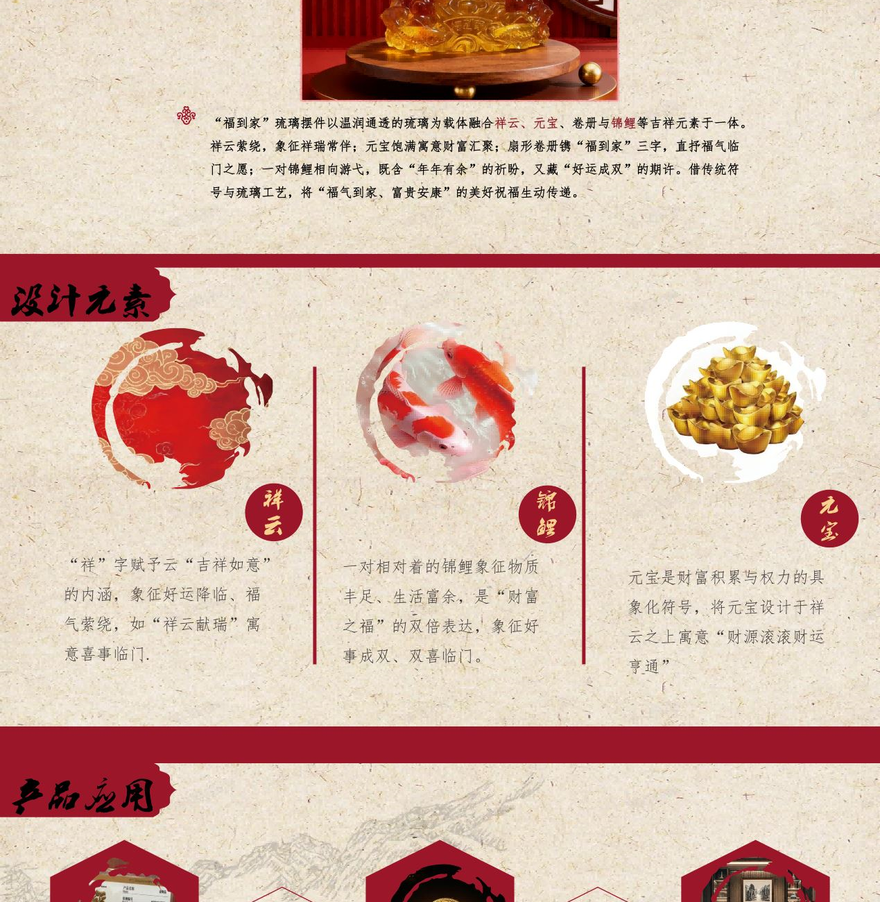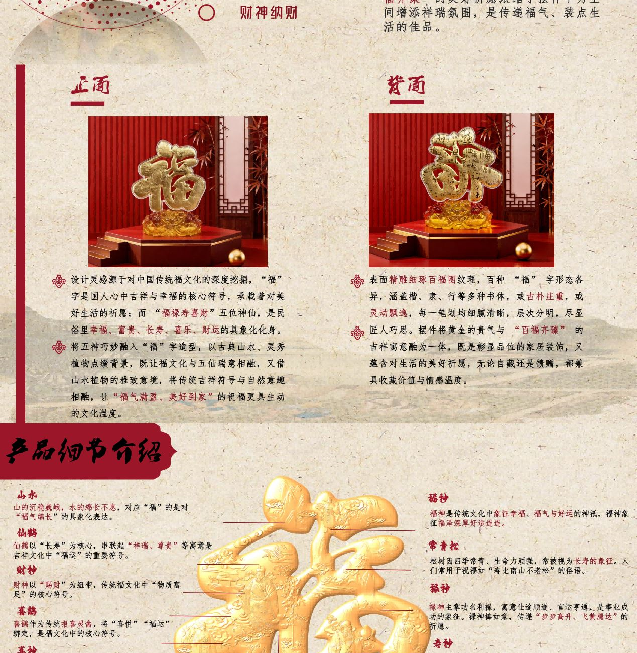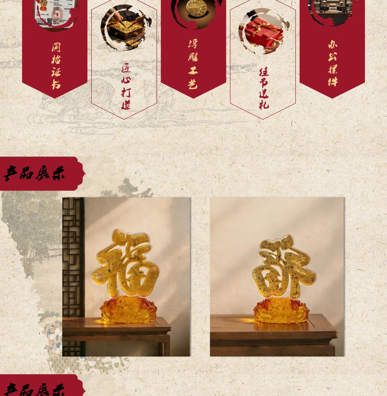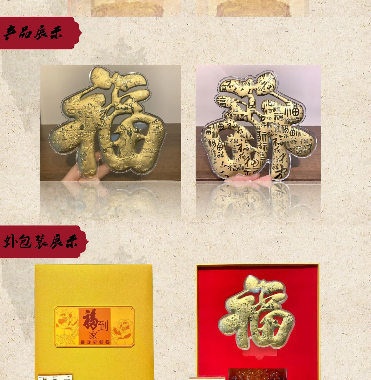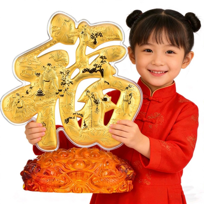 摆件规格:足金999克重:0.06g 产品尺寸:185.45mm*180mm 琉璃尺寸:160*85*60mm 0.06克足金999,采用立体浮雕工艺,金质纯净,细节精微。 “福”字融合传统吉祥图纹,象征福运临门、家业兴旺。琉璃底座饰以双鱼云纹,寓意财气绵延、年年有余。 家居陈列:客厅、书房,增添福运氛围。 商务礼赠:保险活动、企业庆典,传递祝福心意。 收藏赠礼:兼具文化价值与情感纪念意义。