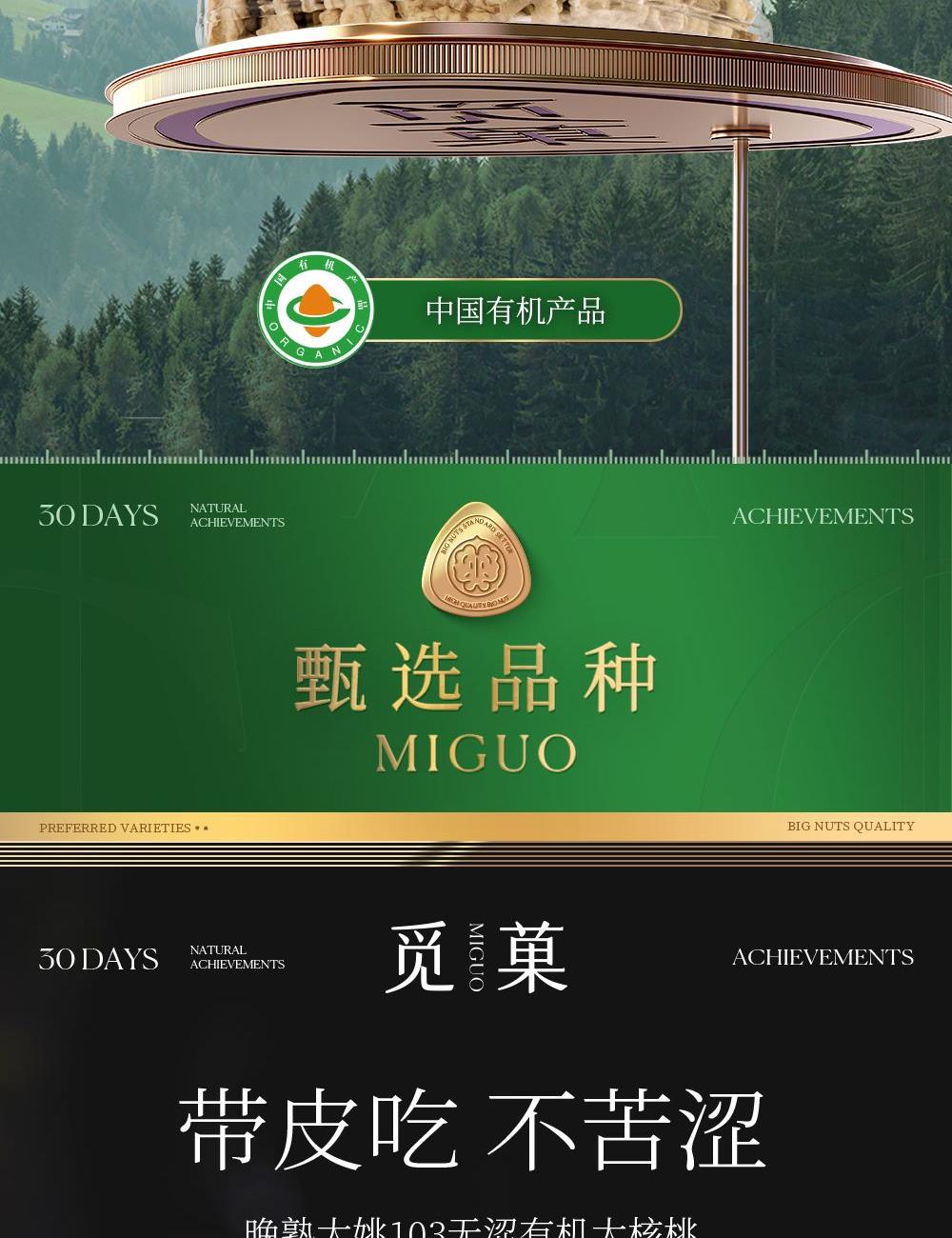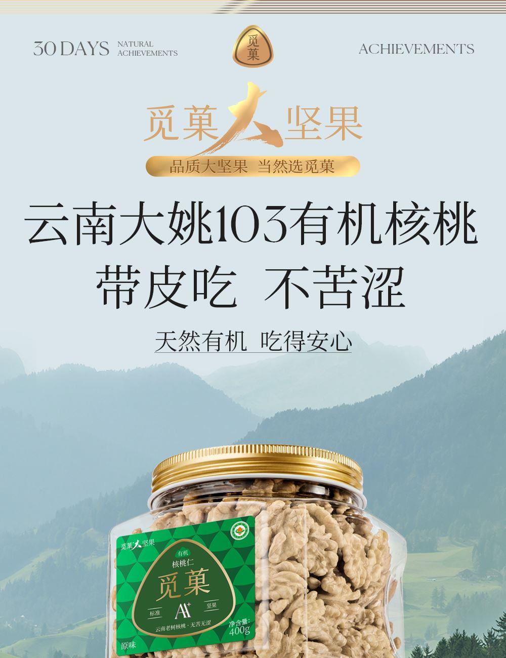 天然有机 云南大姚103有机核桃 带皮吃 不苦涩 天然有机 吃得安心 自然营养 昼夜温差逾15℃ 养分积累更丰富 创新加工 创新三段式烘焙 三段式烘烤技术 保留坚果高营养