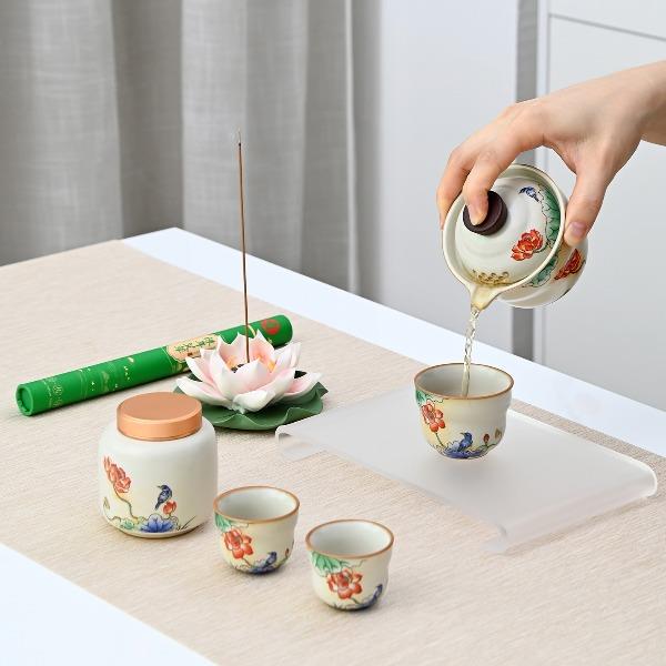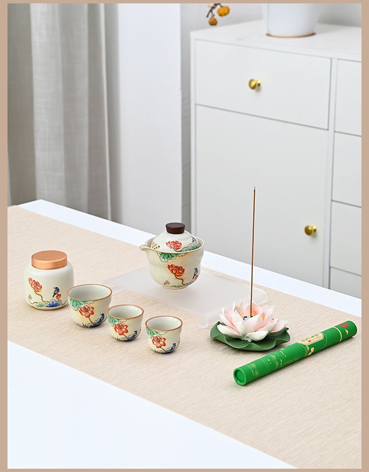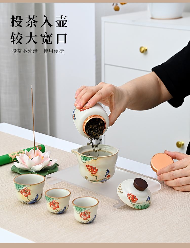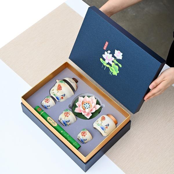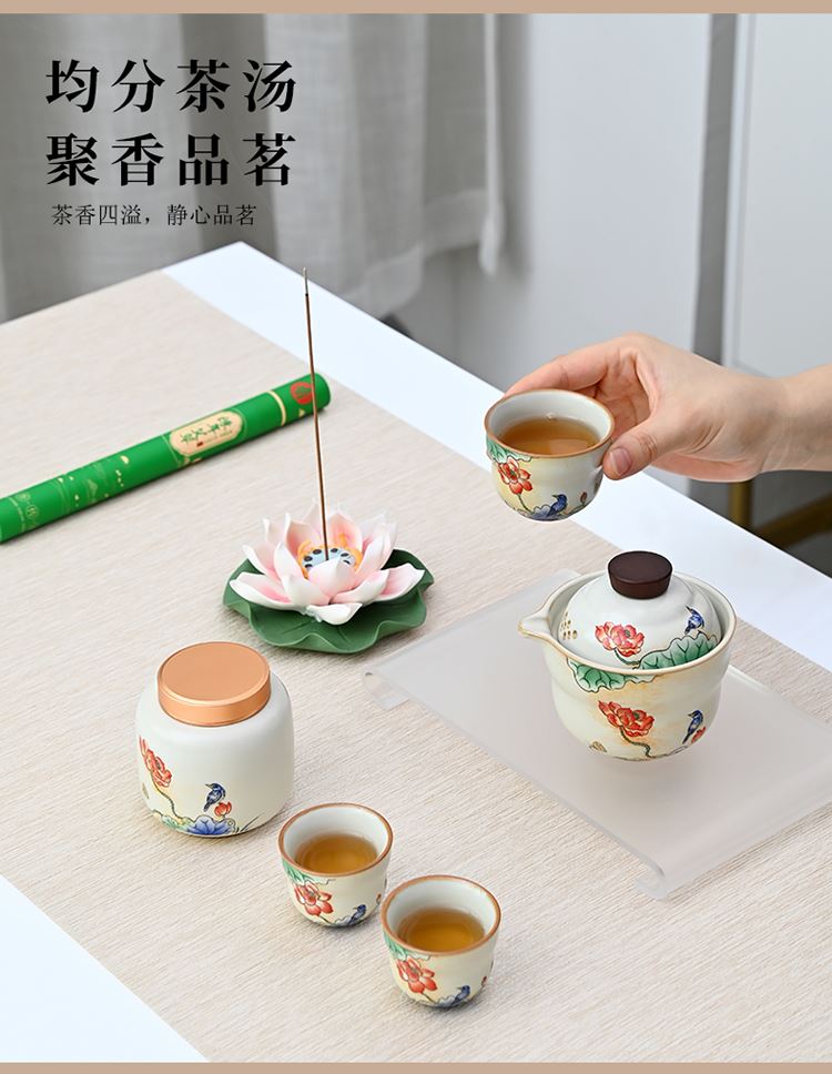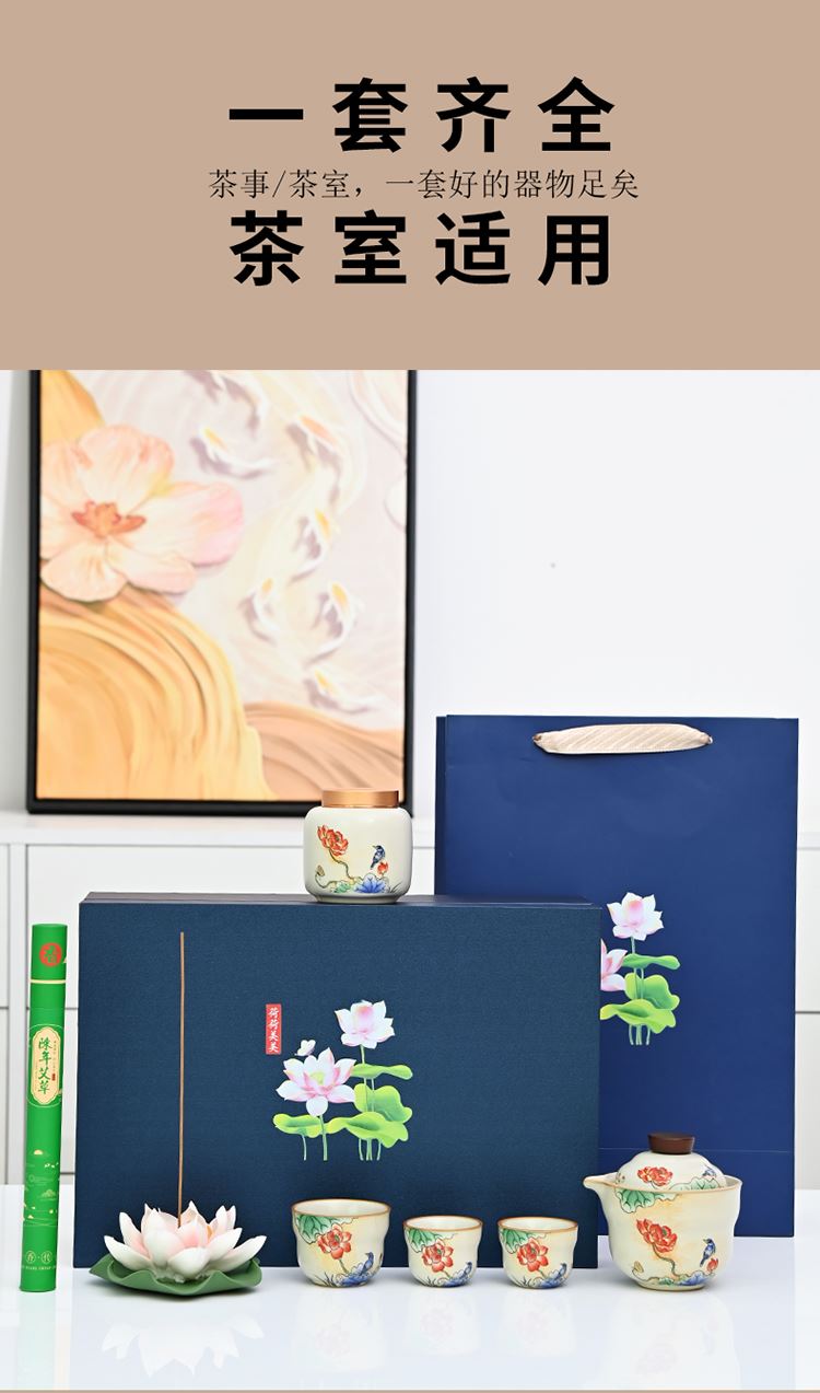 壶:10*9厘米190ml 品茗杯:6.4*4.8厘米90ml 茶叶罐:8**7厘米 礼盒:34*24*11厘米 精选高岭土等优质原料,经高温烧制而成,质地致密,气孔率小,吸水率低,不易吸附异味,清洗便捷.手工捏花,造型美丽,寓意美好,搭配礼盒包装,自用赠礼两宜。