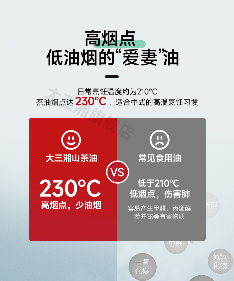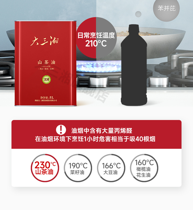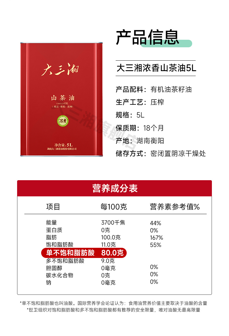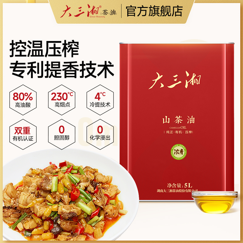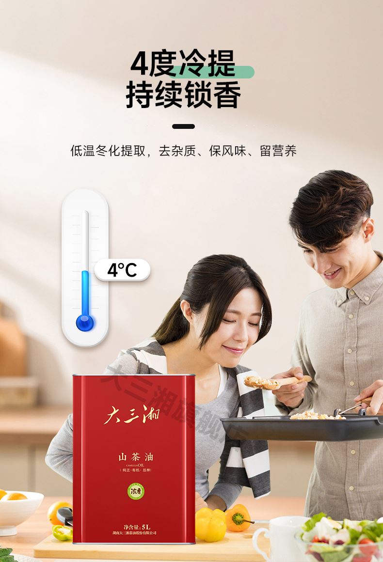 产品配料:有机油茶籽油 生产工艺:物理压榨 规格:5L 保质期:18个月 产地:湖南衡阳 储存方式:密闭置阴凉干燥处 1、浓香纯正,风味浓郁,不止是土榨坊的味道 自创风味浓郁的浓香山茶油增香技术,将茶油中特有的芳香气味大部分封存在茶油里。 2、230 ℃高烟点 热锅下油味更浓 230°的高烟点,符合中国人的烹饪习惯,高温烹饪更能激发浓香茶油香味,且炒菜少有油烟,减少油烟危害。 3、荤菜好搭档 入味不腻 茶油分子小,渗透力强,能够激发食材原有风味,而且清爽不油腻,尤其适合做荤菜。