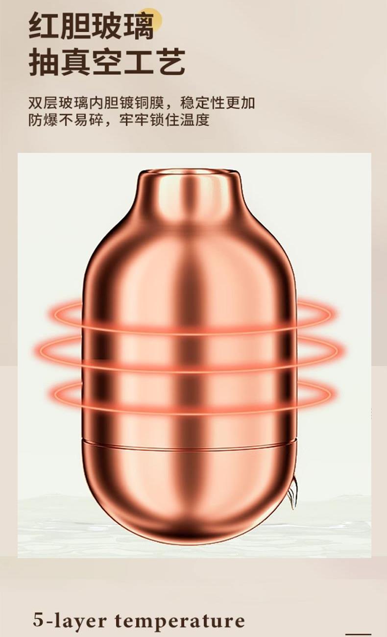 高硼硅红胆内壁耐高温(-5℃~120℃),锁住温度更锁住新鲜、晨起的热茶,母婴用水、深夜的暖饮,始终温热如初。