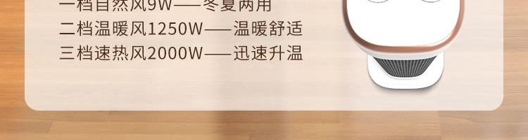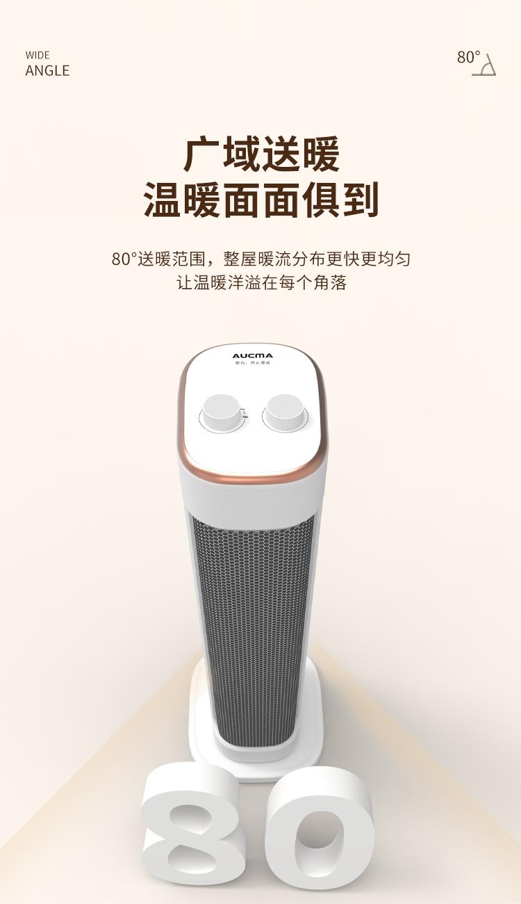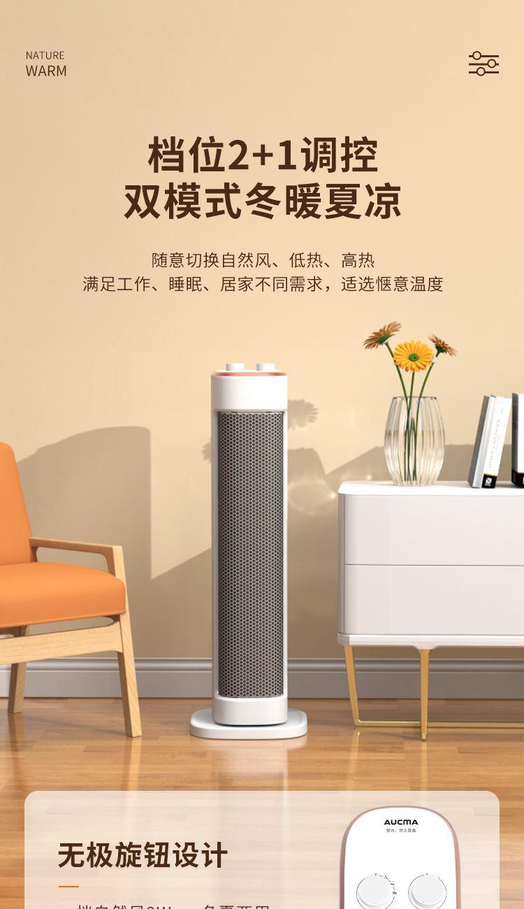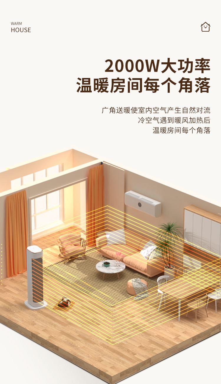 适用面积:21-25㎡ 加热方式:陶瓷加热 档位:3档 额定功率:2000W 额定电压:220V 档位2+1调控,双模式冬暖夏凉 1s速热,即刻化解寒意 80度广域送暖,整屋暖流分布更快更均匀 倾倒秒断电,过热断电保护,阻燃外壳材料 ptc发热体无明显亮光,轻音低噪,安睡整晚