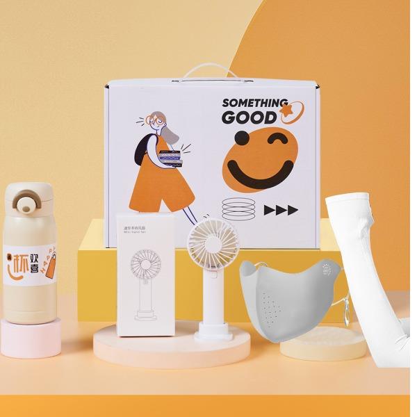 产品型号:26027 产品组合:保温杯+风扇+UV口罩+UV袖套 风扇:7*4*15cm 1200毫安 杯子:7*17.5cm,350ml 口罩:13.5*15cm 袖套: 10*38cm 材质:不锈钢、PP、牛津布 包装:彩盒 备注:口罩、袖套颜色随机