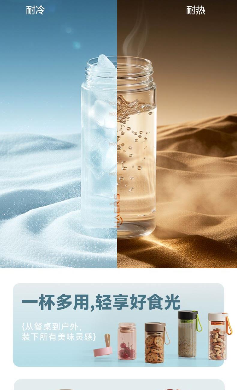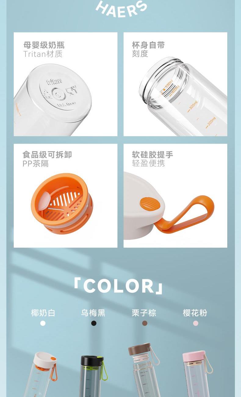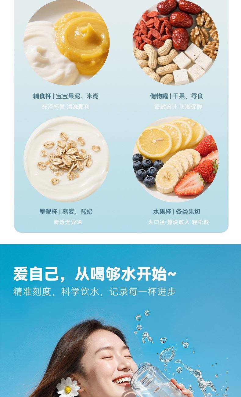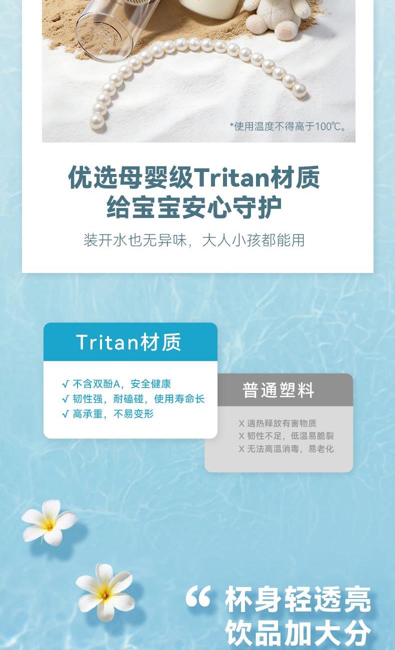 婴幼儿奶瓶材质 安全健康 舒适软胶提手,随拎即走 独立茶仓 茶水分离 刻度掌控,科学饮水