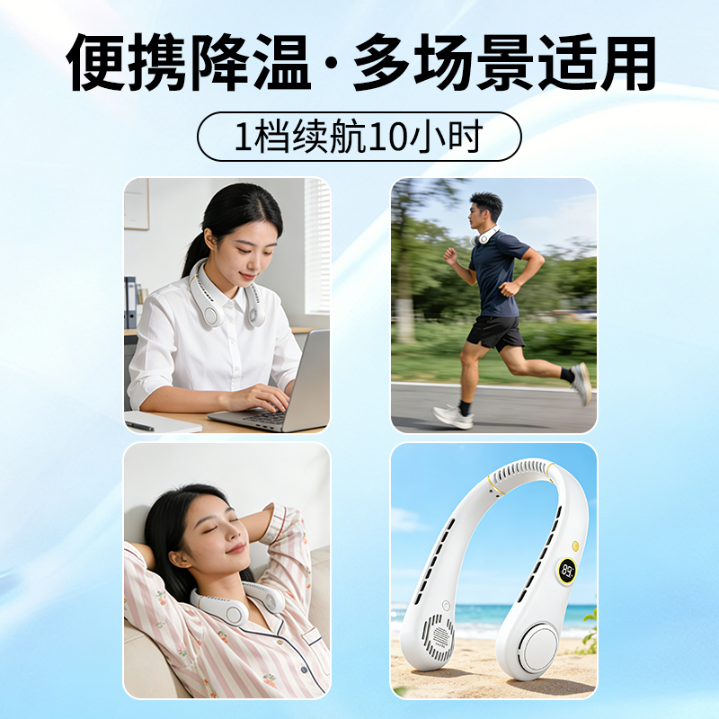 • 思薇科林无叶挂脖风扇小型便携戴式随身挂脖子降温神器