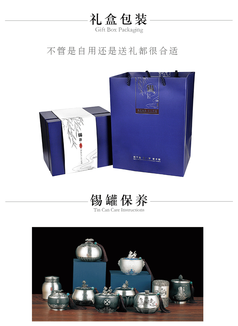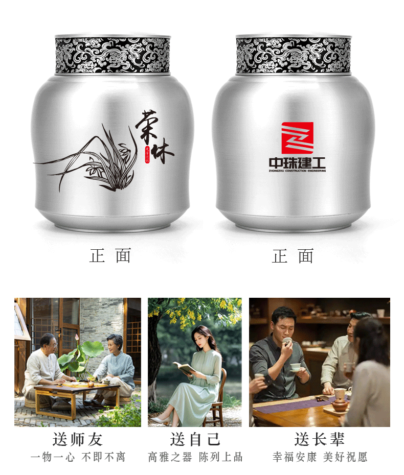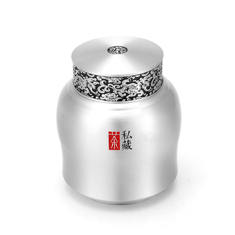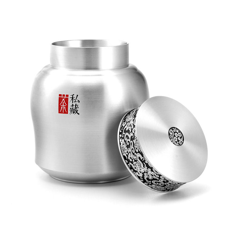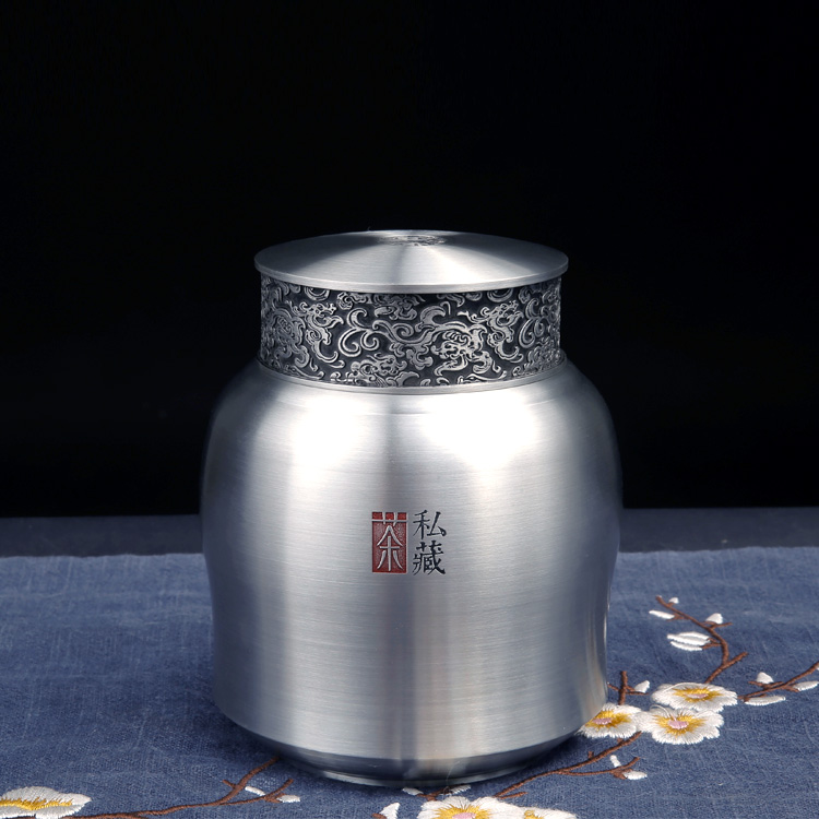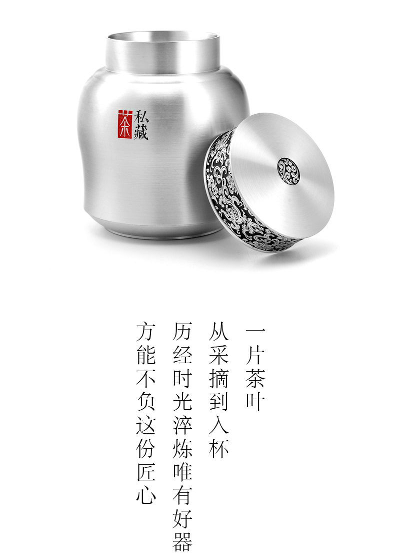 产 品:私藏茶 规 格:φ100*119mm 容 量:约135g装 (铁观音) 重 量:519g左右 支持个性化定制 ✅ 纯锡材质,存茶优势拉满:密封防潮、防串味,恒温锁鲜,保留茶叶本香,适配全品类茶品,越存越醇。 ✅ 匠心工艺,颜值质感双在线:拉丝罐身温润抗造,罐盖缠枝龙纹浮雕古韵盎然,「私藏茶」红印彰显格调,茶桌之上尽显雅致。 ✅ 支持专属定制,礼赠自藏皆宜:罐底可刻 Logo、姓名、祝福语,打造独特的专属茶仓,送长辈、客户体面有心意,自用存茶更具仪式感。
