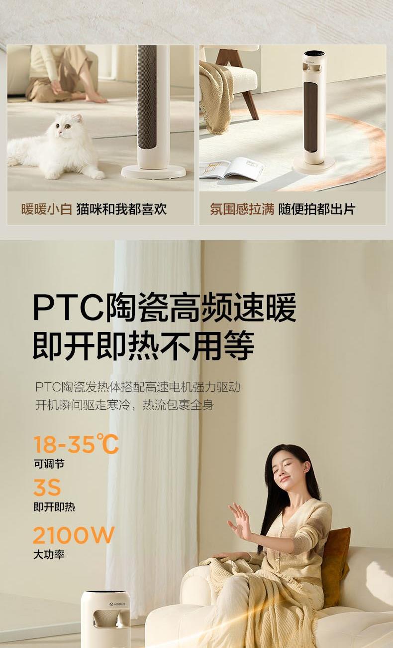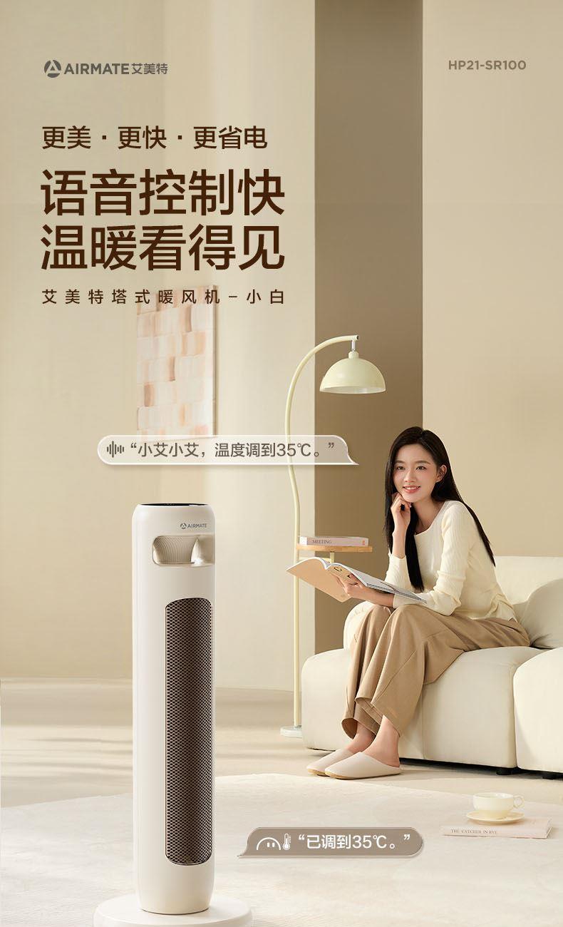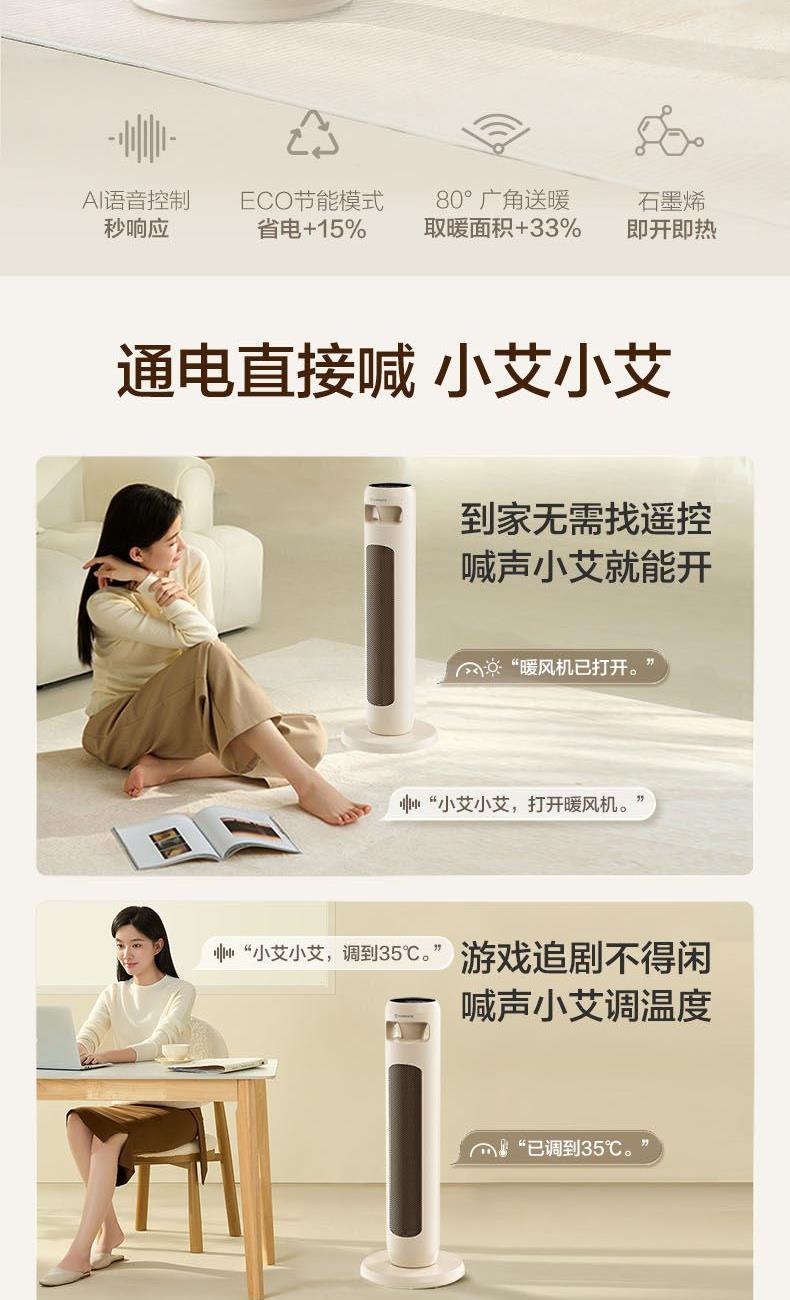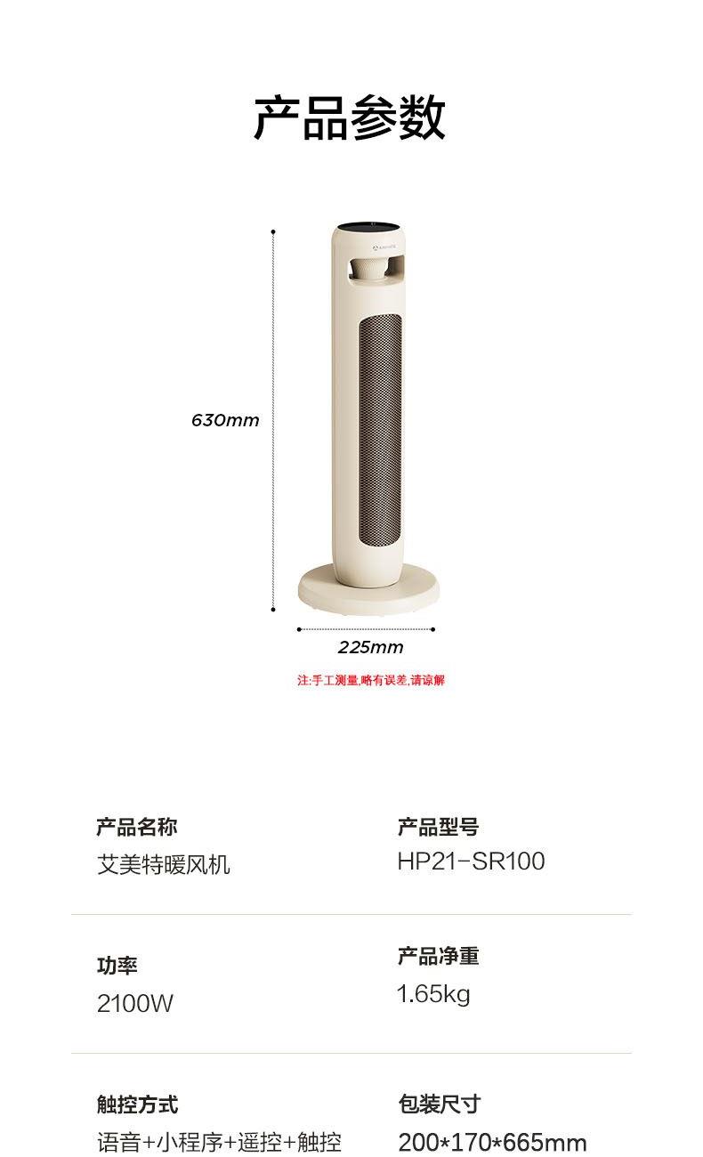 • 艾美特塔式暖风机遥控语音石墨烯HP21-SR100