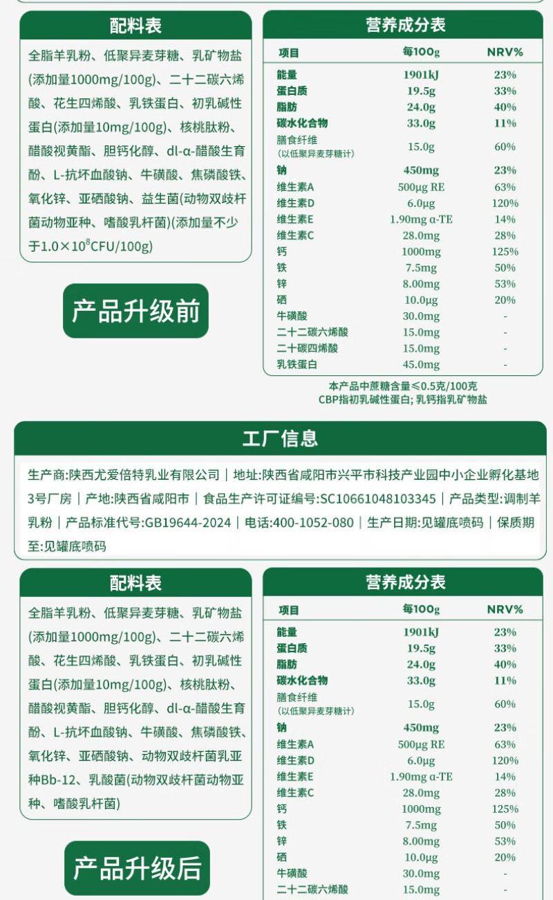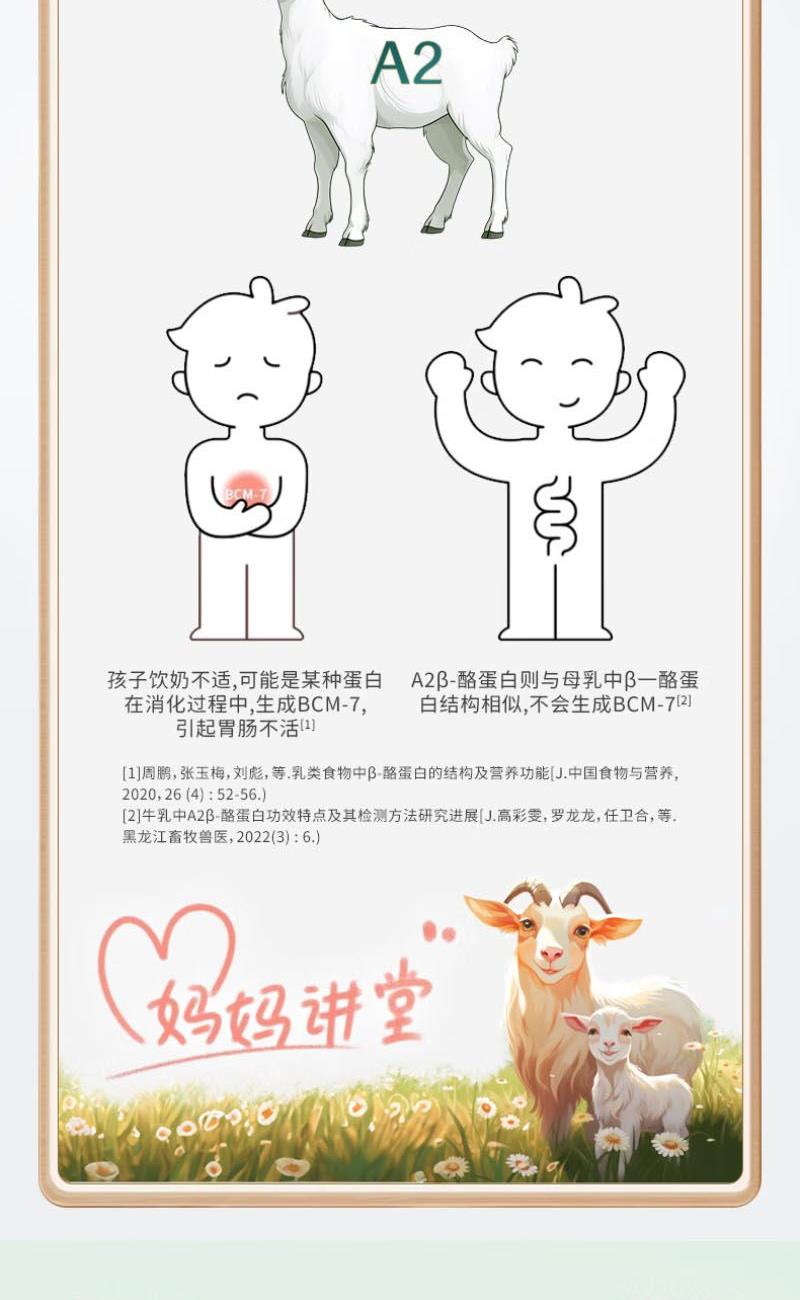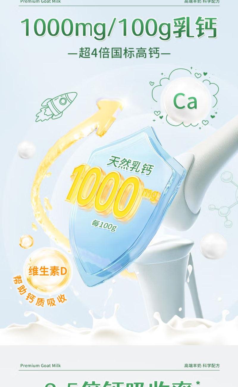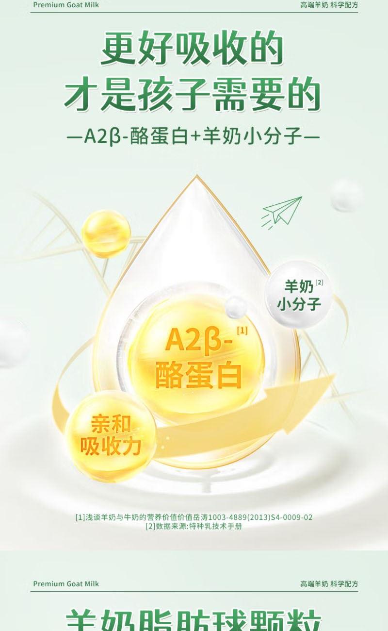 1、每1000g含高达100mg乳钙,超4倍国标高钙,更添加维生素D 帮助钙质吸收,2.5倍吸收率助力孩子成长 2、特别添加CBP初乳碱性蛋白,补钙同时锁住钙不流失,促进骨骼健康发育 3、羊奶脂肪颗粒球更小,更容易吸收 4、A2β-酪蛋白更温和,不易产生过敏物质引起肠胃不适