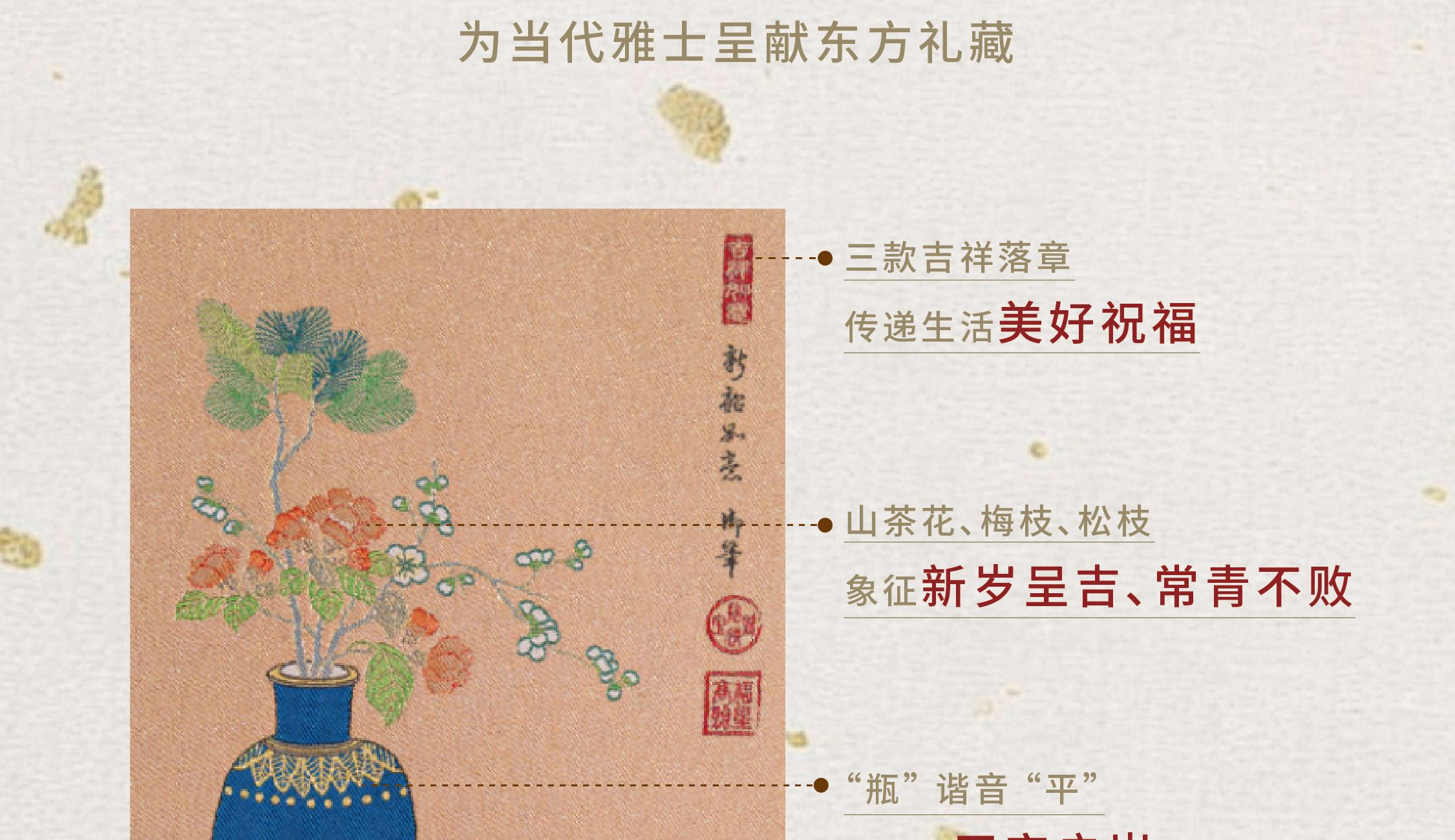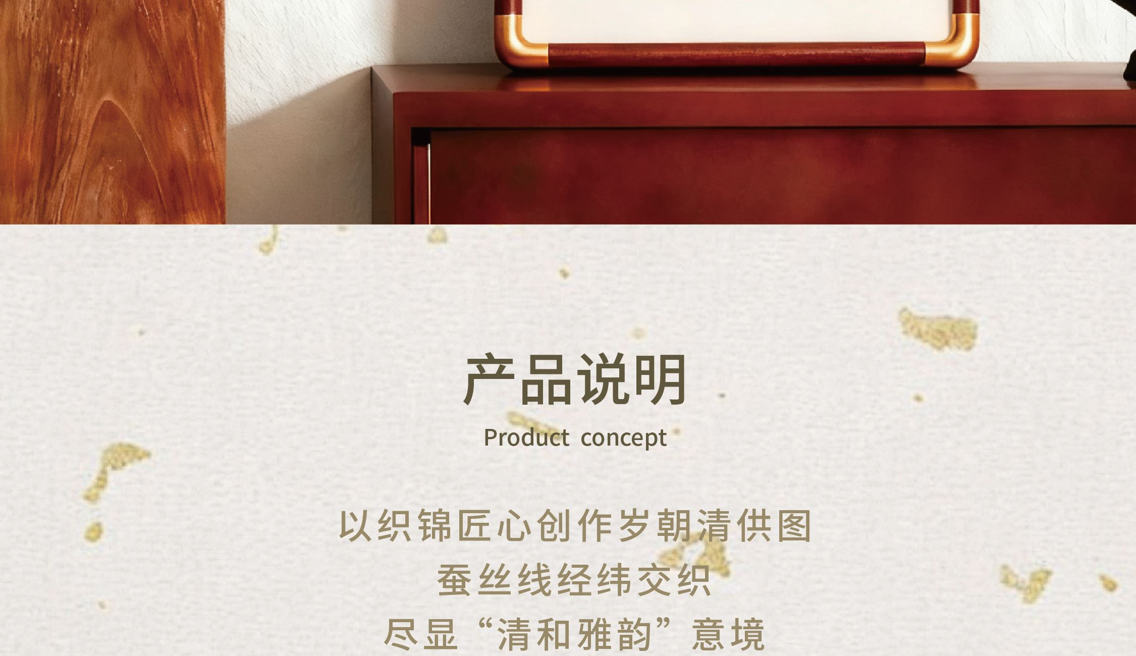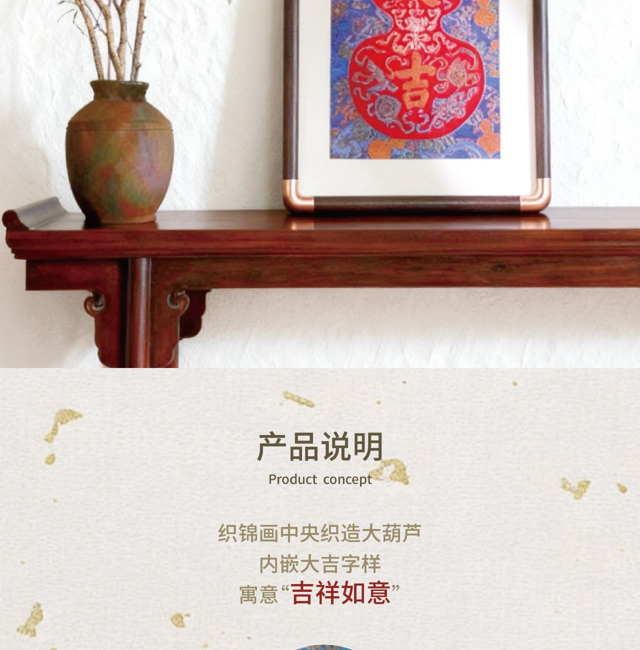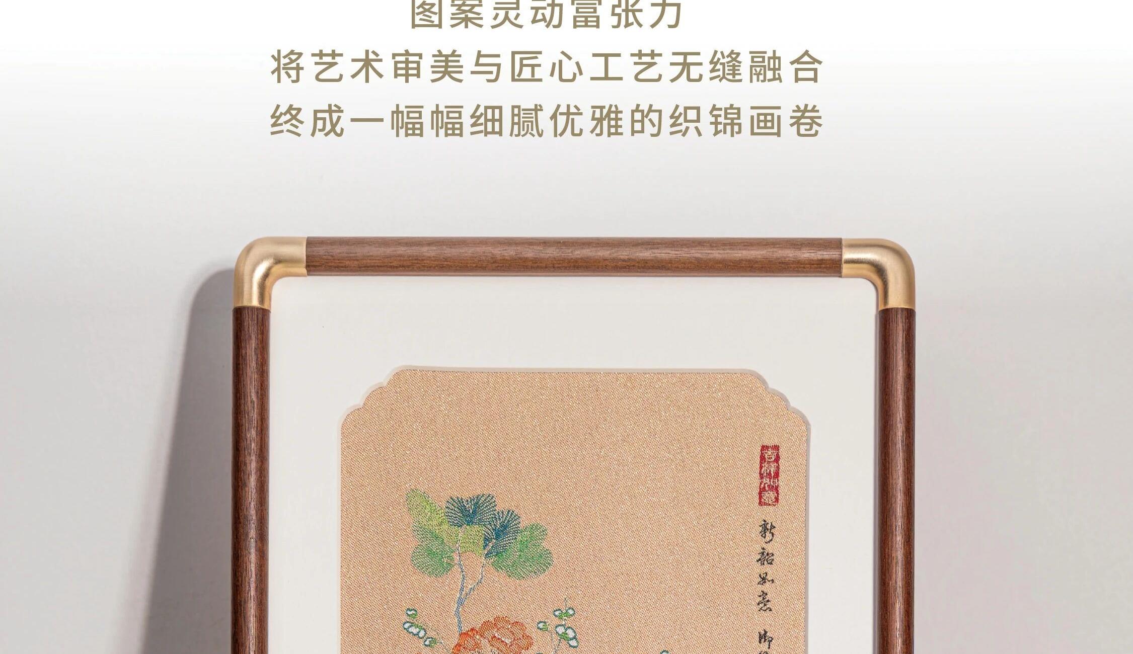 [内含] 真丝织锦画摆件 Ⅹ 1 规格:画芯130mm×220mm 外框170mm×280mm 材质:100%桑蚕丝(金银线除外) 画框:实木框+合金转角 包装盒尺寸:380mm×250mm×65mm 手拎袋尺寸:420mm×270mm×70mm