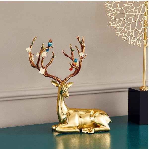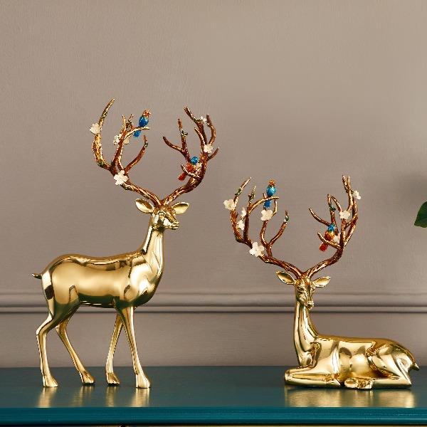 花鸟鹿黄铜客厅电视柜摆件乔迁家居礼品