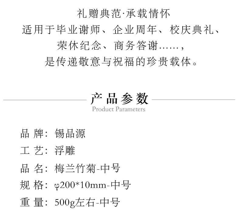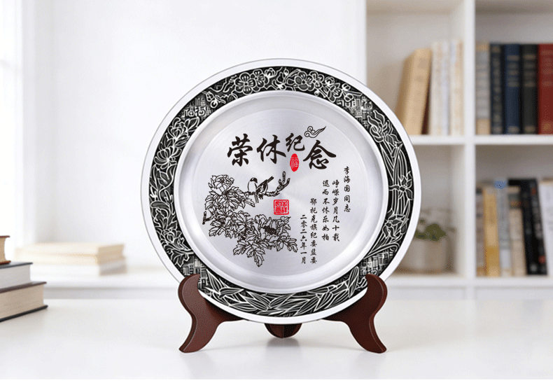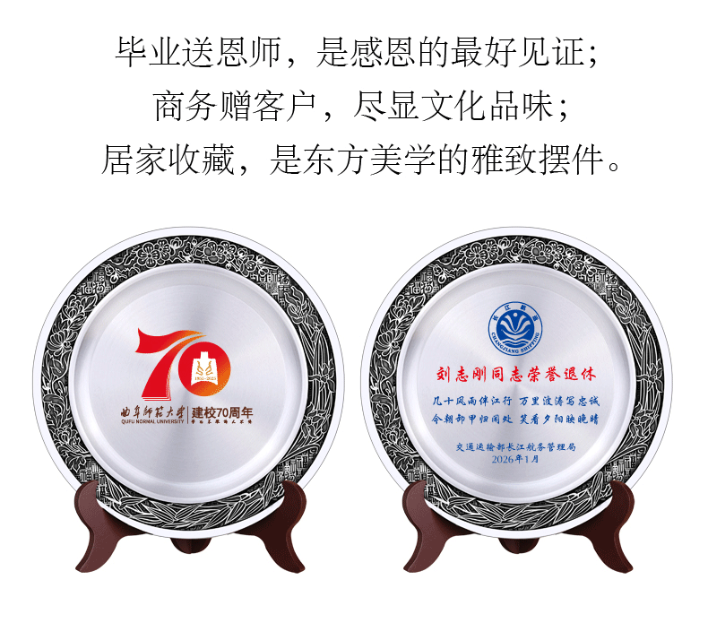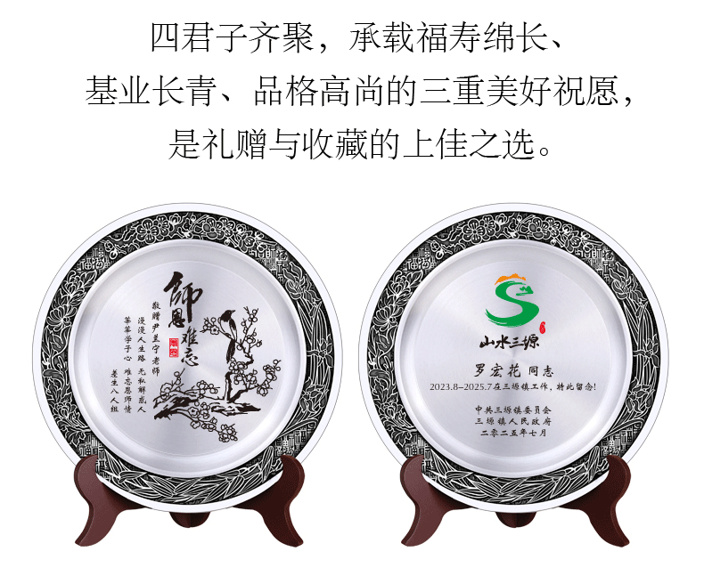 锡品源梅兰竹菊锡盘送老师教师节荣休周年校庆商务奖杯荣誉可定制
