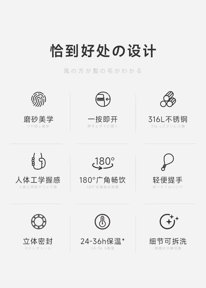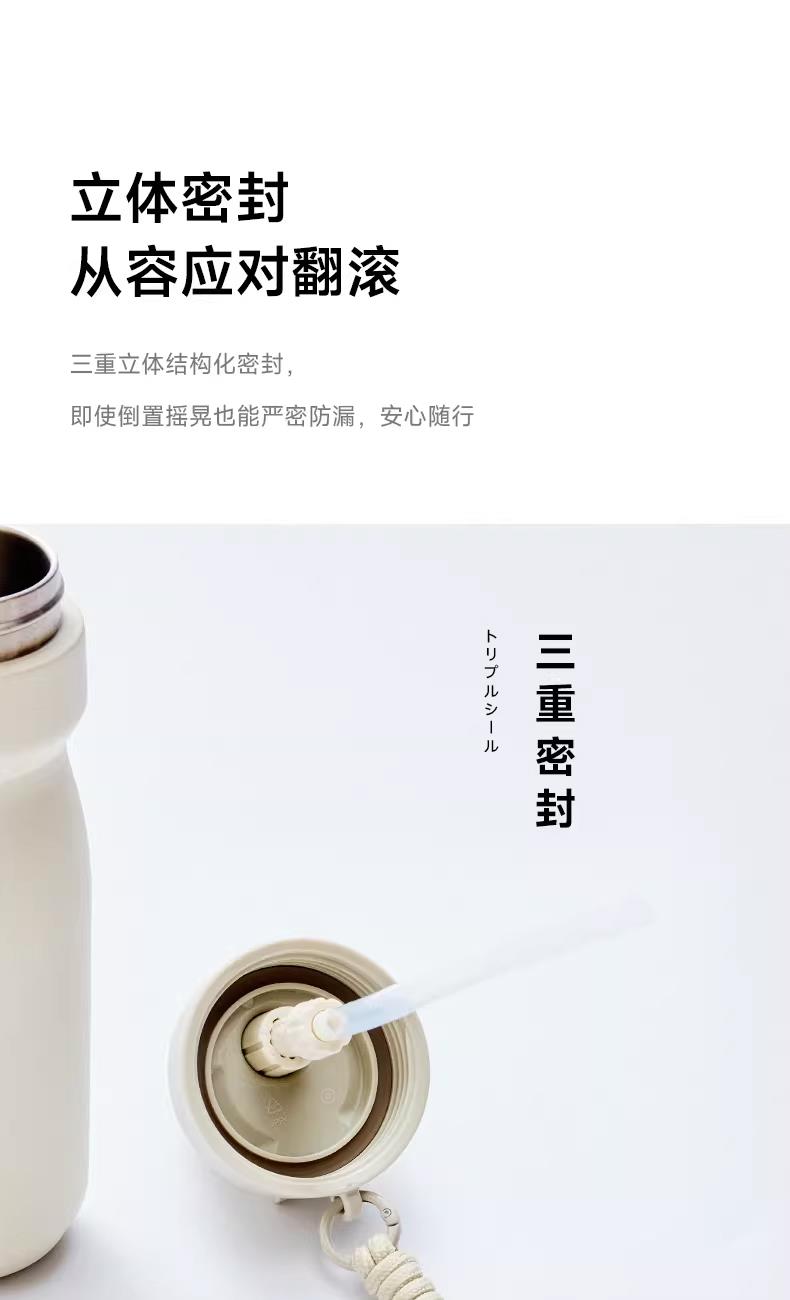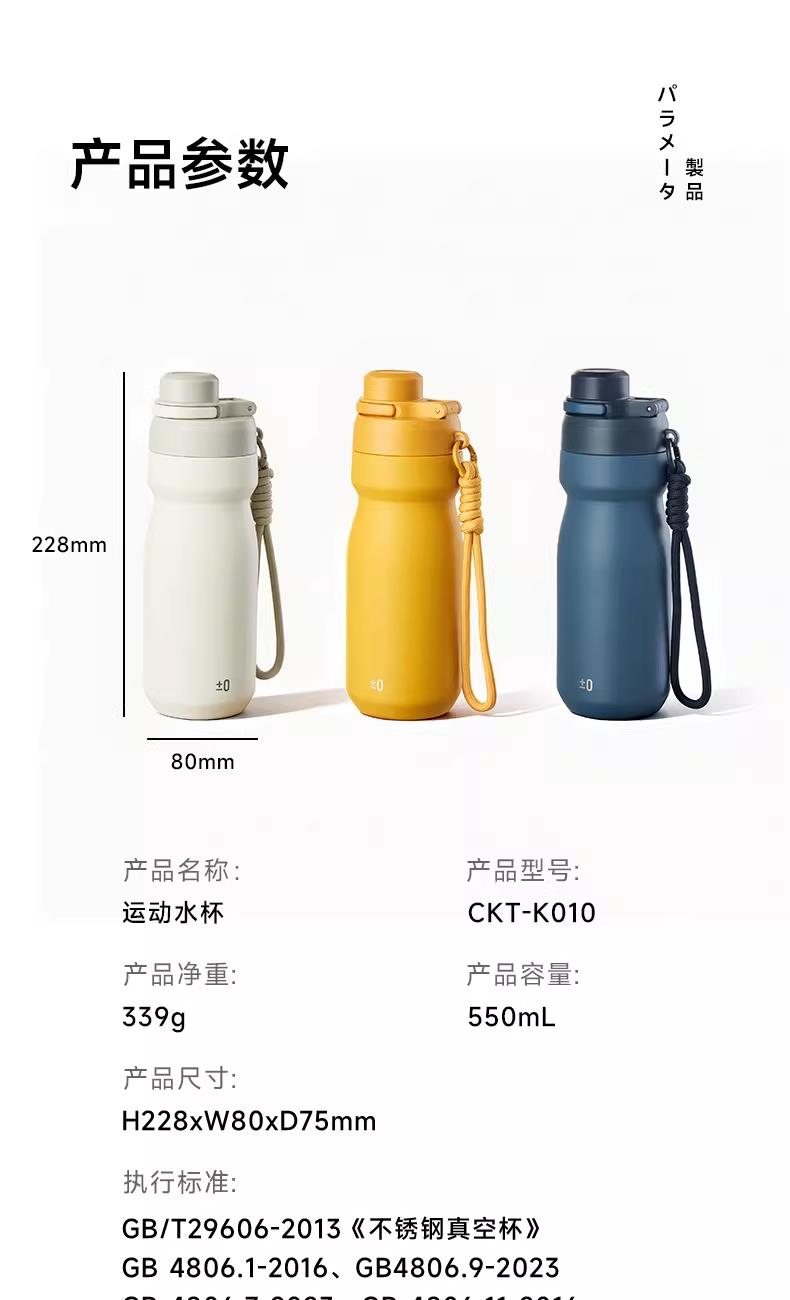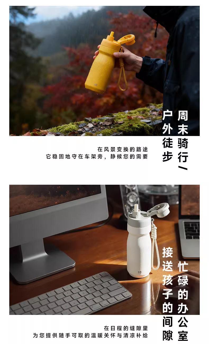 ±0日本正负零便携防漏直饮吸管杯316不锈钢运动水壶