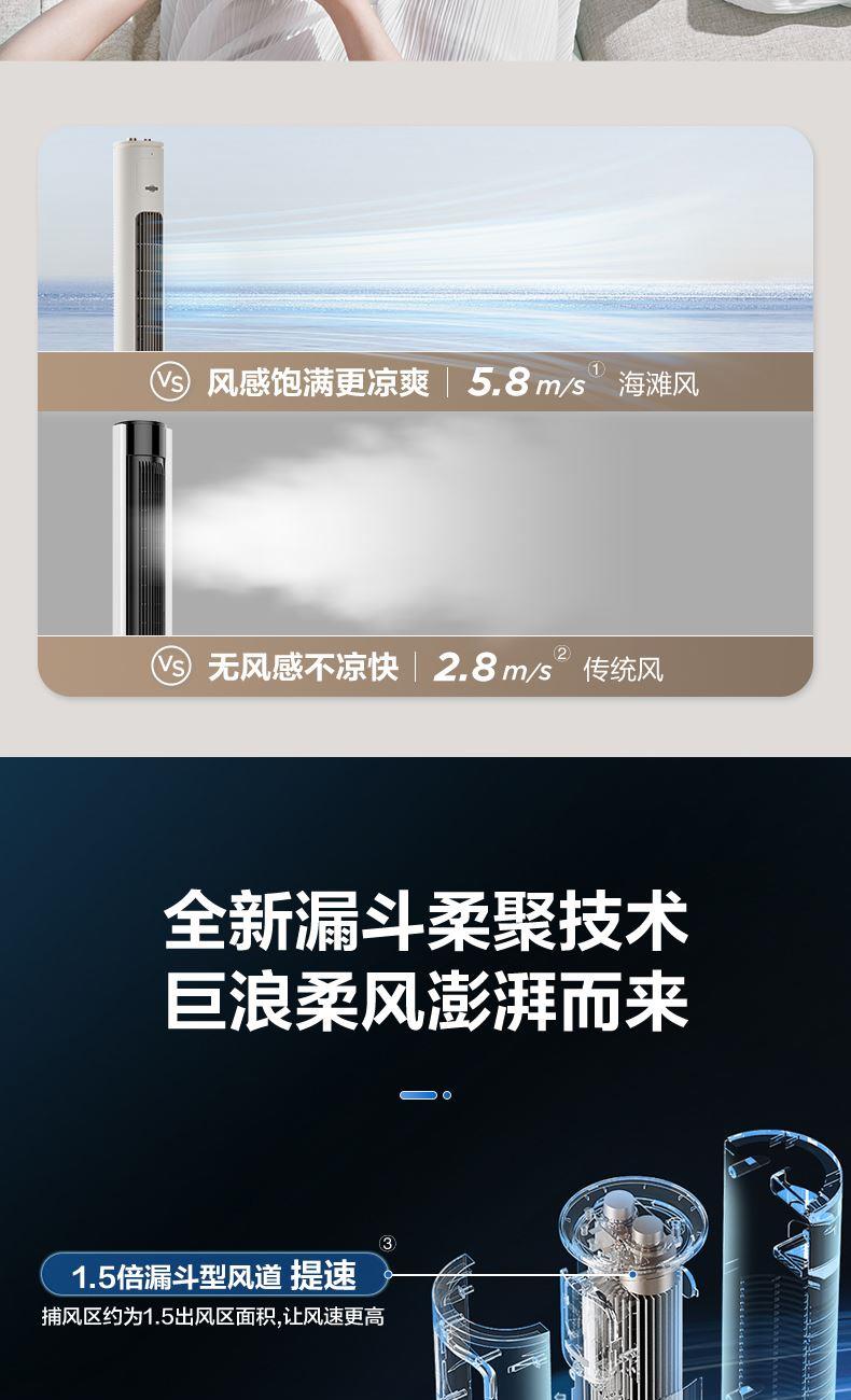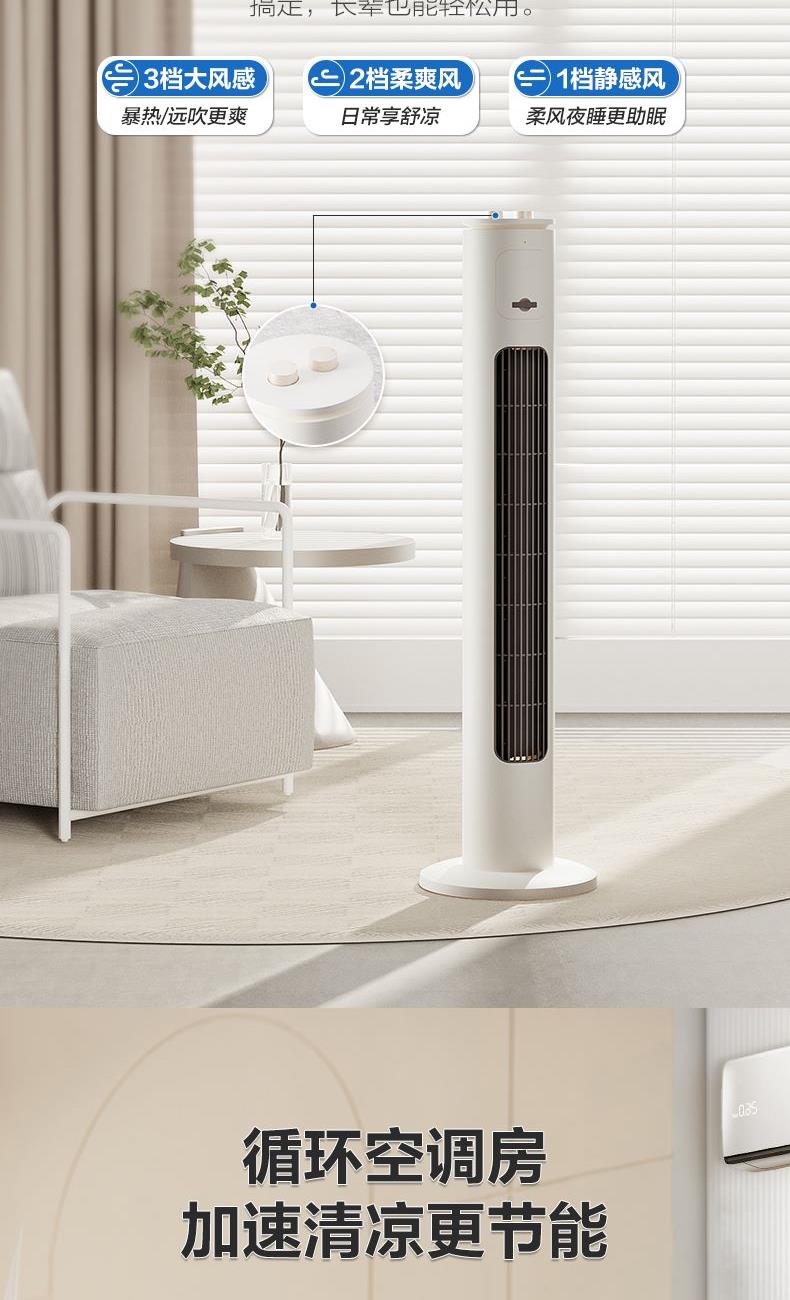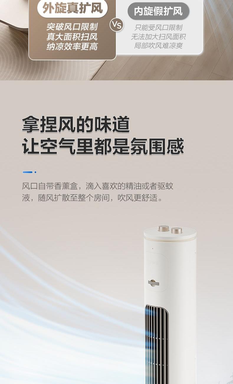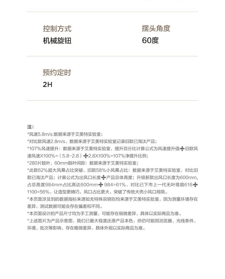 额定电压:220V 额定功率:50W 净重:3.25kg 毛重:4.20kg 档位:3档 控制方式:机械 摆头角度:左右60度摆头 包装尺寸:1020x200x210mm 1.巨幕风沉浸式全身舒凉 加长加宽风道突破62%超长2.风幕占比60°摆风 大风感把舒爽加满 5.8m/s大风感 3.3档轻松调 4.新体验 2H定时 附带香薰盒 30dB(A)超静感 5.280片鼓叶细细柔切出风细腻柔和
