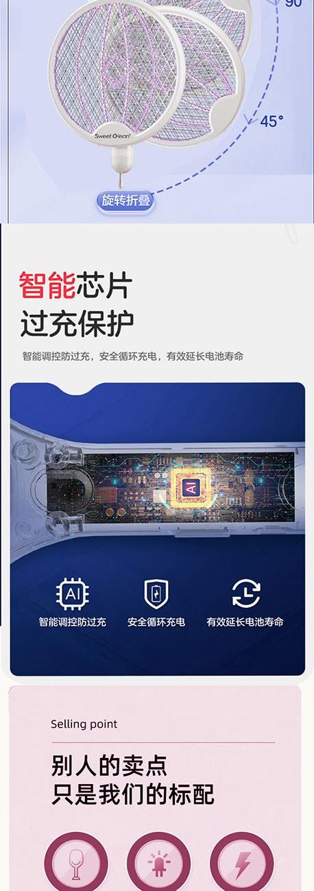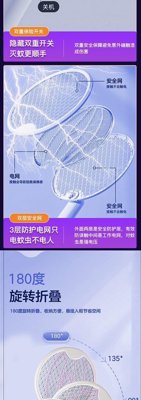 思薇科林旋转折叠多功能电蚊拍家用灭蚊神器苍蝇拍