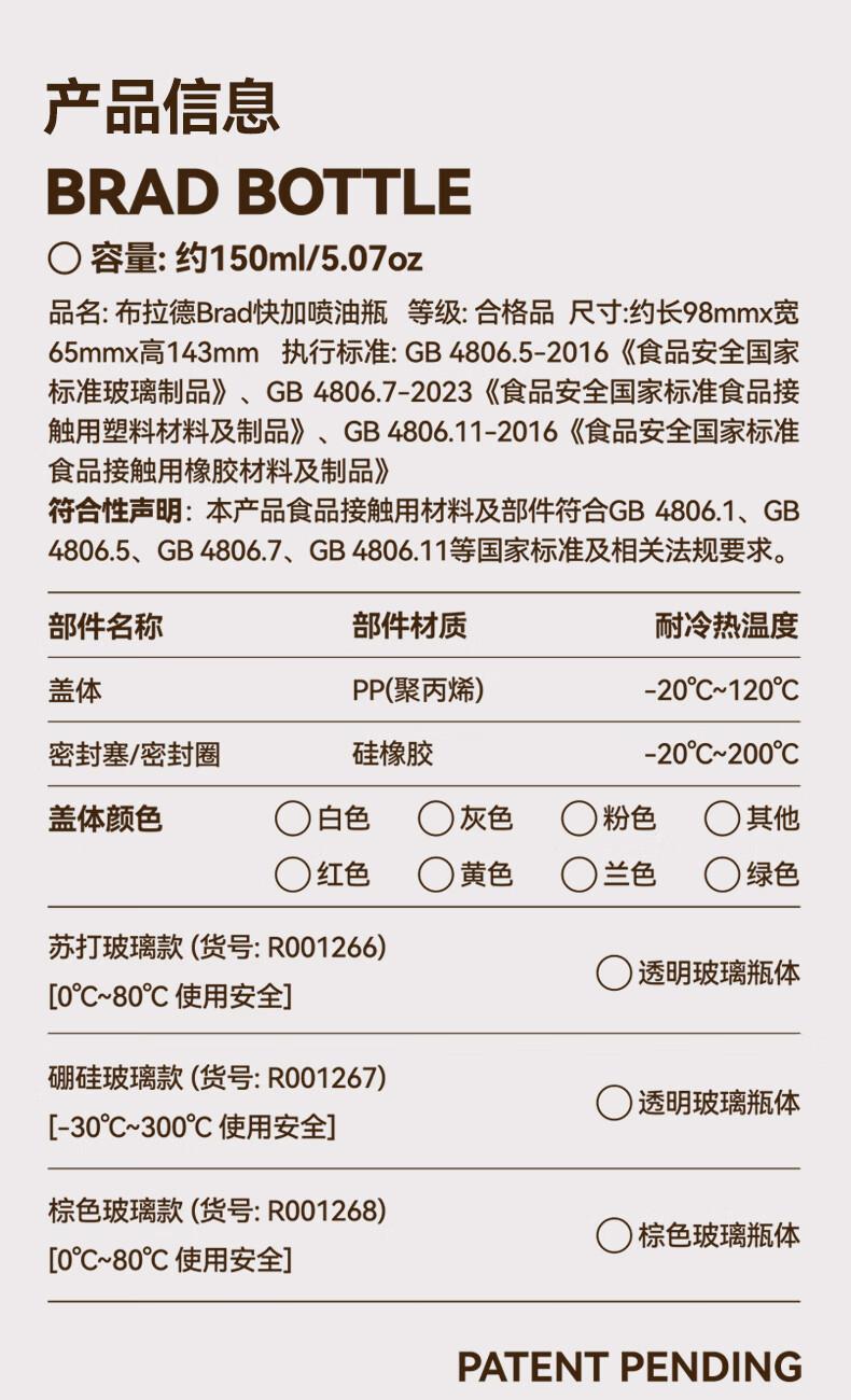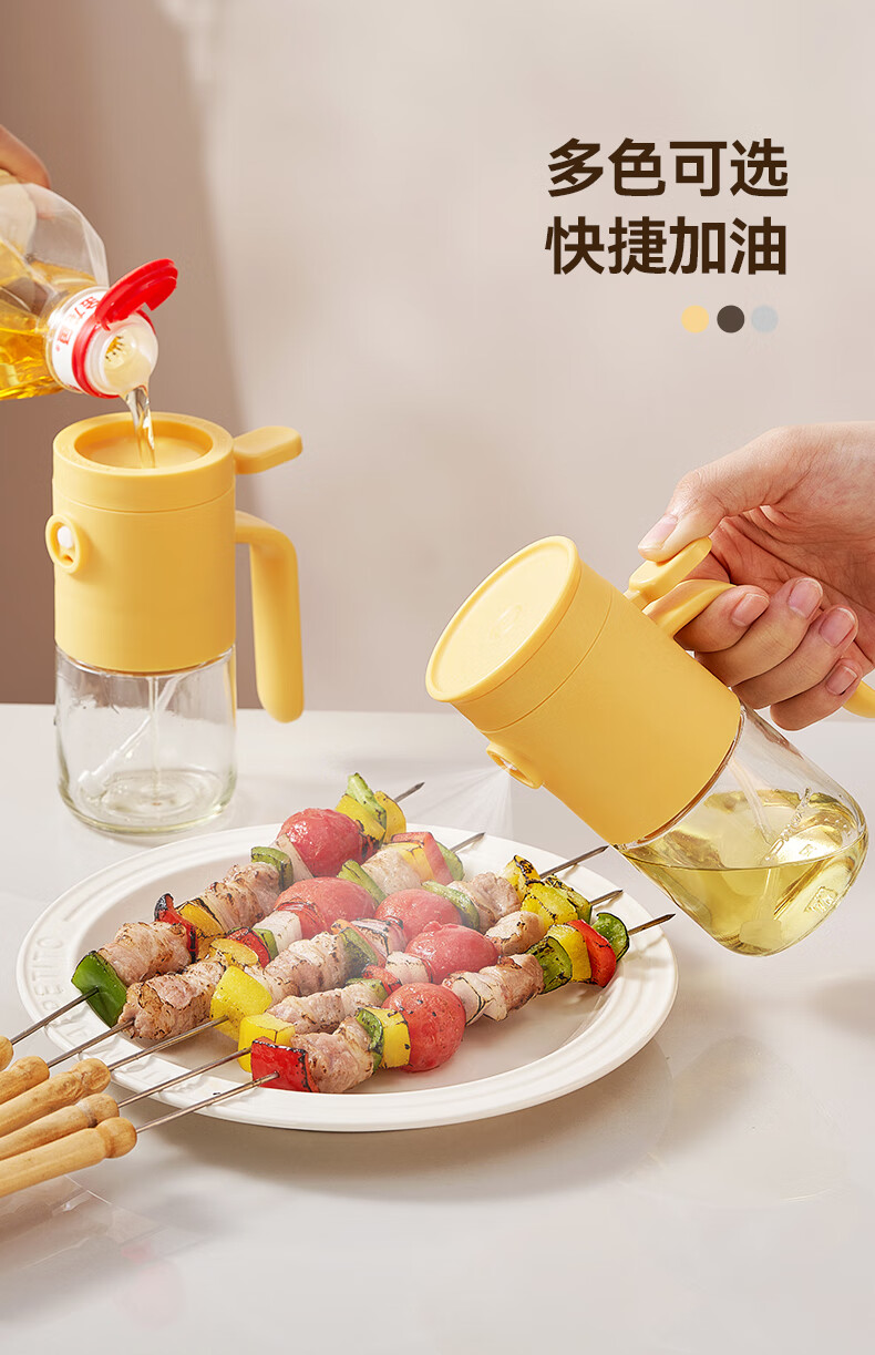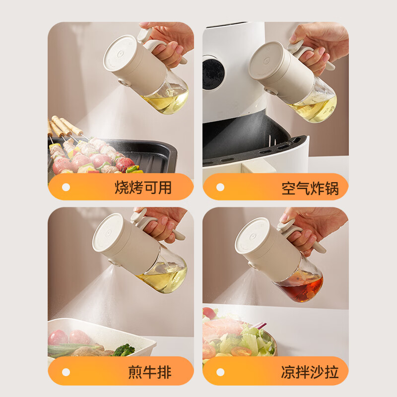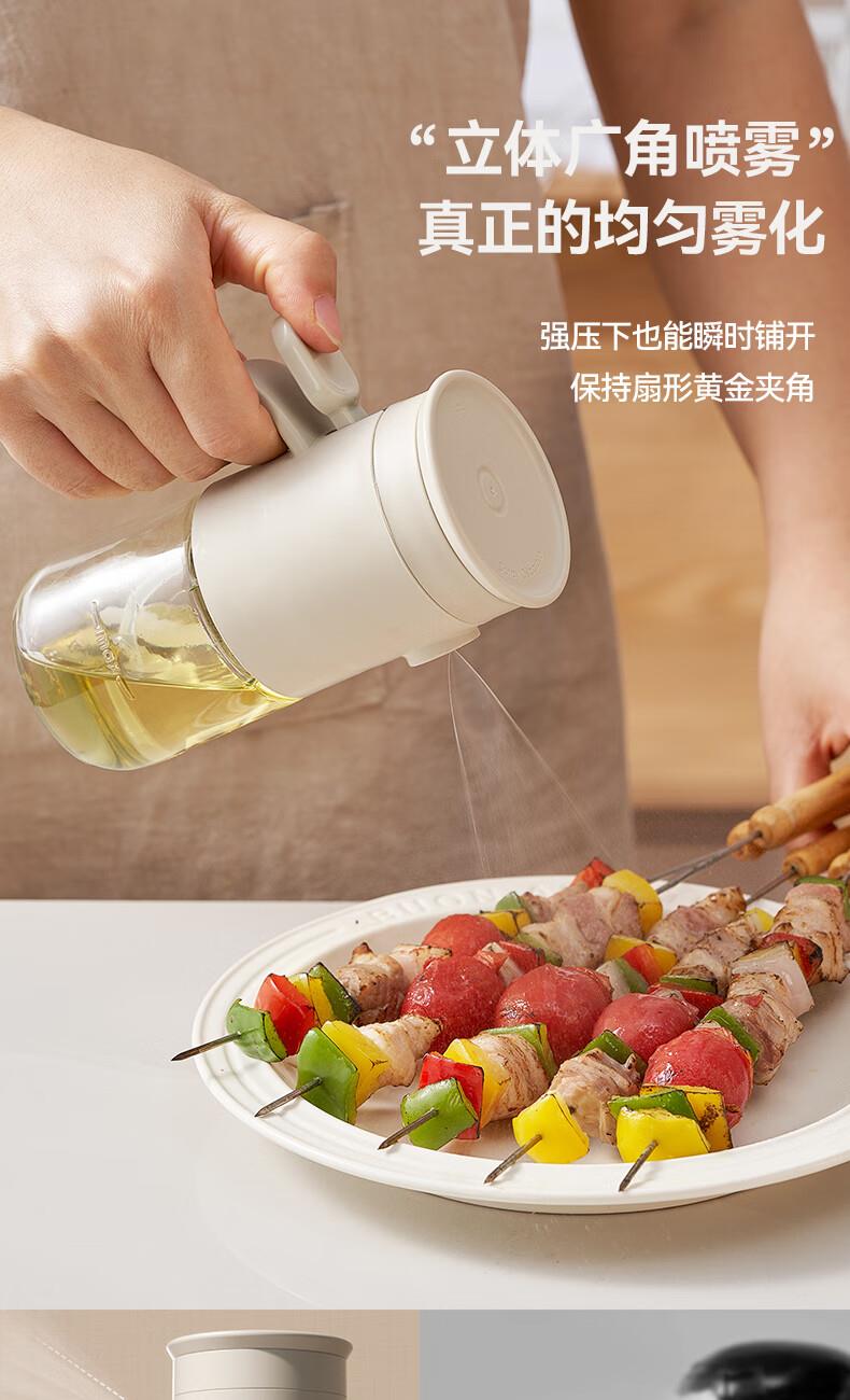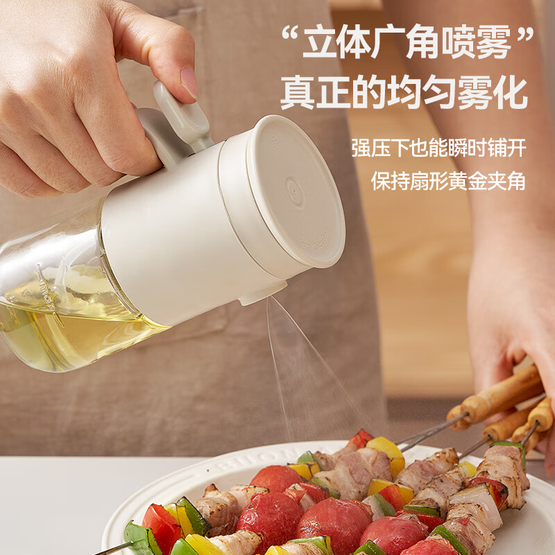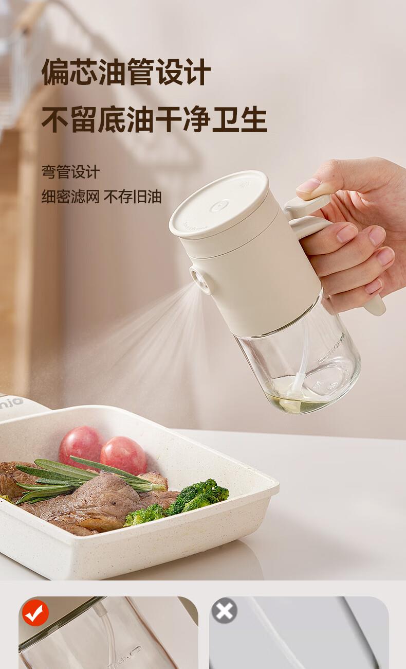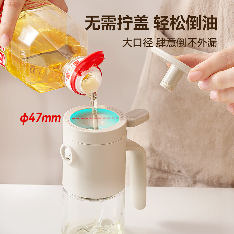 一提开盖3秒加油雾化喷油 无需拧盖 轻松倒油大口径 肆意倒不外漏 “立体广角喷雾”真正的均匀雾化 强压下也能瞬时铺开保持扇形黄金夹角 偏芯油管设计不留底油干净卫生 弯管设计:细密滤网不存旧油 顶盖硅胶密封圈开合方便防尘 瓶体旋转盖密封不漏油