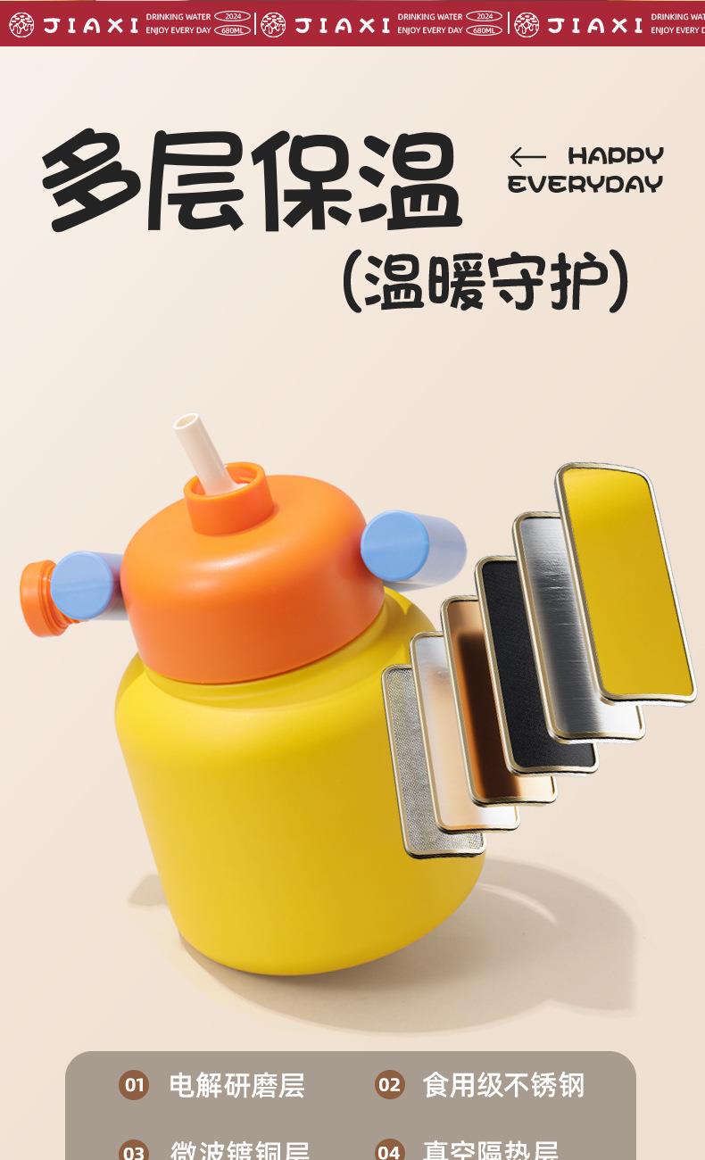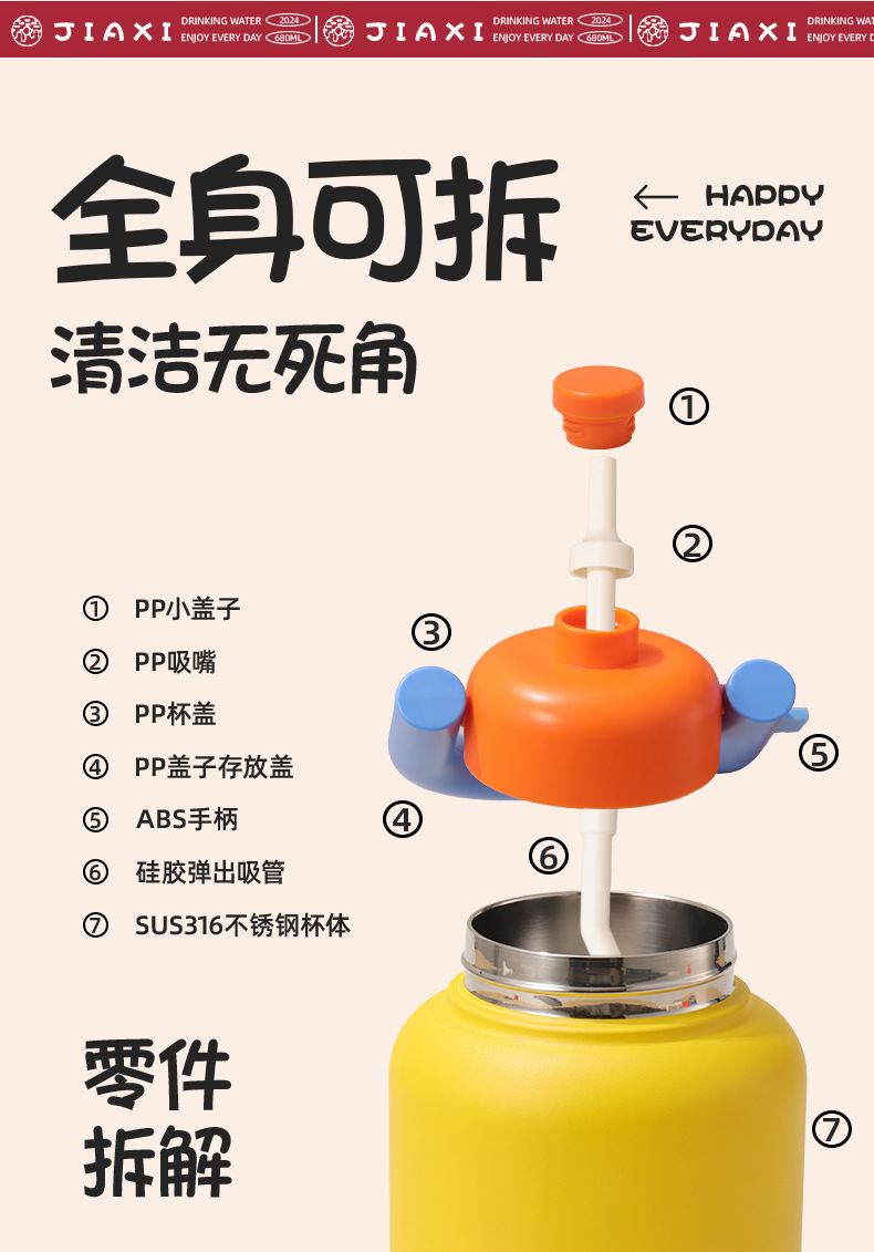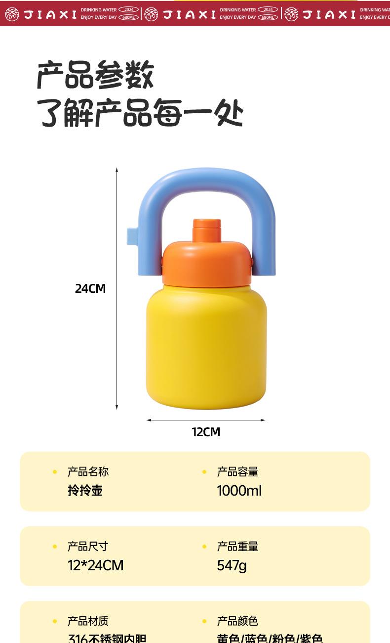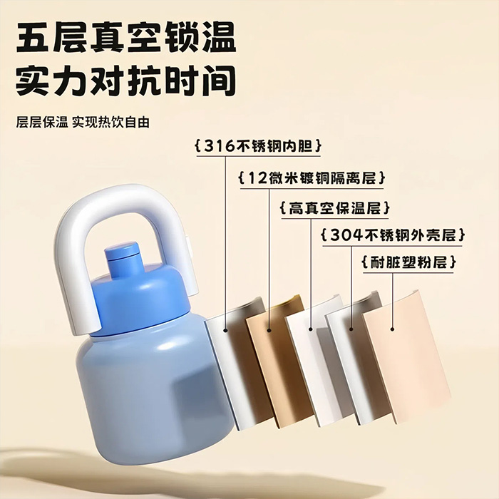 采用316不锈钢材质, 1000ML大容量带提手便携