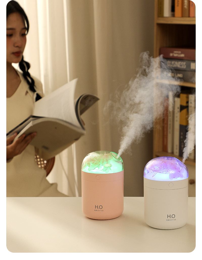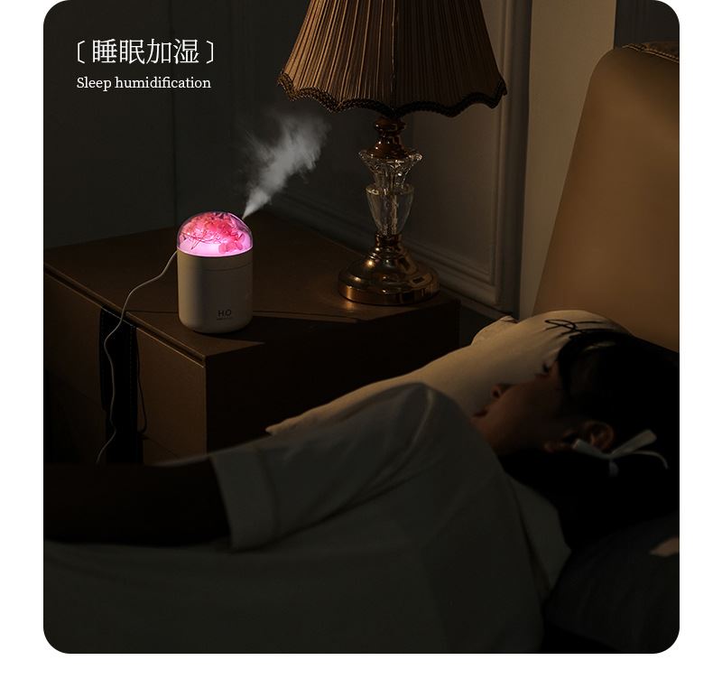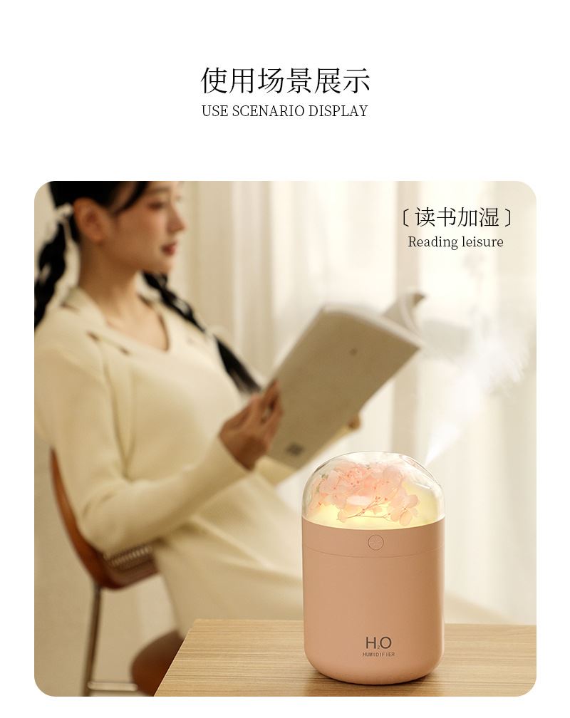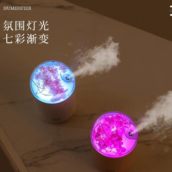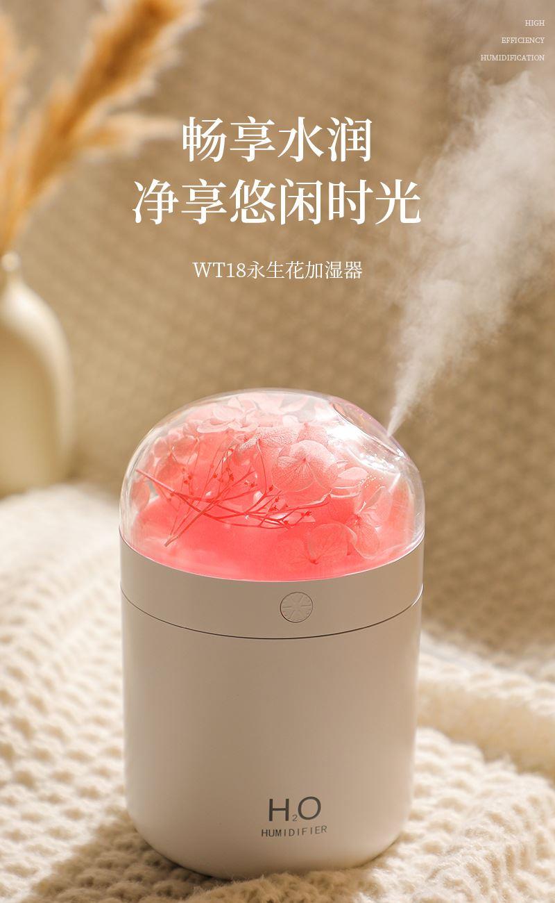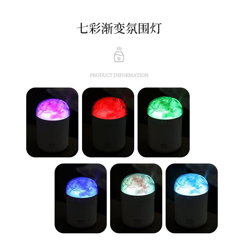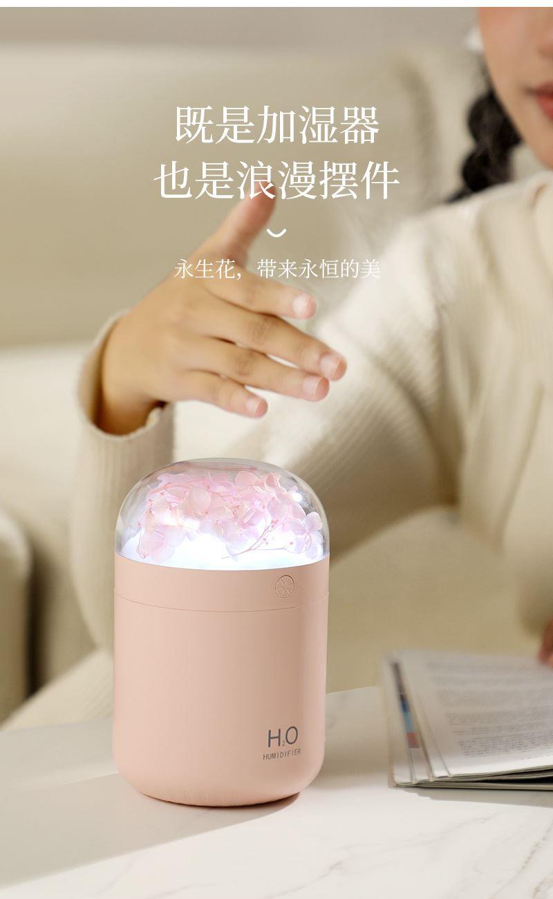 【颜色】粉色、白色 【材质】ABS+PP+硅胶+电子元件 【重量】203G/270G 【水箱容量】500ML 【喷雾量】30-40mL/h 【产品尺寸】98*98*157mm 【包装尺寸】98*98*152mm 【输入电流】5V-1A 【定时时间】定时时间:一档4H,二档8H 七彩灯光,纳米水雾,仿真雪景,氛围夜灯 纳米喷雾,滋润补水,2档大喷雾,一档持续喷雾,二档间歇喷雾 安全加湿,定时断电