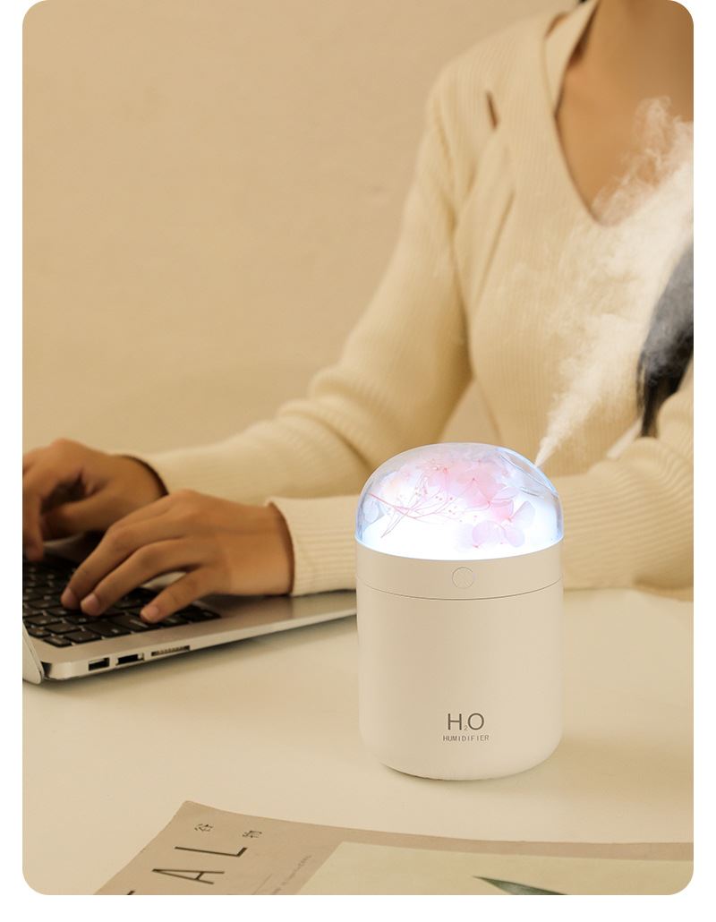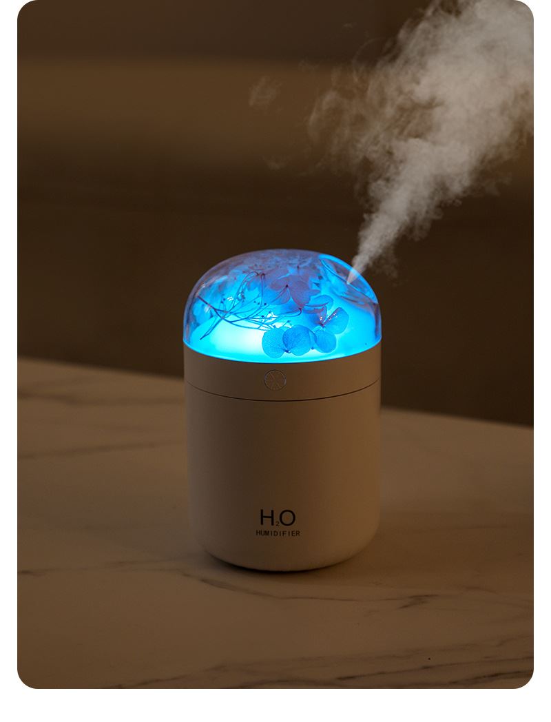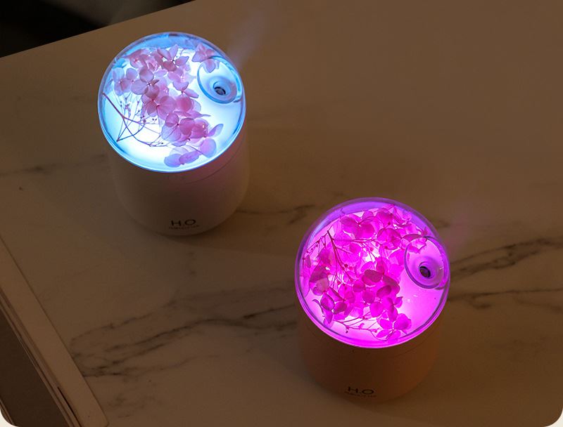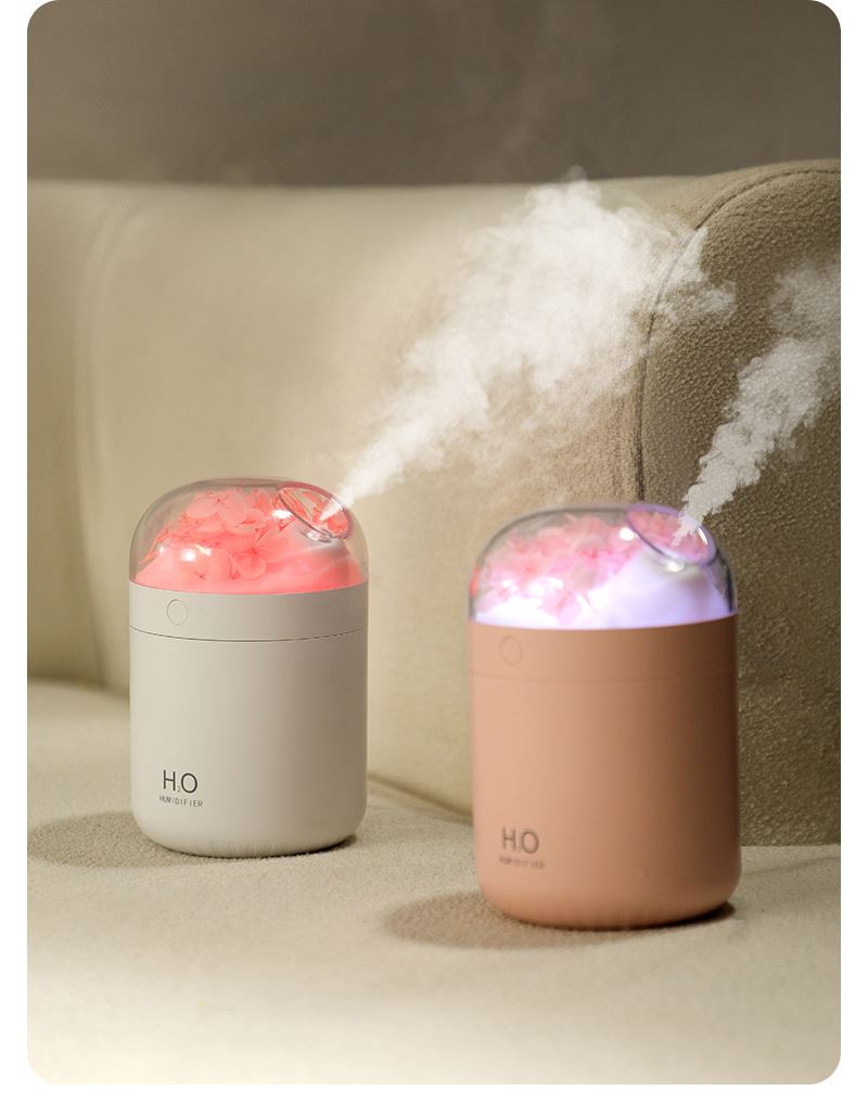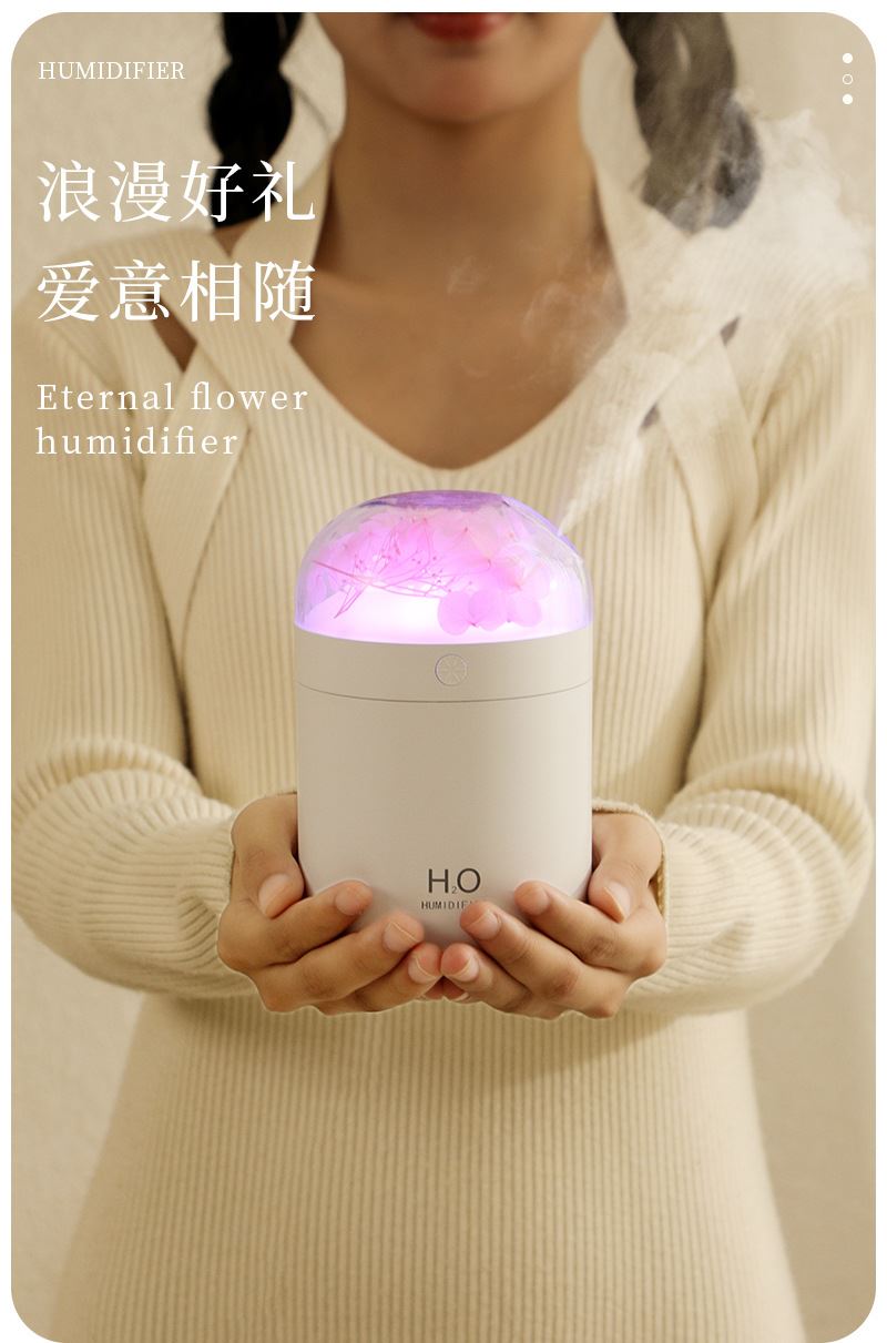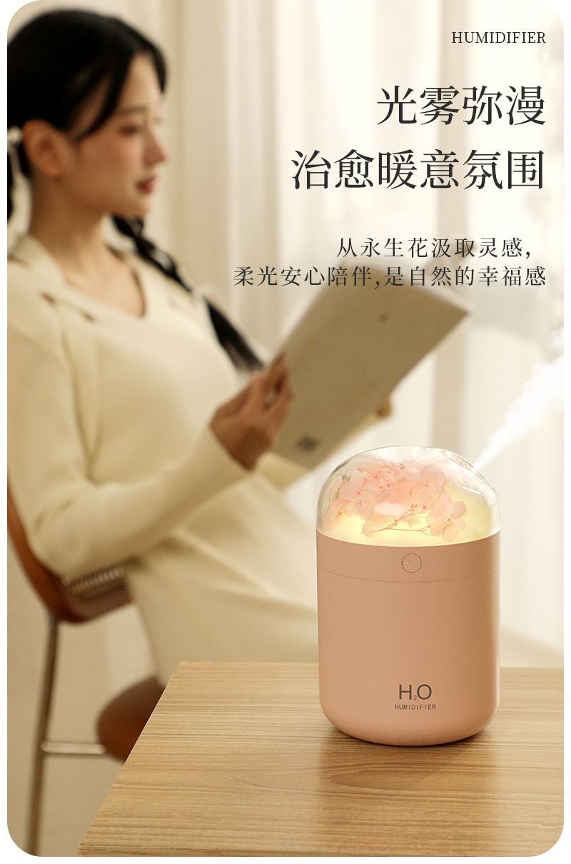 【颜色】粉色、白色 【材质】ABS+PP+硅胶+电子元件 【重量】203G/270G 【水箱容量】500ML 【喷雾量】30-40mL/h 【产品尺寸】98*98*157mm 【包装尺寸】98*98*152mm 【输入电流】5V-1A 【定时时间】定时时间:一档4H,二档8H 七彩灯光,纳米水雾,仿真雪景,氛围夜灯 纳米喷雾,滋润补水,2档大喷雾,一档持续喷雾,二档间歇喷雾 安全加湿,定时断电