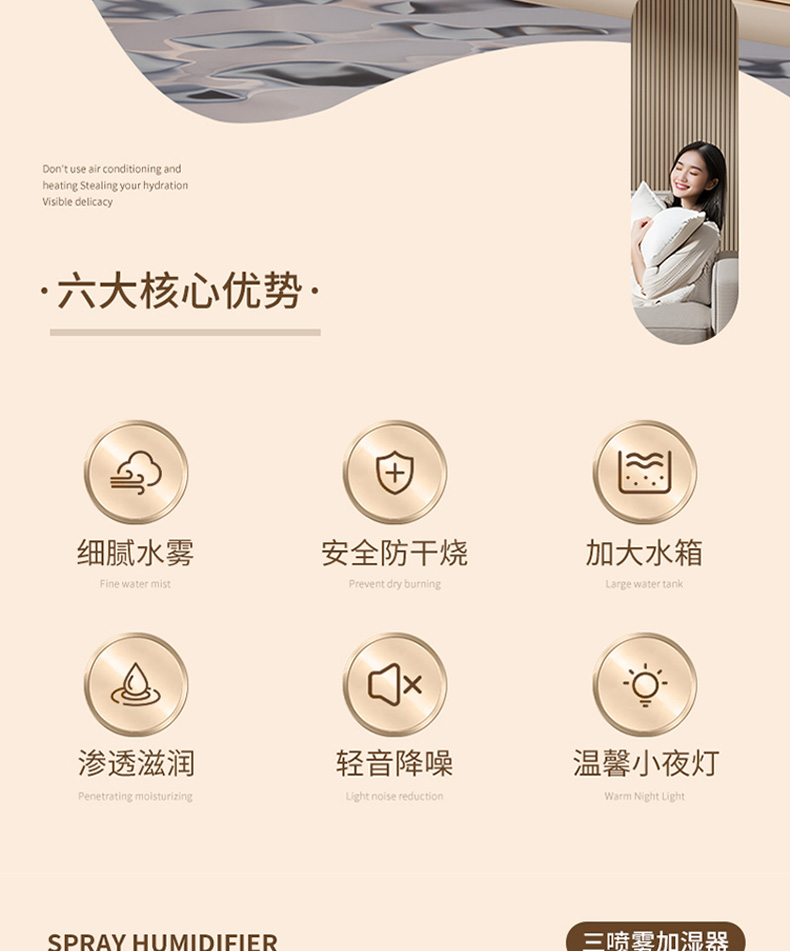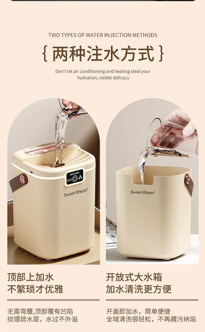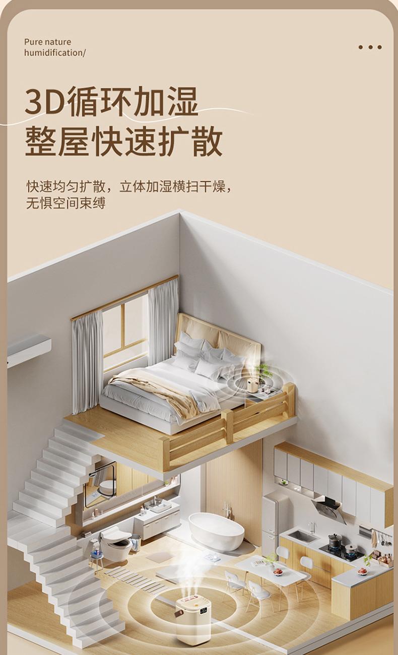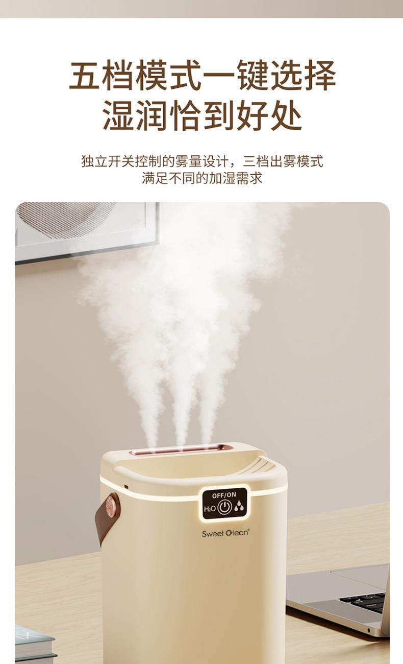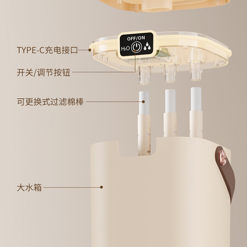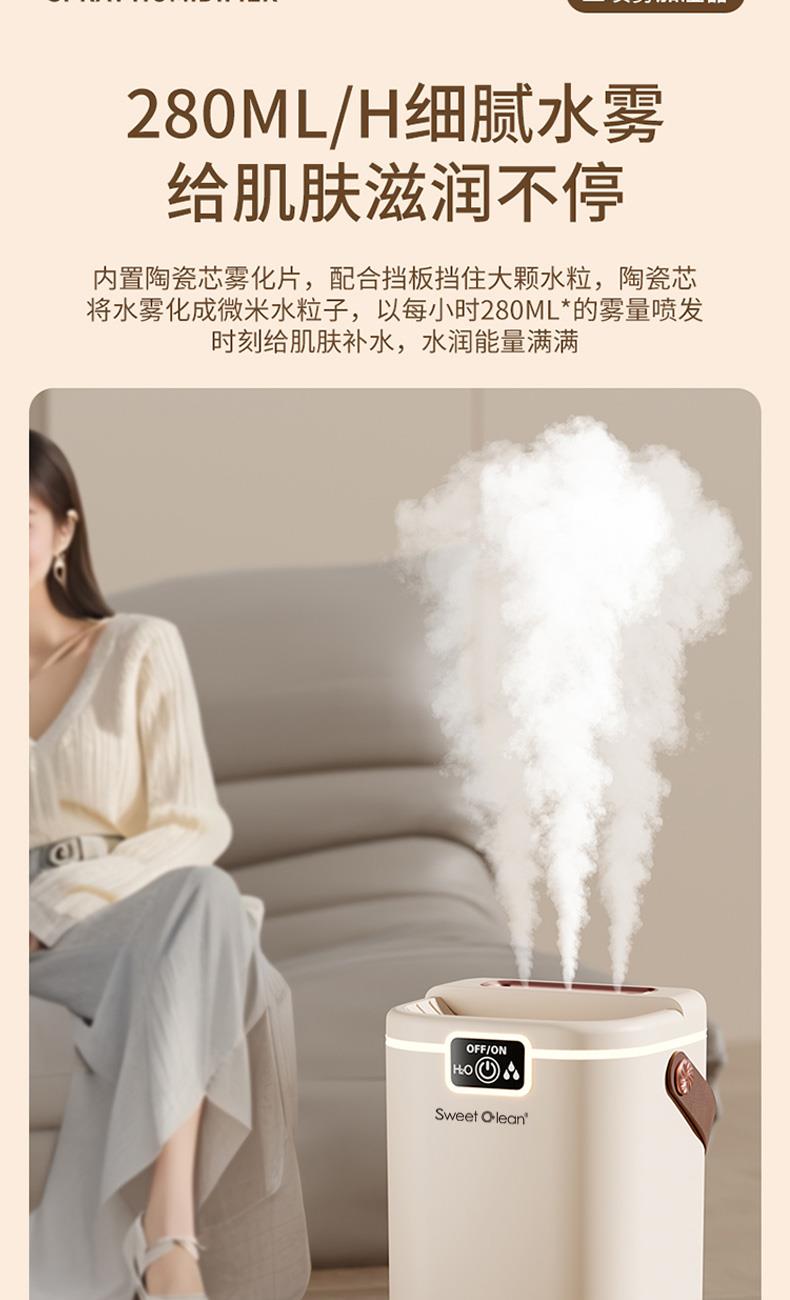 水箱容量:2000ML 输入电压5V~1A 档位5档喷雾调节 产品颜色:简约白 奶油黄 输入接口 :Type-c快充 产品款式:插电式 产品重量:235g 2L 超大储水量:大容量长效续航,加水一次安心用整天,少换水更省心 三喷强力出雾:三孔同步雾化,出雾效率翻倍,全屋快速润湿度拉满 纳米细腻喷雾:超细雾化不积水不打湿桌面,补水均匀更滋润 轻音静音运行:低噪运作不扰眠,卧室办公全天安静使用 柔光氛围小夜灯:温馨柔光护眼伴睡,夜间起夜柔光不刺眼 强效深度雾化:渗透补水不干燥,缓解空调房干涩不适 空调专用好搭档:搭配空调使用,中和干燥空气,守护肌肤水润 母婴安全级材质:无异味安全用料,孕婴家庭安心全天候使用