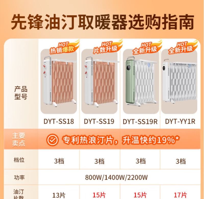 先锋热浪油汀DYT-SS19R(DS2235R)
