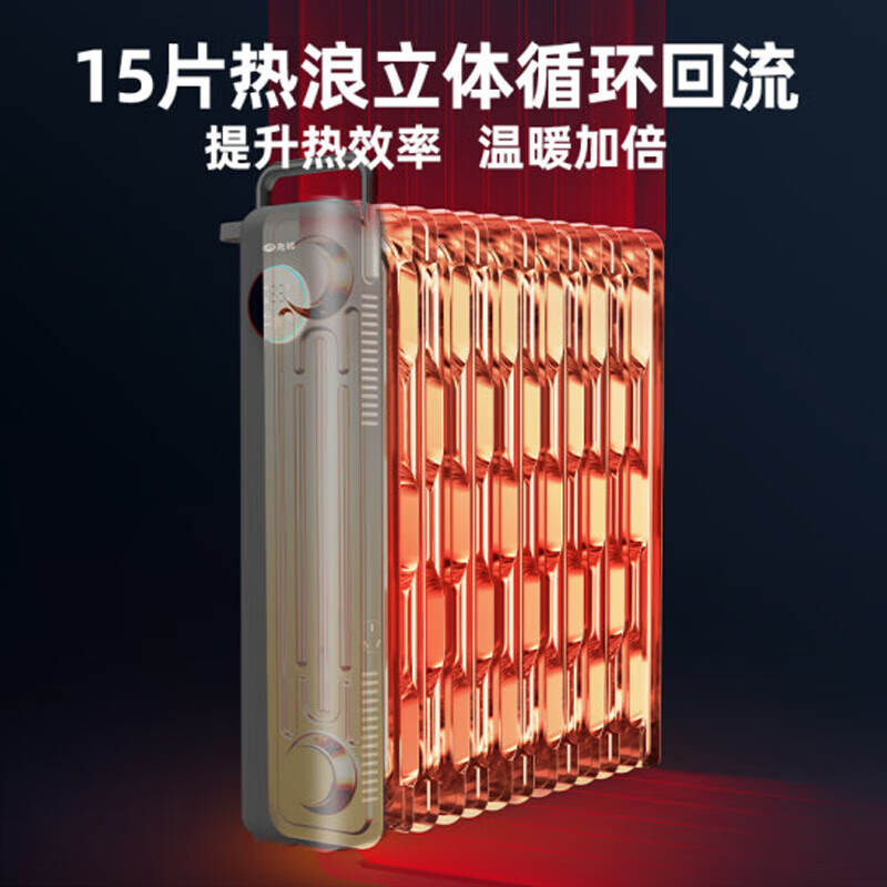遥控器远程操作, 15片热浪发热片, 热效提升19.2%, 多重安全保护守护整个暖冬, 15-35℃C智能控温