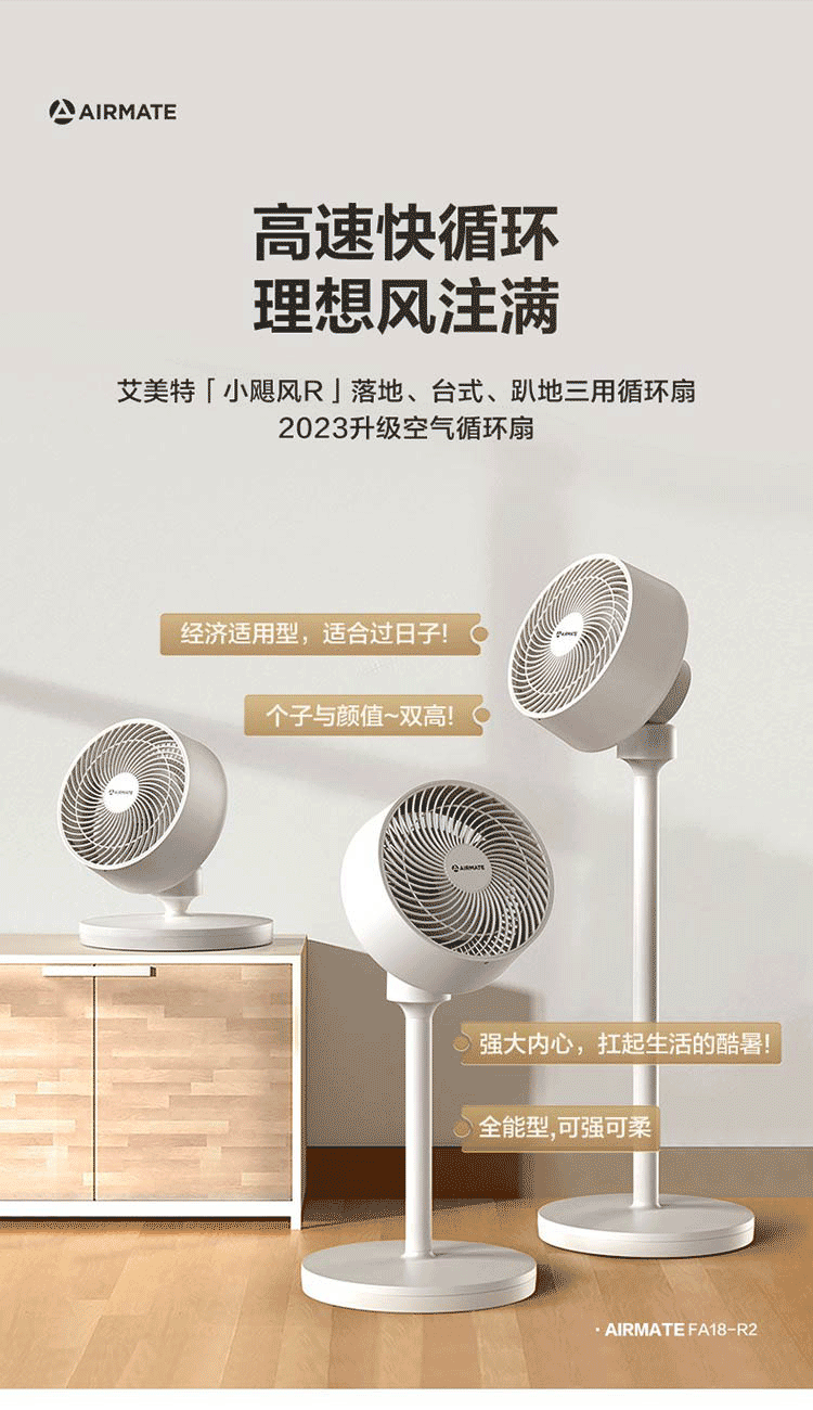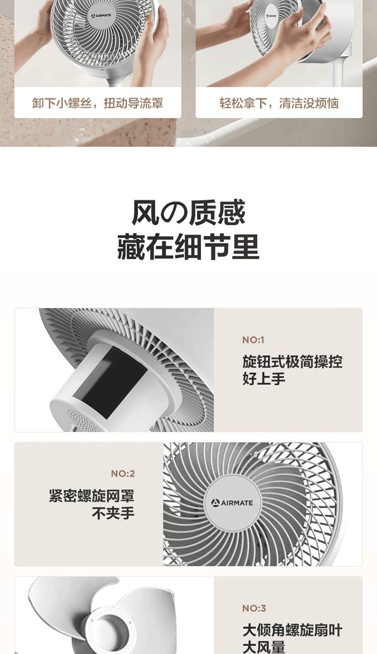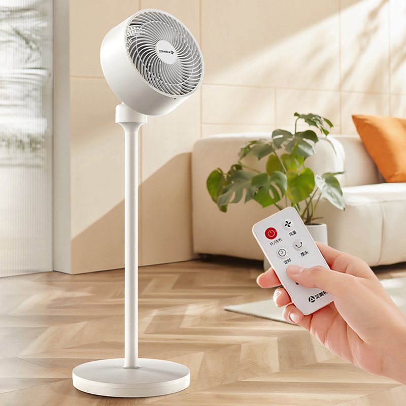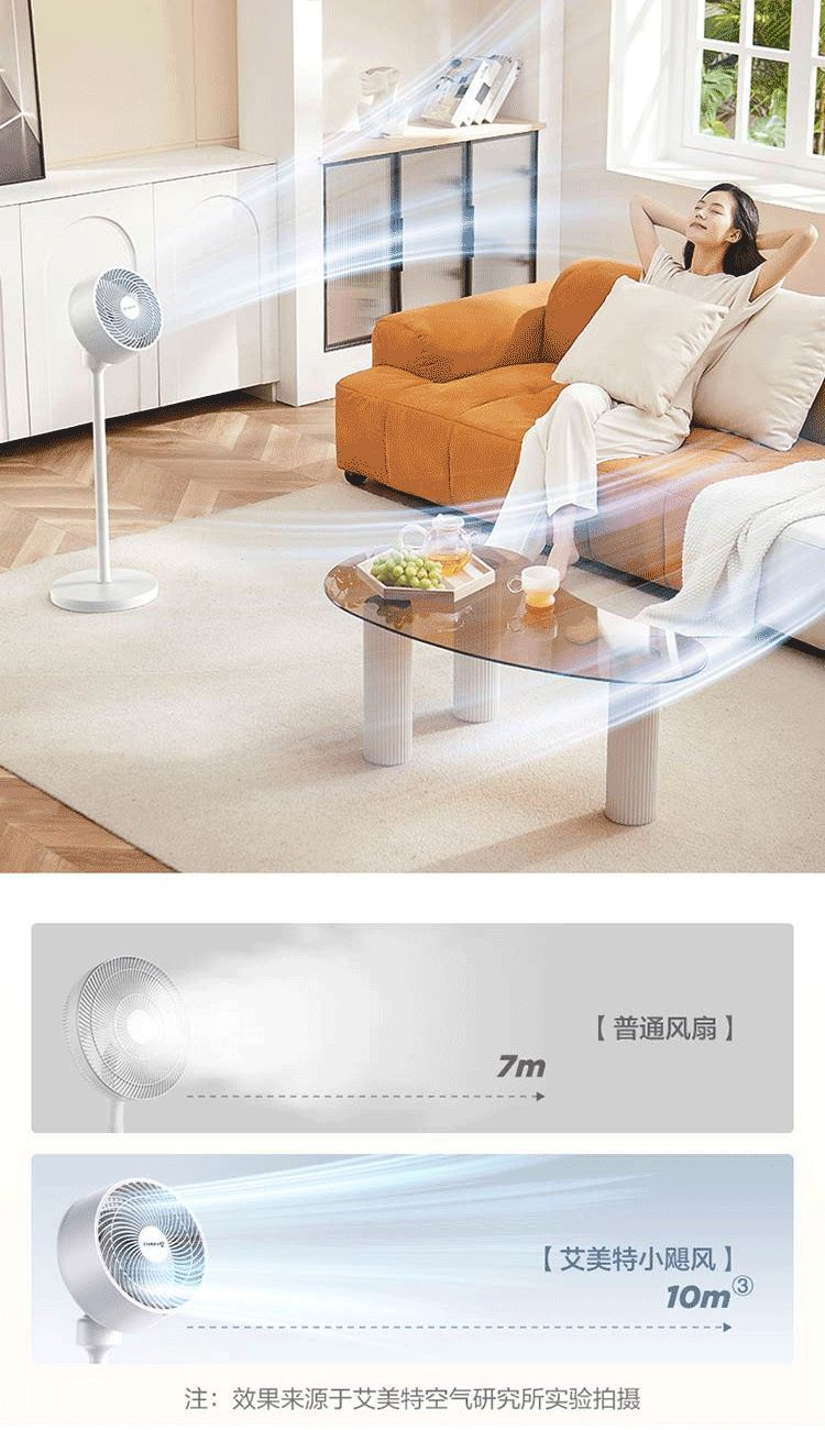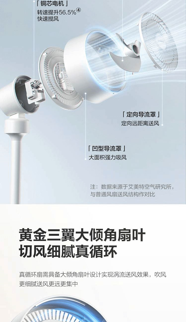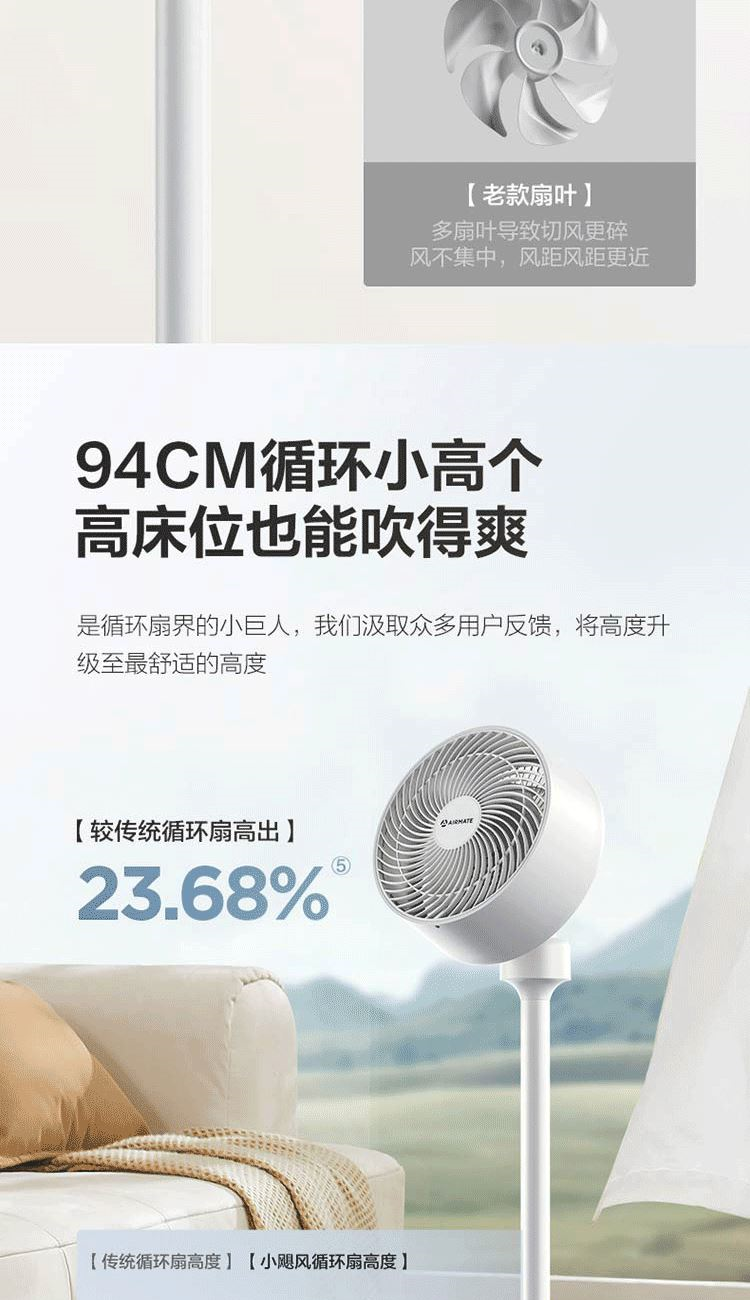 额定功率:35W 额定电压:220V 额定频率:50Hz 档位:2档 噪 音:≤60dB(A) 净重毛重:2.8/3.4KG 控制方式:遥控 装 箱 数:1台/箱 1、【循环整屋空气】整屋空气,秒速循环 2、【大倾角螺旋扇叶】风力强劲,送风距离更远 3、【聚风集中】消除漩涡,吹出自然风 4、【2档风量】2档随意调节 5、【94CM身高】颀长身姿,送风范围更广 6、【3D立体送风】左右110°自动摆头,上下90°手动摆头 7、【7寸扇头】精致小巧,不占空间