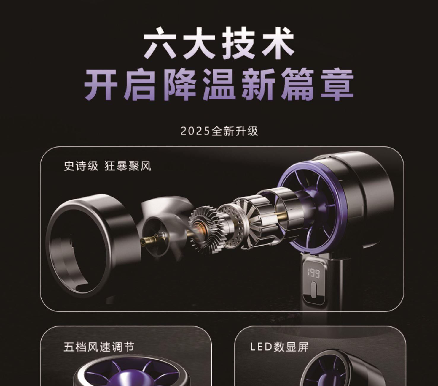 型号:Y38 电池容量:1200mAh 输入:5V-1A 使用时间:约-3-7h 档位:199档 材质:ABS塑料+PC 产品尺寸:30*50*165mm 产品重量:约133g 产品颜色:灰色、黑色 产品包装尺寸:63*60*170mm(彩盒) 产品卖点:199档风力随心调节,无刷电机大风力,智能数显,超长续航多场景使用。