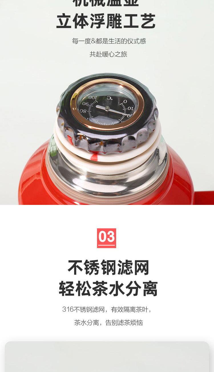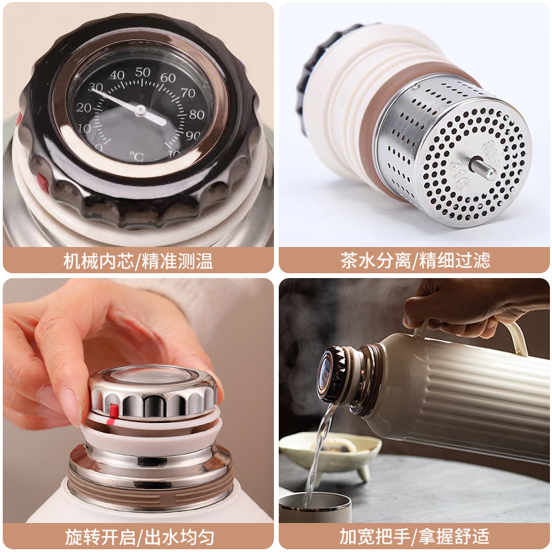 容量:1000ML材质:内胆--316不锈钢、茶隔--316不锈钢 机械温度显示 包装方式:彩盒包装 优势:高品质,低价位,样品支持,前端服务体系完善,售后无忧