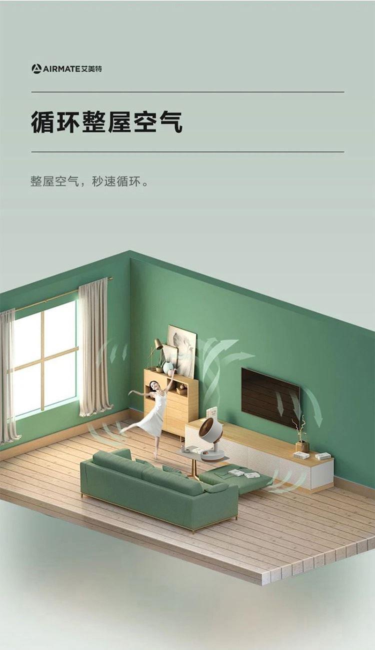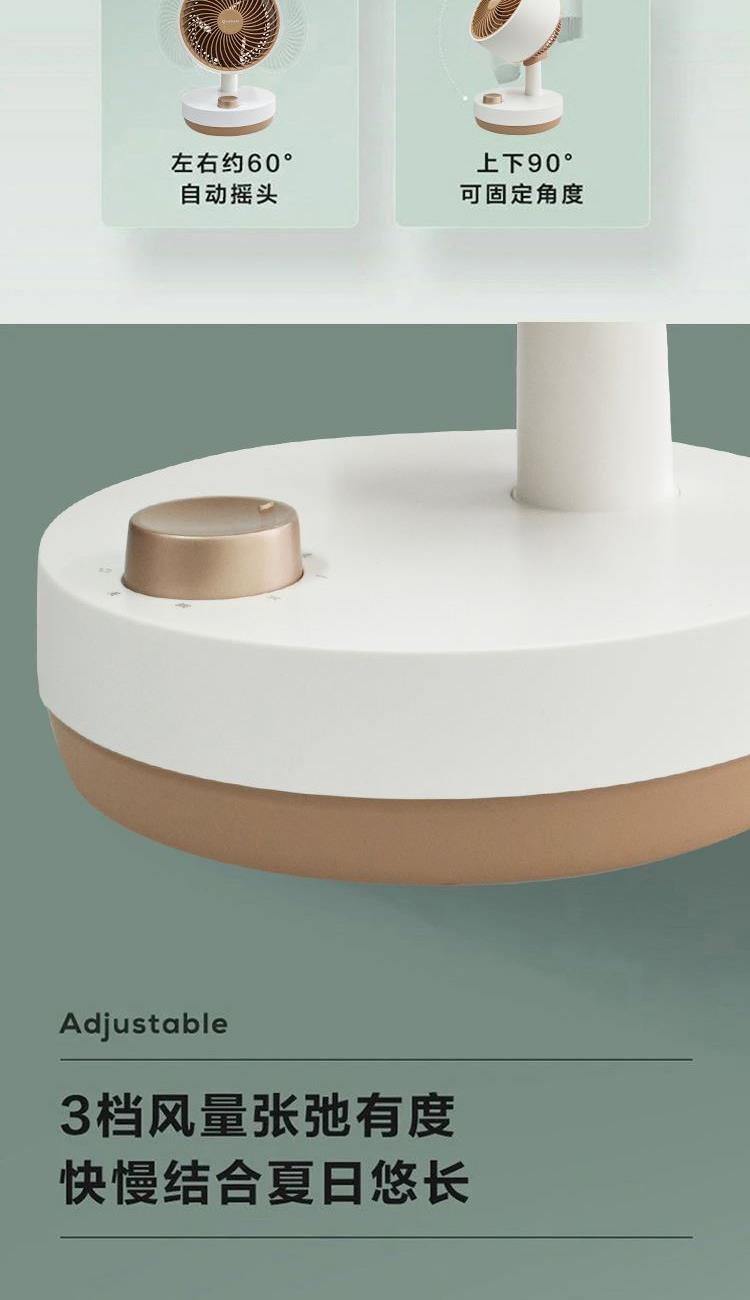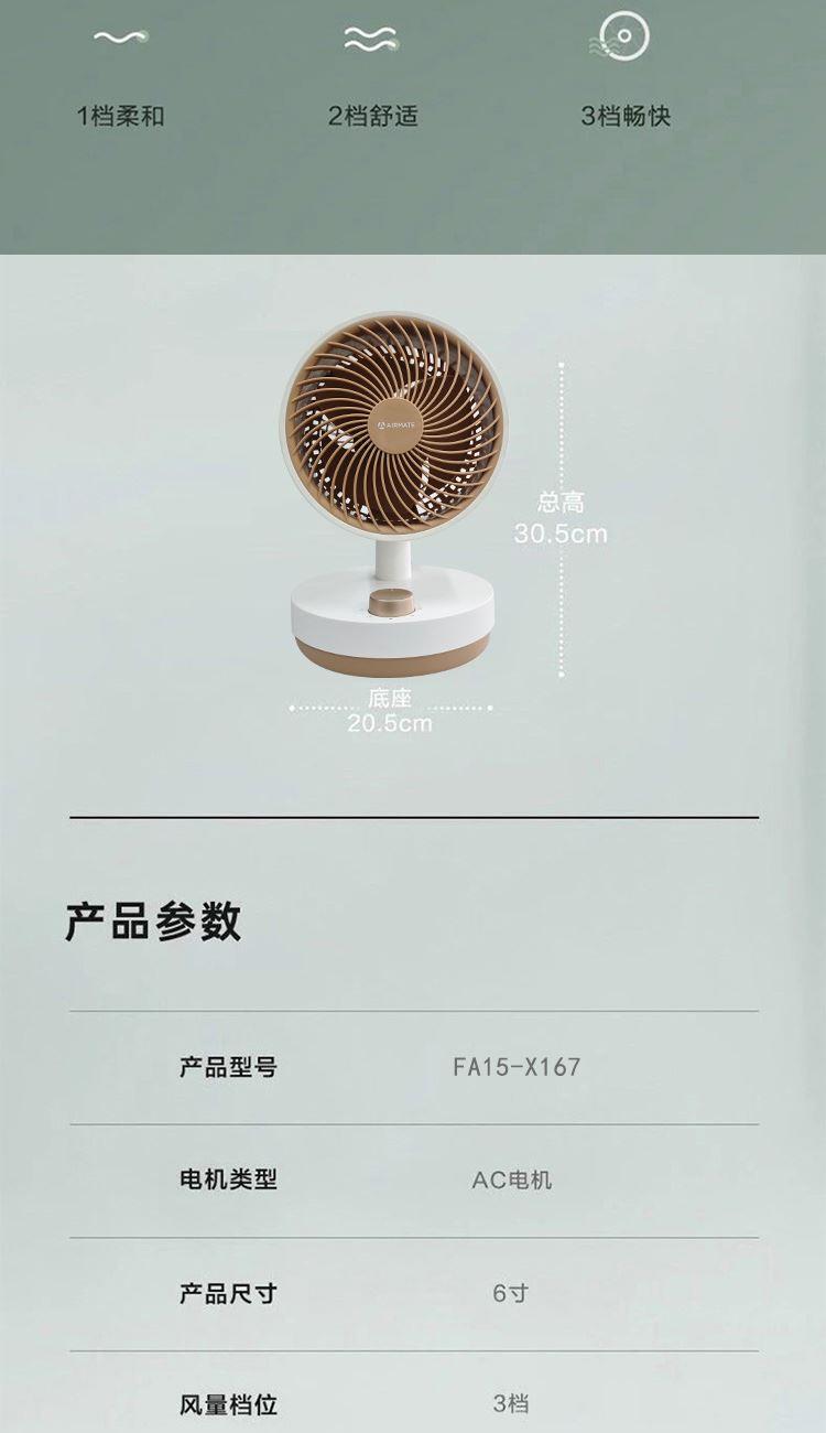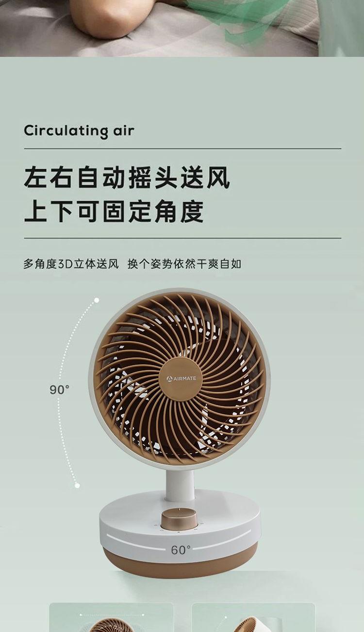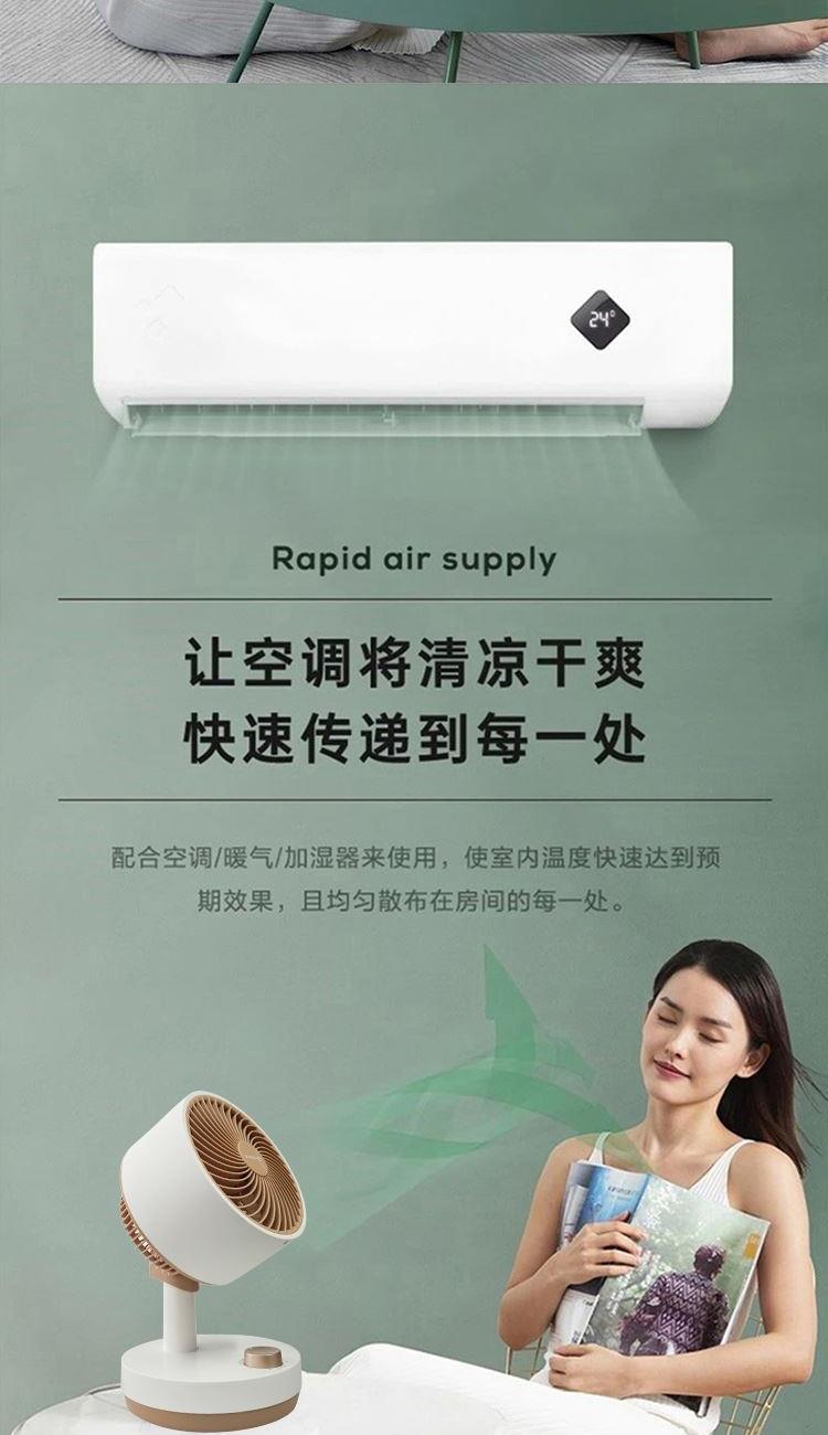 额定电压:220V 额定功率:35W 额定频率:50Hz 电机类型:AC电机 产品尺寸:6寸 风量档位:3档 控制方式:旋钮机械式 摇头设置:左右自动摆头,上下手动摆头 功能特点: 1、占地不过A4大小,3档风量张弛有度 2、多角度3D立体送风,左右60°摇头,上下90°可固定角度 3、整屋空气,秒速循环,健康风,去味更清新,家人更舒心 4、配合空调/暖气/加湿器来使用,使室内温度快速达到预期效果 5、无需对准身体,循环自然风无死角送风,自然微风,更适合敏感体制人群