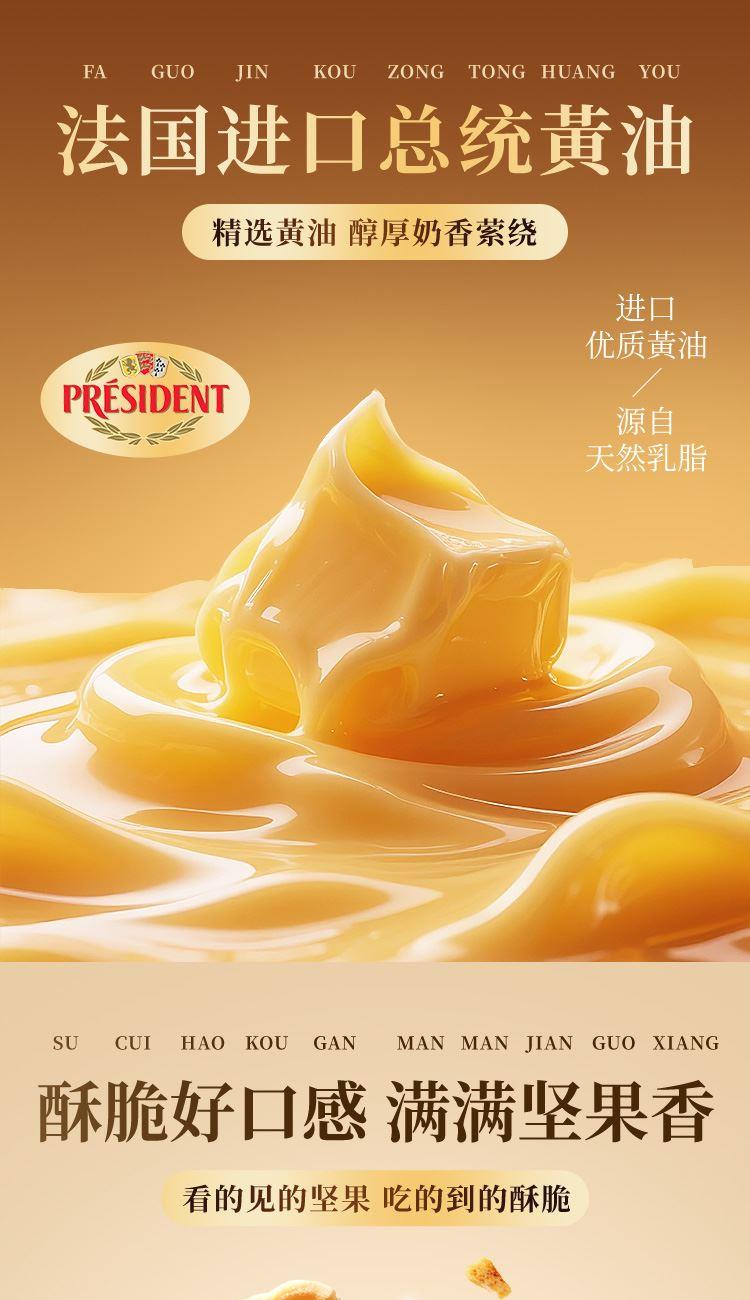 采用法国进口总统黄油,添加4大坚果,饱满果仁,甜而不腻