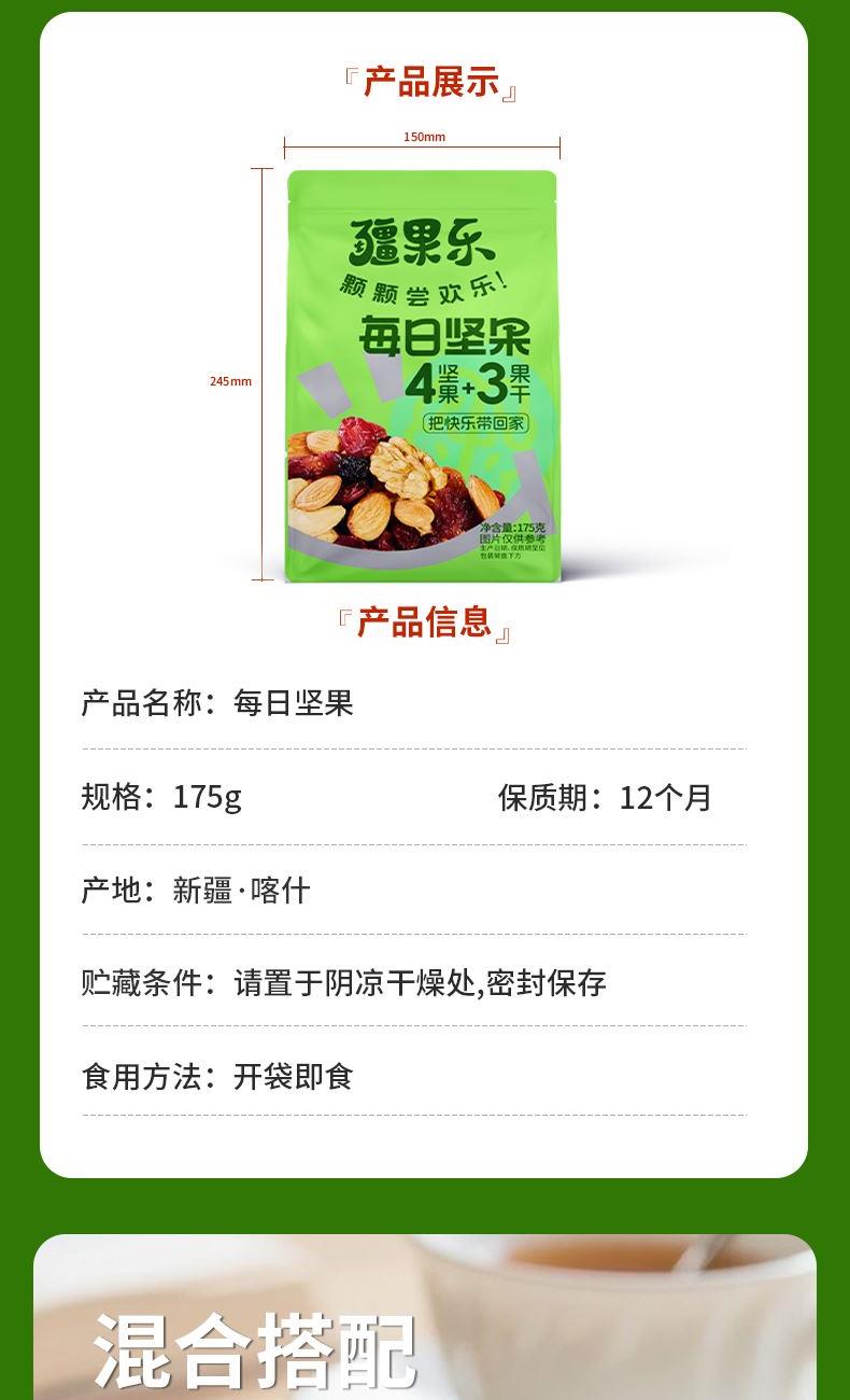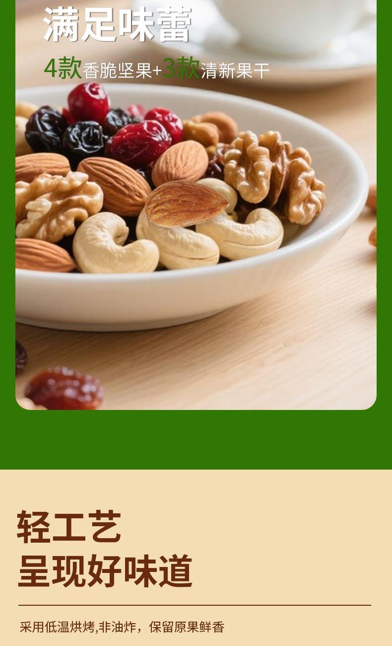4款香脆坚果+3款清新果干,混合搭配满足味蕾,每日一袋,随身携带