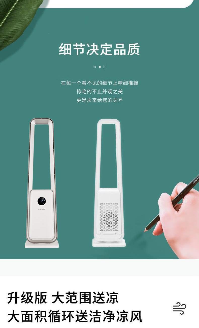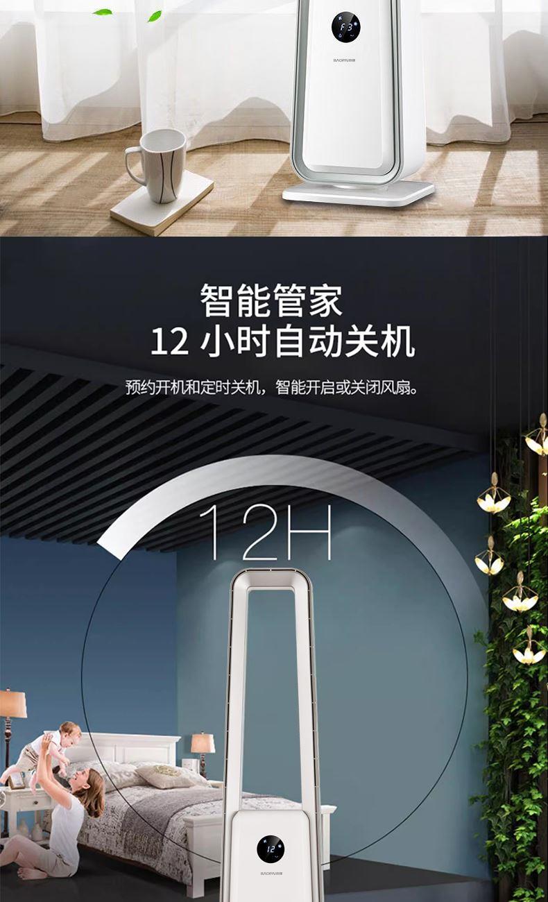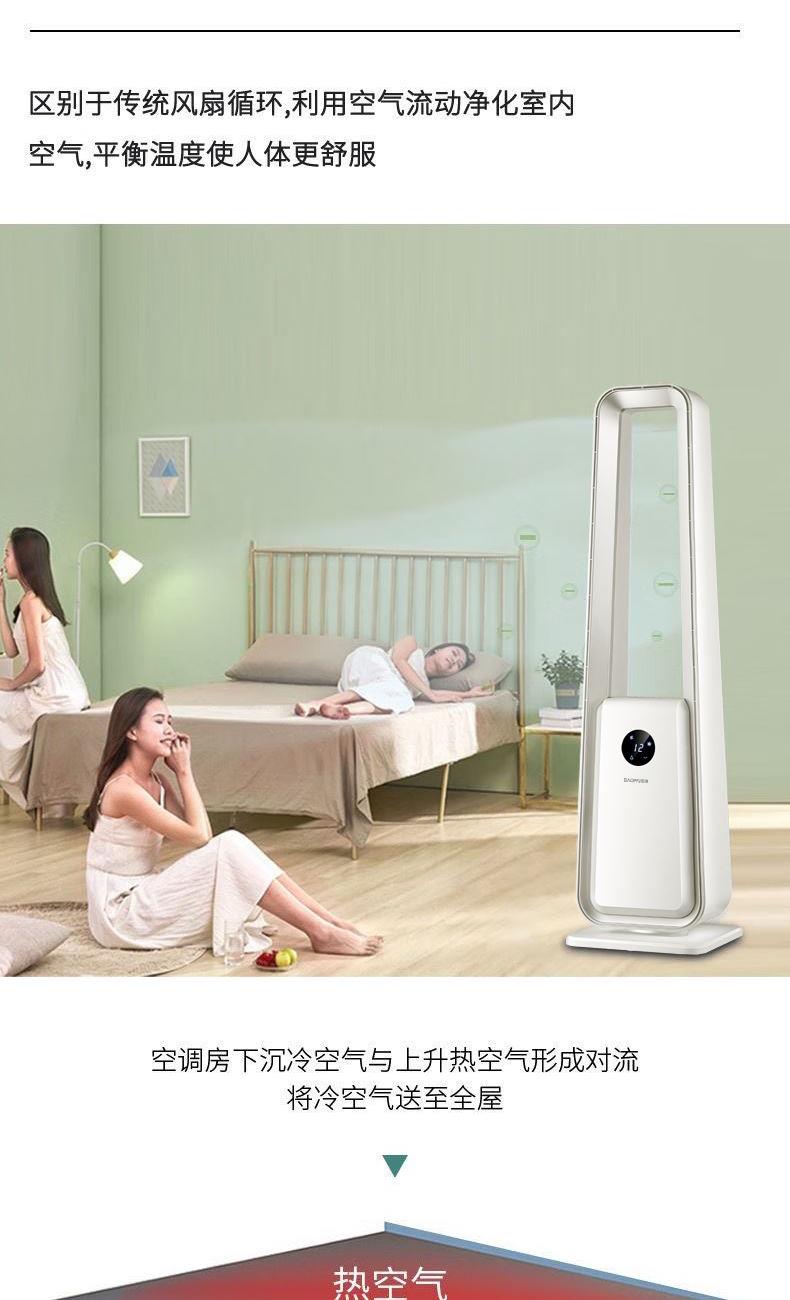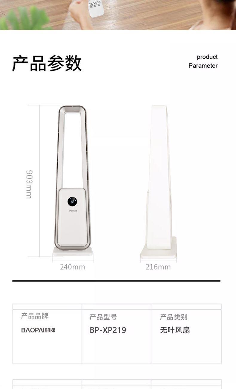 产品材质:ABS 额定功率:60W 额定电压/频率:220V~50Hz 控制方式:遥控+触摸 产品重量: 3.57kg 产品尺寸:240*216*903mm 包装尺寸:935*255*270mm 高速循环气流增大风量输出 高效电容电机,低噪音、长寿命 遥控控制,12小时预约定时 3档风速调节,刚柔随心 触屏面板操作,简单易懂 60°左右摇头广角送风 300万负离子净化空气 自然风、睡眠风、正常风,3种送风模式