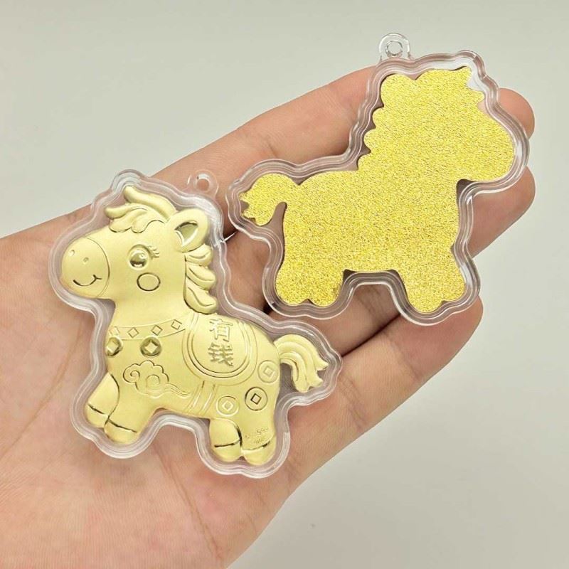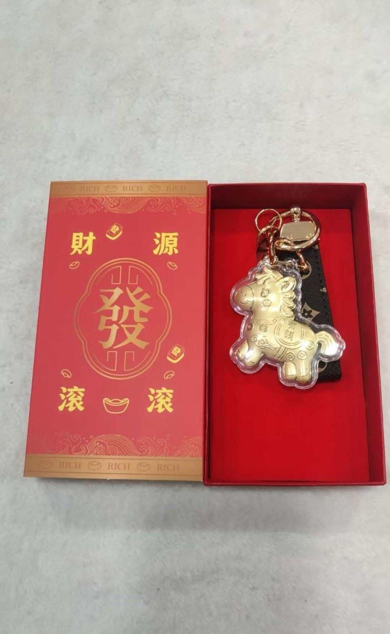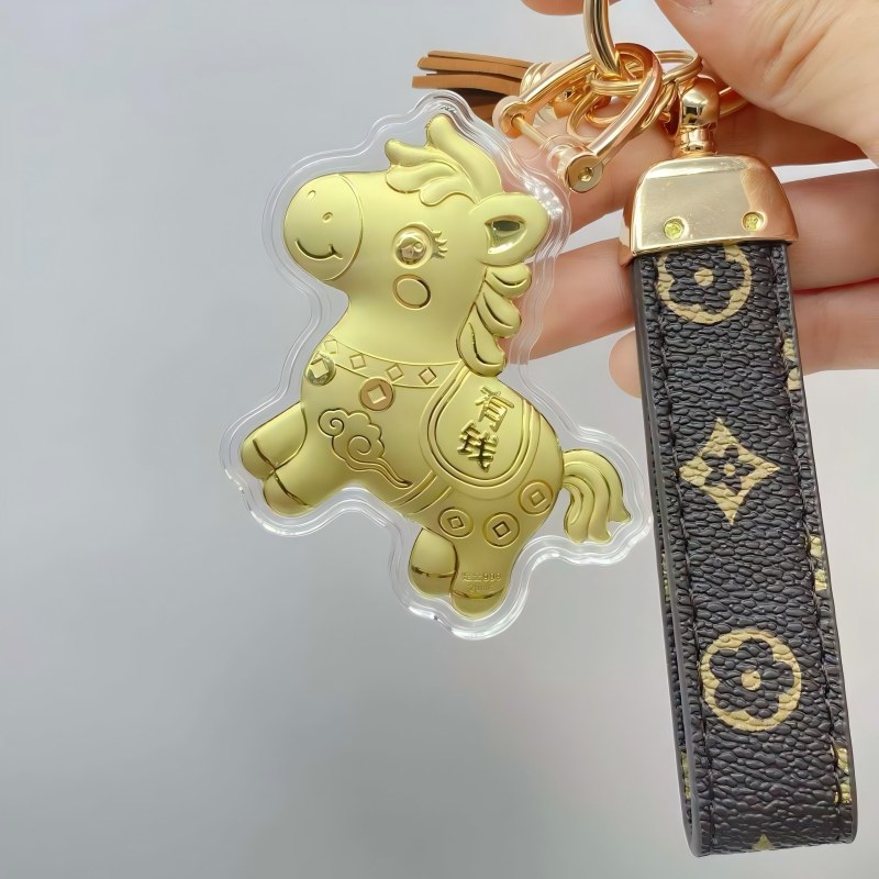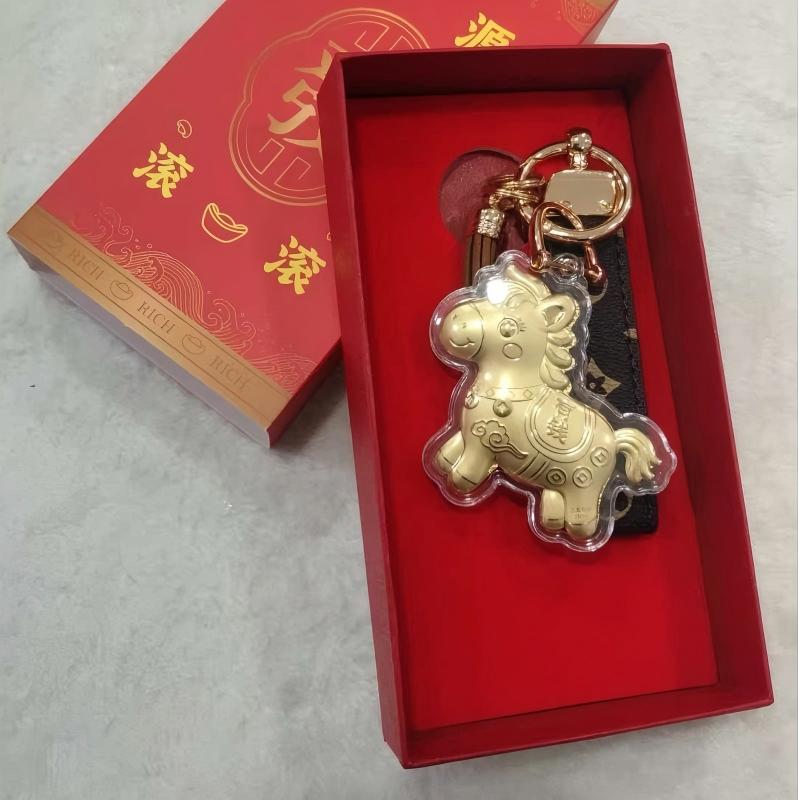 产品尺寸:约7.1*6.9cm 包装尺寸:16.5*9*3cm 产品材质:表面含金 以生肖马为型,铸就圆润灵动之姿,寓意“马到功成”。胸前精雕“有钱”二字,缀以祥云纹饰,融招财吉运于方寸之间,伴您事业腾达,财源滚滚。 匠心细节,低调奢华 马身覆通透护壳,金属与流苏穗子轻盈相衔,摇曳生姿。老花皮革挂带,金黑配色碰撞质感,细节处处彰显不凡品味 礼赠心意,寓意深长 可挂车钥、随身物品,点亮日常精致度;是商务馈赠、亲友祝福的佳选一份“马上有钱”的祈愿,让祝福与财运常伴左右。