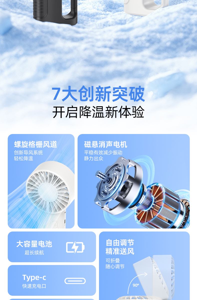 右心新款折叠挂脖风扇手持风扇户外便携式JW08