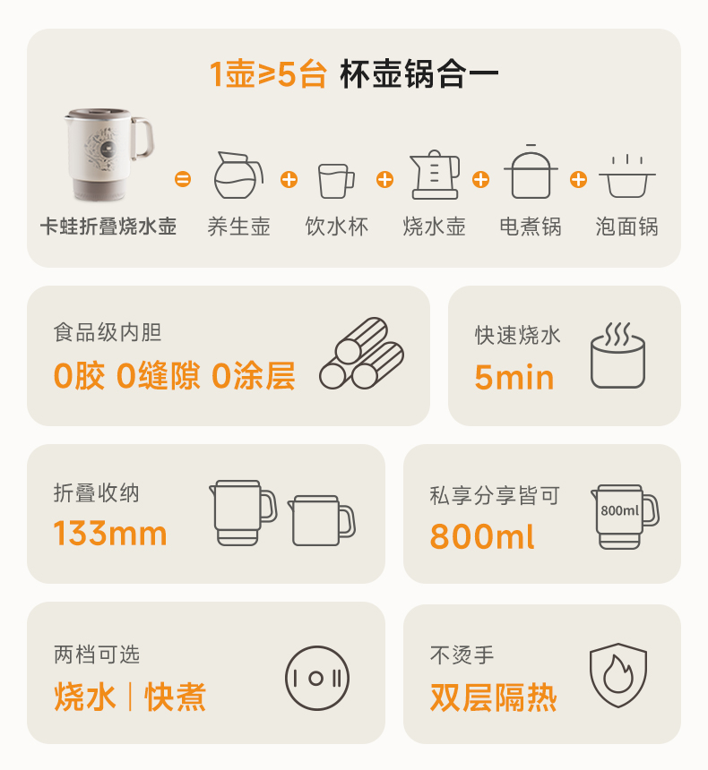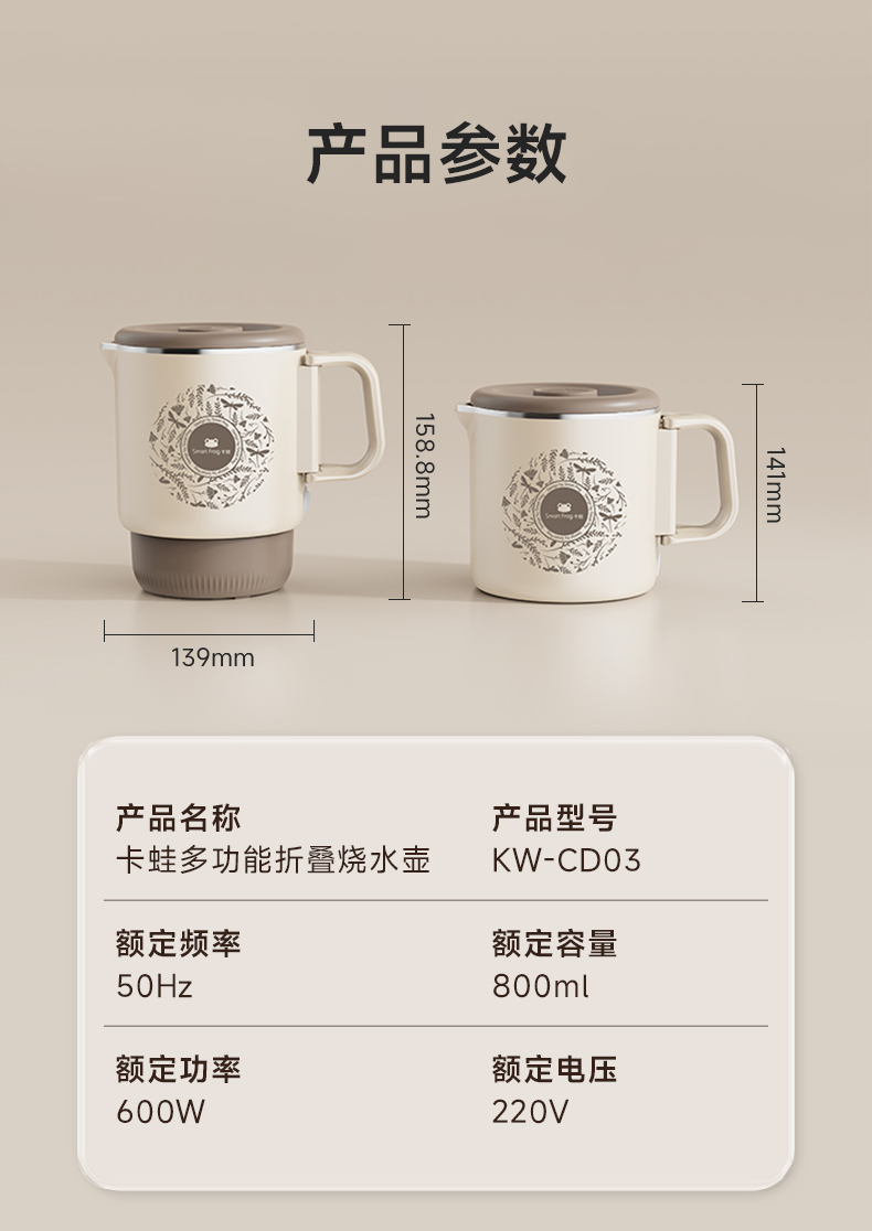 卡蛙折叠电热水壶KW-CD03