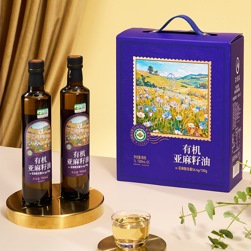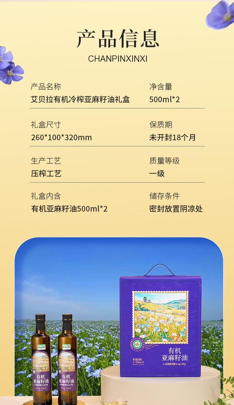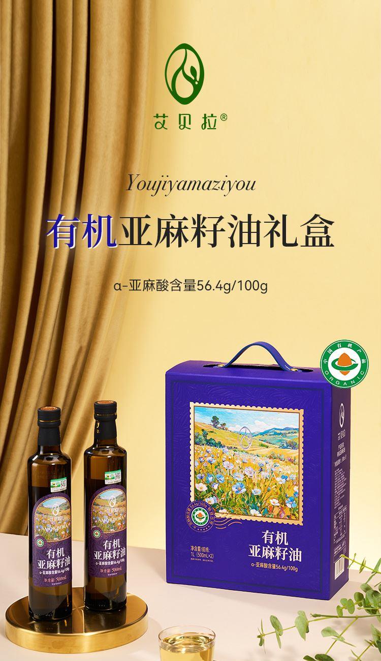 艾贝拉有机冷榨亚麻籽油礼盒500ml*2