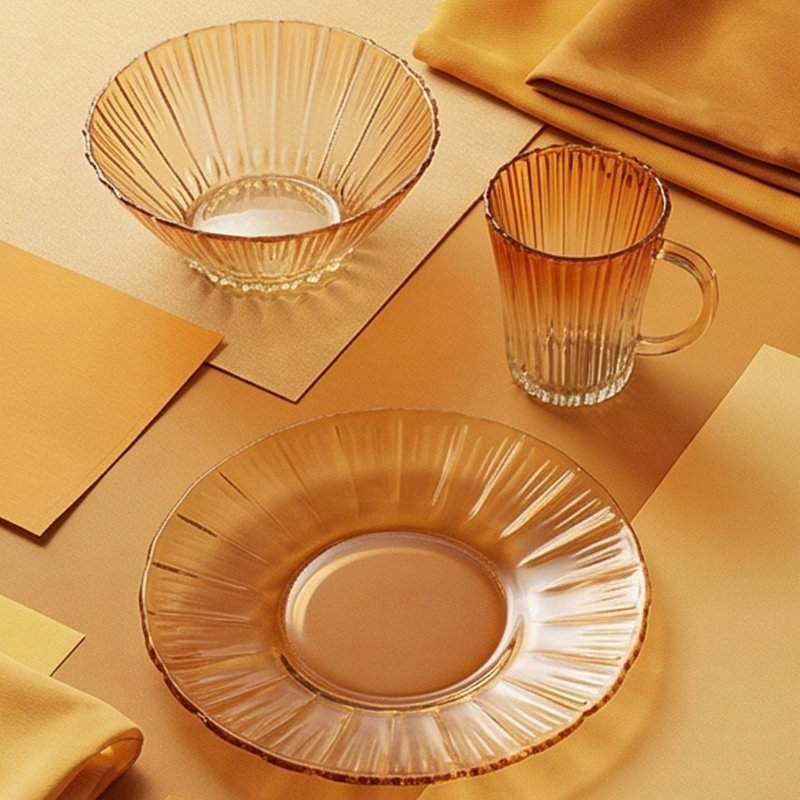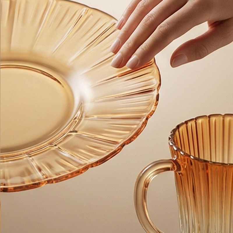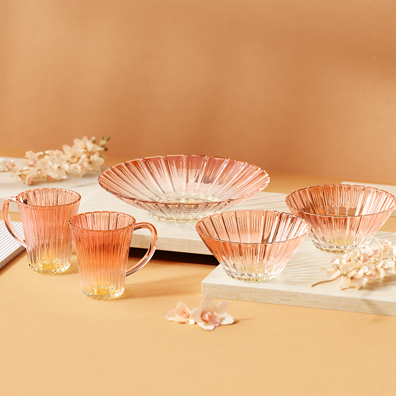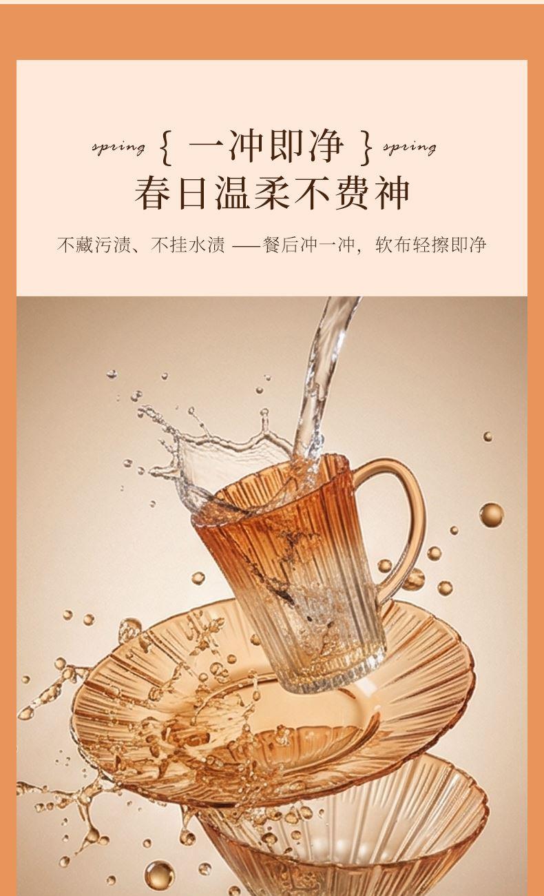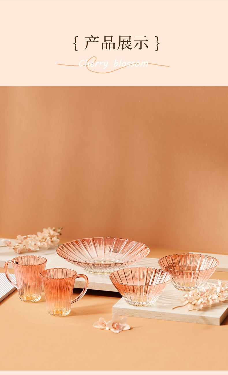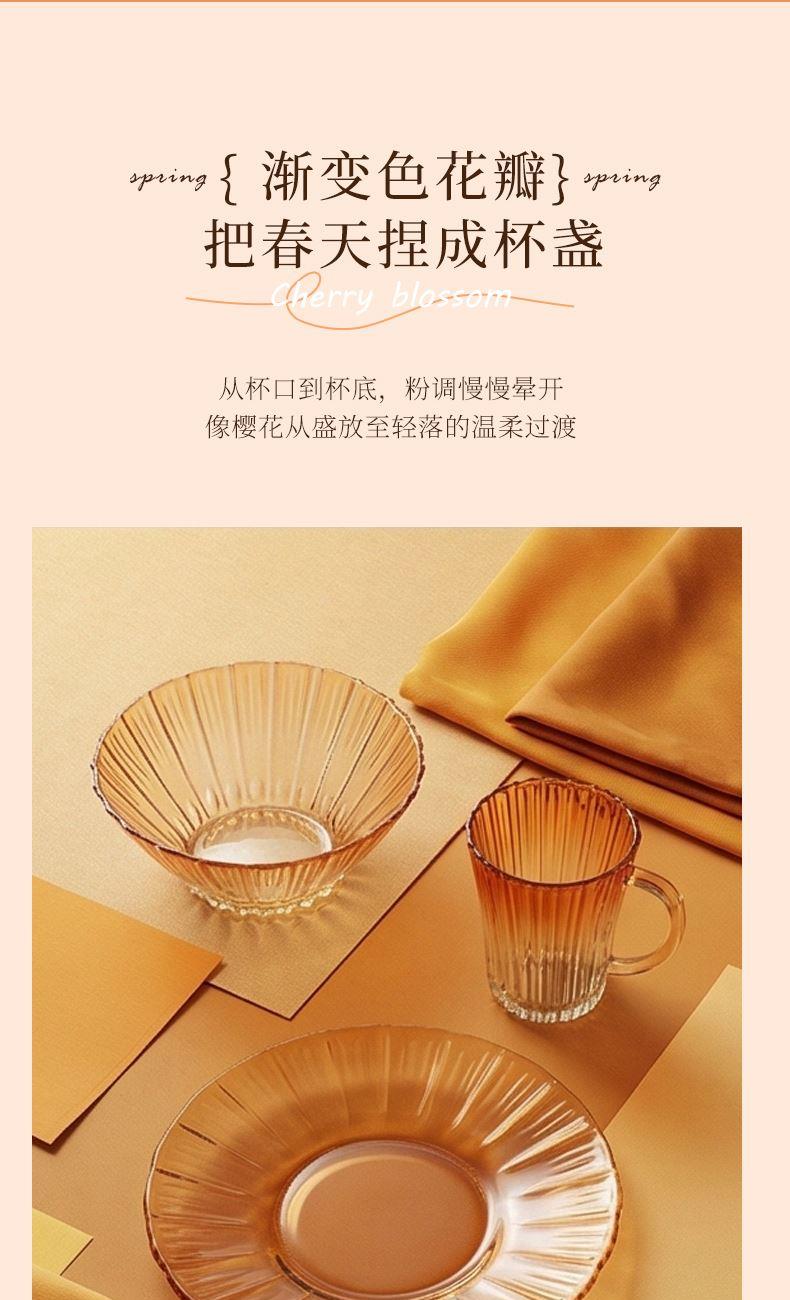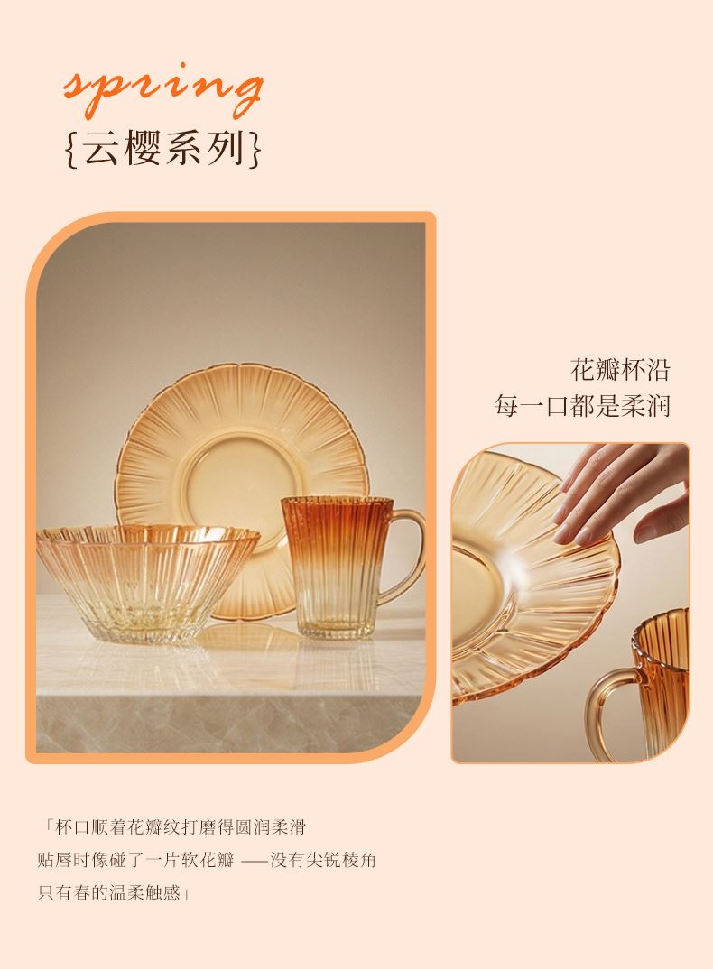 适用温度:0°C-60°C 材 质:钠钙玻璃 产品参数:沙拉碗580ml*2、水杯310ml*2、果盘247*54mm 彩盒尺寸:422*100*378mm 外箱尺寸:62.4*43.6*39.4cm 产品卖点:1.采用温暖的高颜值渐变玻璃工艺,色彩从深到浅过渡自然。 2.多元场景,点亮精致生活一套包含水杯、沙拉碗和点心盘,轻松驾驭各种日常需求。 3.高颜值玻璃餐具上市发售咯,复古竖纹搭配高 级琥珀渐变,自带轻奢氛围感。