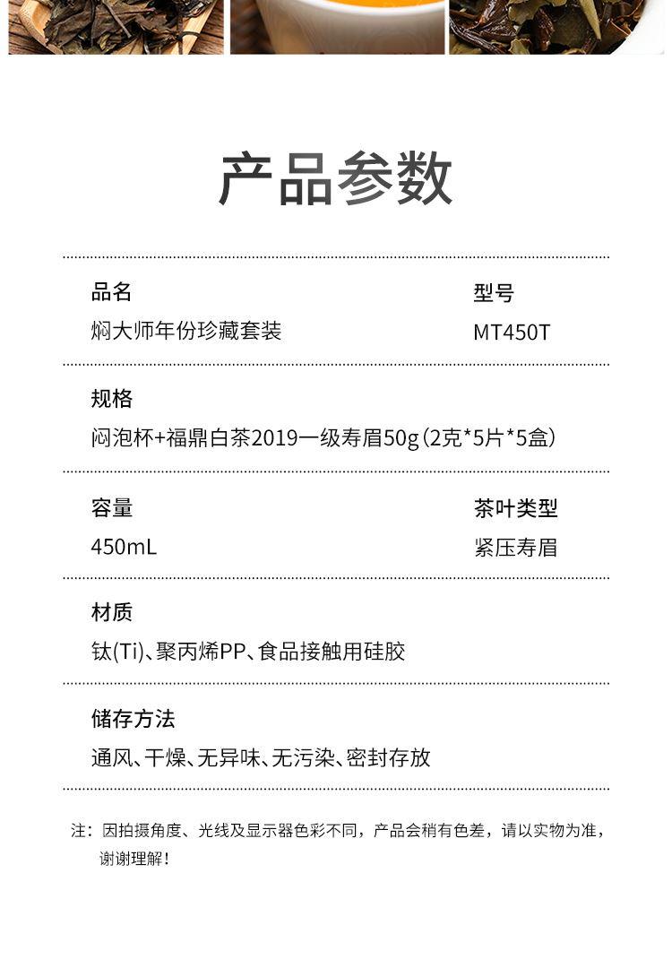 配 置:纯钛闷泡杯+纯钛茶隔+10G福鼎白茶*5
