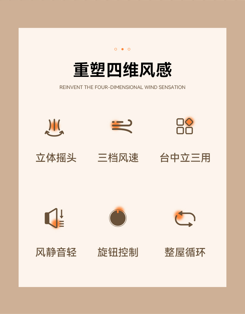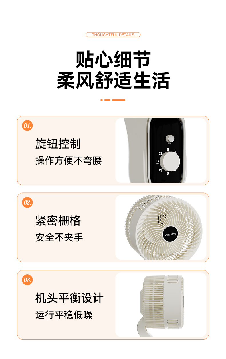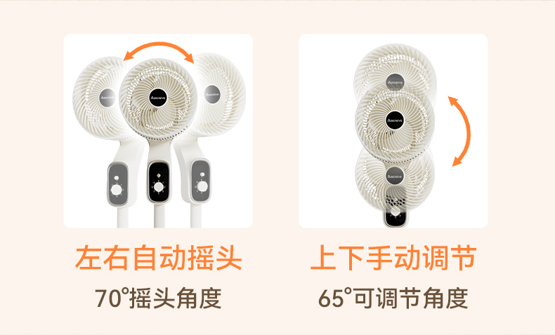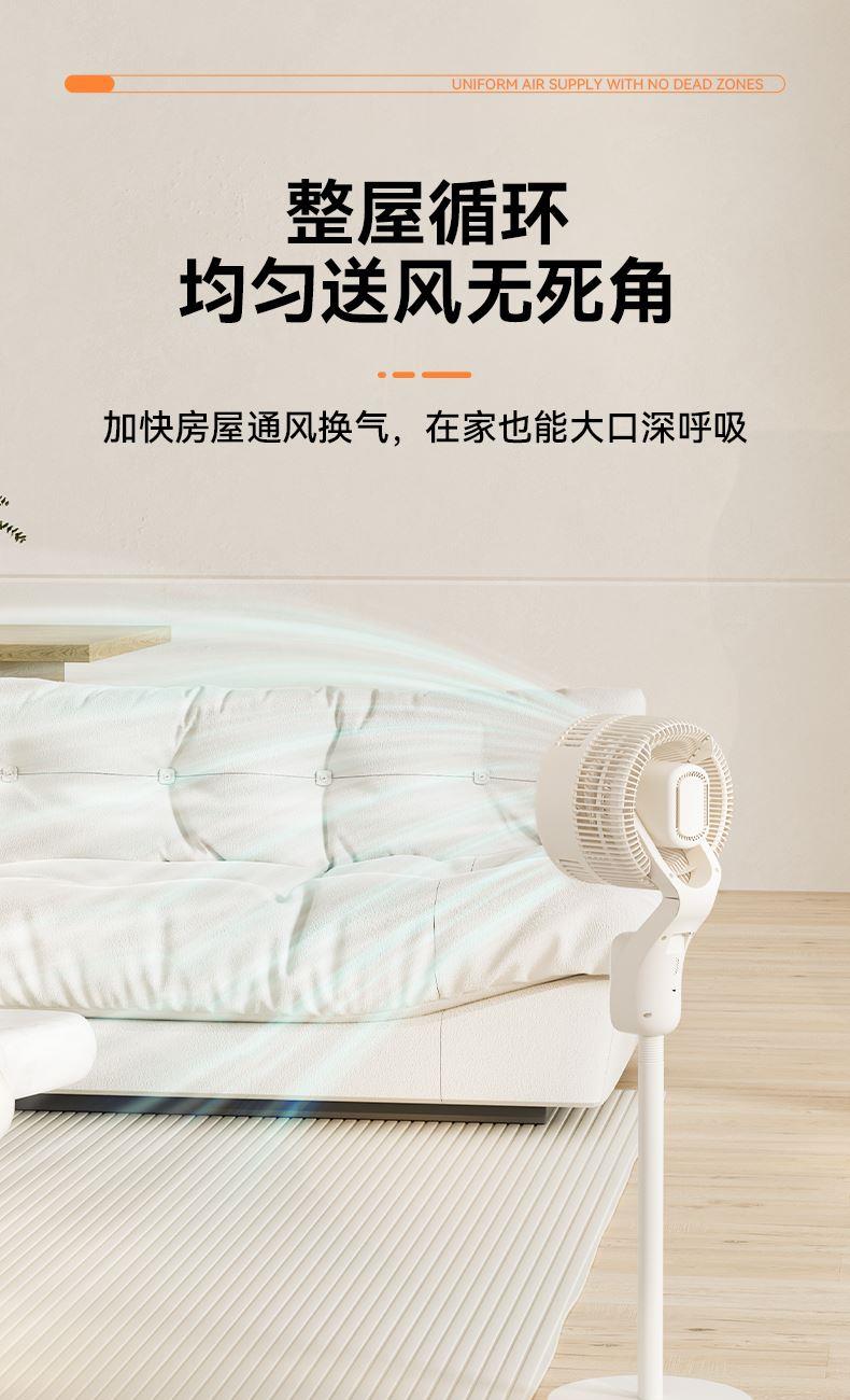 产品颜色:白色 产品材质:PP+ABS 额定电压:220V~ 额定频率:50Hz 额定功率:40W 产品净重:3.9kg 产品毛重:4.5kg 产品尺寸:320*320*1085mm 包装尺寸:525*240*330mm 单台为彩盒包装;4台/ ◁旋钮控制,上下左右自动摇头 ◁360℃摇头送风 多角度多层次送风,全屋空气自然流动 ◁3档风速 满足多样化风感需求 全家都有舒适体感 ◁台立两用,形态随心变,同时拥有台式循环扇和落地循环扇 ◁整屋深循环,强劲搅动室内空气,加速空气流动 ◁配重加固底盘 内置配重块设计 降低机身重心