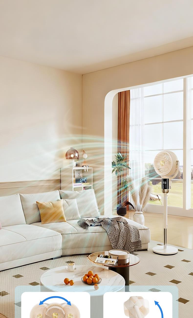 ◁全域自动摆头 上下左右全自动立体摆头 实现全屋空气高效循环