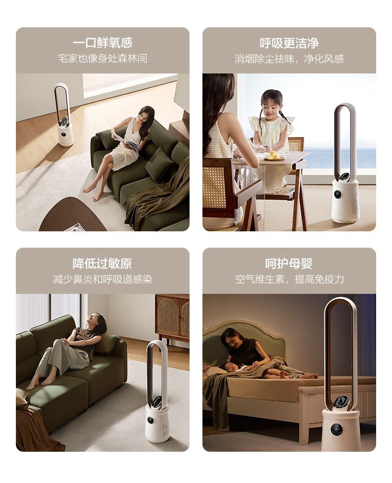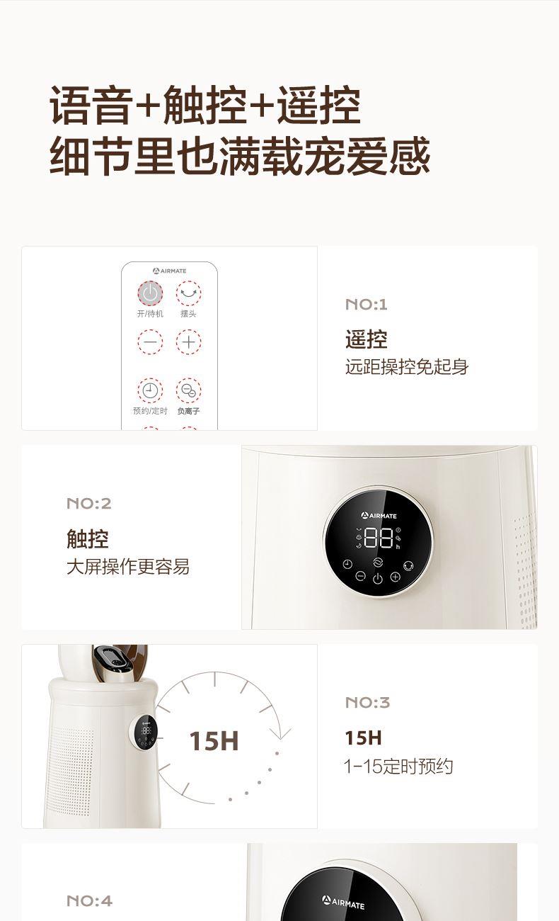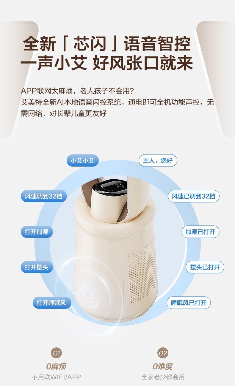额定功率:50W 额定电压:220V 摆头角度:左右60°摆风 控制方式:语音智控+大触屏+遥控 产品特色:HAPE滤网+UV除 菌+负离子净化加湿 电机:高转速直流电机 噪音:低档28dB(a) 预约定时:1h-15h可选 档位模式:32档精细风 +ECO温感+婴幼儿模式+睡眠风 额定功率:50W 额定电压:220V 摆头角度:左右60°摆风 控制方式:语音智控+大触屏+遥控 产品特色:HAPE滤网+UV除 菌+负离子净化加湿 电机:高转速直流电机 噪音:低档28dB(a) 预约定时:1h-15h可选 档位模式:32档精细风 +ECO温感+婴幼儿模式+睡眠风