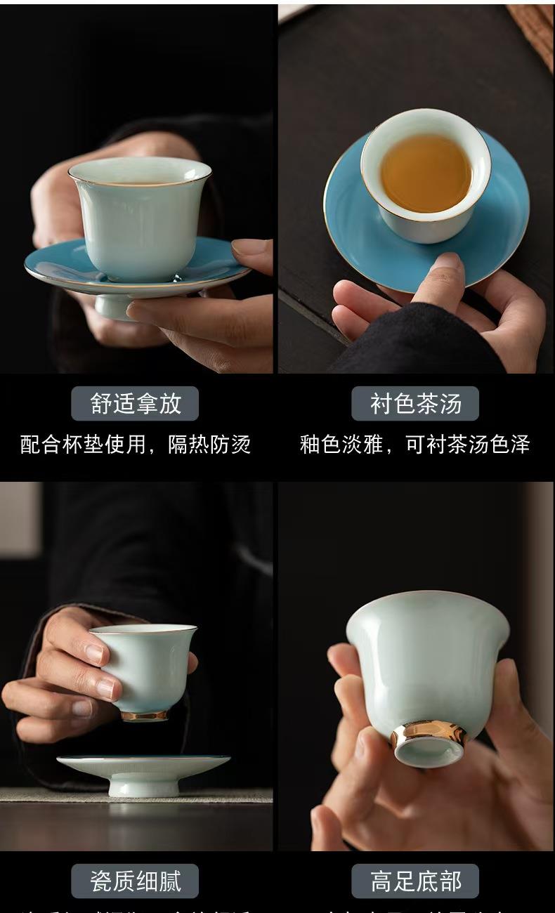 配制:1壶 6杯 1茶洗 1公道杯1茶托1茶漏 1锦盒 规格:壶:12*8cm 公道杯:9.2*9.1cm 茶杯:6cm*5cm 手提锦盒:39*27*13cm 材质:青山玉 24K真金 推荐说明:青山玉是青瓷新品,以瓷质细腻,线条明快流畅,色泽纯洁而斑斓著称。青如玉,明如镜,声如磬,描24K真金奢华装饰,被称为瓷器之花。